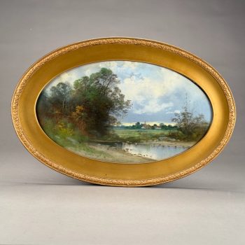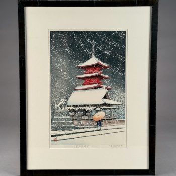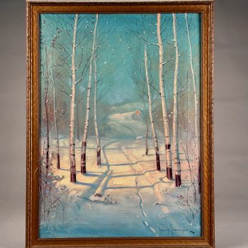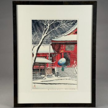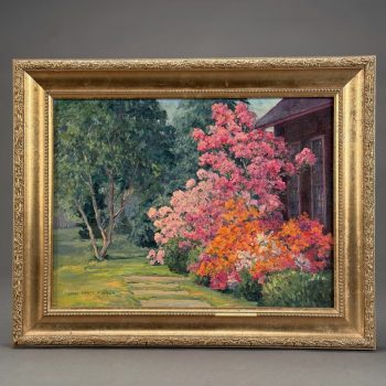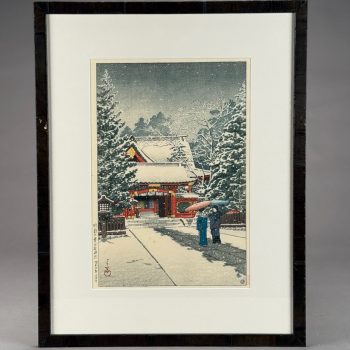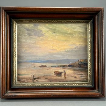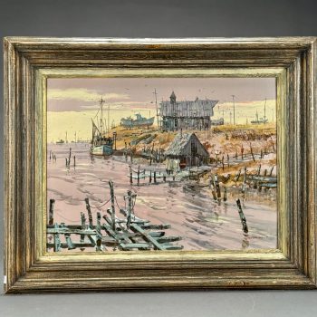 Home / ANTIQUE AUCTION - FRI NOVEMBER 7 AT 6 PM / Page 3 ANTIQUE AUCTION - FRI NOVEMBER 7 AT 6 PM Showing 121–180 of 297 results Default sorting Sort by popularity Sort by latest Sort by price: low to high Sort by price: high to low LOT 117 THREE PIECES OF ENGLISH SOFT PASTE POTTERY. 5″(H) X 5″(D) MOCHA MUG WITH WIDE BLUE BAND, 3-1/4″ X 4-1/2″ (D) MUSTARD COLORED CYLINDER BOWL WITH SEA WORM DECORATION, AND A 6″(H) WHITE MUG LOT 118 ANTIQUE CAST IRON STILL BANK BY J.E. STEVENS OR GREY IRON CASTING CO. “ONE STORY HOUSE” IN GREEN & RED PAINT. 3-1/4″(H) LOT 119 GIBBS, DISTANT TOWN, OVAL PASTEL, SIGNED LOWER LEFT, FRAMED. 13-1/2 X 23-1/2 SIGHT SIZE LOT 120 ANTIQUE 4-DRAWER TIGER MAPLE CHEST WITH GRADUATED DRAWERS AND CARVED SKIRT 40-1/4”(H) CASE 39-1/2”(W) 18”(D) LOT 121 ANTIQUE SHEET METAL SAILOR WITH SPYGLASS WEATHERVANE HAVING ARROW BASE AND PAINTED FIGURE. 32″(H), 30″(W) LOT 122 ANTIQUE 3 DRAW SPYGLASS, UNMARKED. 29-1/2 EXTENDED, 10″ COLLAPSED LOT 123 UNSIGNED, BEACH SCENE WITH FORT AND SAILBOATS, OIL ON WOOD PANEL, FRAMED. 7-1/2 X 10-1/2 LOT 124 UNSIGNED, STEAM SHIP PASSING CASTLE WILLIAM, NEW YORK HARBOR, OIL ON WOOD PANEL, FRAMED. 7-1/2 X 10-1/2 LOT 125 OUTSTANDING ANTIQUE CARVED SWIFT WITH EAGLE DECORATION. 20″(D) LOT 126 EMILE A. GRUPPE, TYING UP THE BOAT, OIL ON BOARD, SIGNED LOWER LEFT, FRAMED. 10 X 12 LOT 127 E.A. ANDERSON, COASTAL BOATS WITH BOATYARD, OIL ON MASONITE, SIGNED LOWER RIGHT, FRAMED. 18 X 24 LOT 128 CHIPPENDALE RED PAINTED 2-DRAWER BLANKET CHEST WITH 3 FALSE DRAWERS. 40”(H) 37”(W) 18-1/2”(D) LOT 129 ABBOTT FULLER GRAVES, WALKING THE PATH TO THE HOUSE, OIL ON PANEL, SIGNED LOWER RIGHT, FRAMED. 9-1/4 X 13 LOT 130 ANTIQUE GRAIN PAINTED JELLY CUPBOARD WITH SHAPED BACK SPLASH, 2 DRAWERS OVER 2 DOORS 54”(H) 43-1/2”(W) 18”(D) LOT 131 UNSIGNED, LADY IN WHITE ON FENCE, OIL ON CANVAS, FRAMED. 17 X 28 LOT 132 ANTIQUE GRAIN PAINTED JELLY CUPBOARD, HAVING PANELED SIDES AND DOORS, BACKSPLASH WITH SHELVES AND LIDDED COMPARTMENT, 2 DRAWERS OF 2 DOORS. 59”(H) 43-1/2”(W) 21-1/2”(D) LOT 133 UNSIGNED (1ST HALF 19TH C.), PORTRAIT OF 2 CHILDREN ONE IN BLUE THE OTHER RED, OIL ON CANVAS (LINED), FRAMED. 25 X 30-1/2 LOT 134 FLOW BLUE PLATTER IN THE “SCINDE” PATTERN 17-3/4 X 14, AND A PAIR OF FLOW BLUE PLATES IN THE “FAIRY VILLA” PATTERN, 9″ LOT 135 WILLIAM WHITLOCK, PORTRAIT OF A YOUNG BOY, OIL ON CANVAS, SIGNED ON REVERSE AND DATED 1873, FRAMED. 27 X 22 LOT 136 FORTY-FIVE PIECE SWEDISH DINNER SERVICE IN BLUE & WHITE GRAPE & VINE PATTERN MARKED “UPSALA EKEBY SWEDEN” LOT 137 THREE ROYAL DOULTON ELEGANT LADY FIGURINES; STEPHANIE (HN2811), SARA (HN2265), LOUISE (HN3207), 8-1/4”(H) LOT 138 FOUR ROYAL DOULTON ELEGANT LADY FIGURINES, DENISE (HN2477), MARGARET (HN2397), ALEXANDRA (HN3286), KELLY (HN2478) 8” LOT 139 UNSIGNED, PORTRAIT OF A WOMAN IN BLACK, OIL ON CANVAS, FRAMED. 36 X 30 LOT 140 UNSIGNED, NEW ENGLAND LANDSCAPE, OIL ON BOARD, FRAMED. 8-1/4 X 13-1/4 SIGHT SIZE LOT 141 TWO GALLON STONEWARE JUG WITH STENCILED NAME “M. DUGAN/COR. ARCH & 50 PEARL ST/ALBANY, N.Y. 14-1/2″(H) LOT 142 JEAN PRATT FISHER. “SPRING GREETING”, OIL ON CANVAS, SIGNED LOWER LEFT, FRAMED. 12 X 16 LOT 143 FINE ROUND BASKET HAVING TRACES OF BLACK PAINT, 6 POINTED STAR BASE. 8″(H), 23″(D) LOT 144 FRAMED ANTIQUE “PIN PRICK” WATERCOLOR AND CLOTH PICTURE “THANKS TO WILBERFORCE!!!” 5-3/4 X 7-1/4 SIGHT SIZE LOT 145 JEAN PRATT FISHER, SPRING TIME BARN, OIL ON CANVAS, SIGNED LOWER RIGHT, FRAMED. 14 X 18 LOT 146 FRAMED PHOTO OF 3 PEOPLE IN COSTUME, HOUSED IN AN OVAL FRAME. PHOTO SIZE: 7 X 5 LOT 147 TIN “DRINK MOXIE DISTINCTIVELY DIFFERENT” SIGN. 18-3/4 X 27 LOT 148 JACK BRODERICK, RIVER BRIDGE, OIL ON MASONITE, SIGNED LOWER RIGHT, FRAMED. 11 X 14 LOT 149 BONESHAKER, CLEVELAND, OHIO HIGH WHEEL REPRODUCTION BIKE. #3801178. 62”(H) LOT 150 KOK POO, PORTRAIT OF A BOY AND HIS GRANDFATHER, OIL ON CANVAS, SIGNED LOWER RIGHT AND INSCRIBED “BALI, NOV 1984”, FRAMED. LOT 151 KAWASE HASUI, SNOW AT UENO TOSHOGU SHRINE, WOODBLOCK PRINT, SIGNED, FRAMED. 14-1/2 X 10 SIGHT SIZE LOT 152 KAWASE HASUI, SNOW AT HIE SHRINE, WOODBLOCK PRINT, SIGNED, FRAMED. 14-1/2 X 10 SIGHT SIZE LOT 153 KAWASE HASUI, SNOW AT UENO KIYOMIZUDO, WOODBLOCK PRINT, SIGNED, FRAMED. 14-1/2 X 10 SIGHT SIZE LOT 154 YOSHIDA HIROSHI, TITLED LOWER LEFT AND PENCIL SIGNED LOWER RIGHT, WOODBLOCK PRINT, UNFRAMED, 10-1/2 X 16 LOT 155 HIROSHIGE “SHOWER ON NIHONBASHI BRIDGE”, WOODBLOCK PRINT, SIGNED, UNFRAMED 10 X 15 LOT 156 ANTIQUE 2-FOLD LARGE ROOM SCREEN HAVING PAINTED FLOWING TREE TEXTILE PANELS BEHIND GLASS, THE CREST AND BOTTOM CARVED IN ORIENTAL MOTIF. 88”(H) 28”(W) (EACH PANEL) LOT 157 ANTIQUE ASIAN PAINTED AND CARVED PANEL WITH BIRD ON FLOWERING BRANCH AND LEAF WITH WRITING. 53-1/2”(H) 11-1/2”(W) LOT 158 UNSIGNED (CHINESE SCHOOL), PORTRAIT OF A LADY HOLDING BOWL, REVERSE PAINTING ON GLASS. FRAMED 21 X 16-1/2 SIGHT SIZE LOT 159 UNSIGNED (CHINESE SCHOOL), PORTRAIT OF A MOTHER AND CHILD, REVERSE PAINTING ON GLASS, FRAMED, 25-1/2 X 17-1/2 SIGHT SIZE LOT 160 UNSIGNED, ASIAN ANCESTRAL PORTRAIT, WATERCOLOR ON PAPER, MOUNTED TO BOARD, FRAMED. 47 X 35-1/2 SIGHT SIZE LOT 161 SVEND SVENDEN, “THE OLD ______HOUSE NORWAY”, OIL ON CANVAS, SIGNED LOWER RIGHT, FRAMED, 26″ X 19 LOT 162 UNSIGNED, MOTHER AND 2 CHILDREN, ROUND OIL ON BOARD, FRAMED. 23″(D) LOT 163 EIGHTY PIECE DINNER SERVICE BY COPELAND SPODE IN THE “INDIA TREE” PATTERN LOT 164 MAPLE SIDEBOARD BY TRUTYPE FURNITURE, 3 DRAWERS OVER 2 DOORS WITH GALLERY TOP. 38-1/2”(H) 51”(W) 18-1/2”(D) LOT 165 ARTS AND CRAFTS, COPPER, SILVER AND WOOD HANDLED MAGNIFYING GLASS, ATTR. TO JOSEPH HEINRICHS, UNSIGNED BUT MARKED “SILVER AND COPPER” 9”(L) LOT 166 THEODOROS S. STAMOS, “THE MASQUERADE”, ABSTRACT GOUACHE, SIGNED AND DATED 1949 LOWER LEFT, FRAMED, 22-1/4 X 17-1/4 SIGHT SIZE LOT 167 TAKAMURA KOZABURO, ALBUM OF HAND COLORED ALBUMEN PRINTS, LATE 19TH C, IN ORIGINAL BOX, 25 PAGES CONTAINING 50 PRINTS AND COVER BOOK. 12-