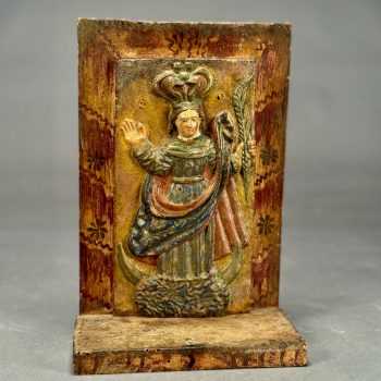 Home / ANTIQUE ESTATE AUCTION - FRI DECEMBER 12 AT 6 PM / Page 3 ANTIQUE ESTATE AUCTION - FRI DECEMBER 12 AT 6 PM Showing 121–180 of 282 results Default sorting Sort by popularity Sort by latest Sort by price: low to high Sort by price: high to low LOT 120 UNUSUAL AND UNIQUE ANTIQUE CHILD’S BARBER CHAIR MID 19TH C. HAVING A CHILD’S ARMCHAIR FITTING ON A TURNED LEG PLATFORM WHICH ALLOWS THE CHAIR TO REVOLVE. 35-1/4″(H), 20-1/2 X 20-1/2 LOT 121 TONY COUCH, “TEAGO GENERAL STORE”, WATERCOLOR, SIGNED LOWER LEFT, UNFRAMED. 20 X 32-1/2 LOT 122 PAIR OF ANTIQUE BRASS ANDIRONS WITH TURNED POSTS. 15-1/2″(H), 15″(L) LOT 123 CARVED & PAINTED WOOD FIGURE OF A GIRL IN RED DRESS WITH JUMP ROPE, ON STAND. FIGURE 17″(H), OVERALL 20″ LOT 124 BEN DRABECK, CRESTING WAVE, OIL ON CANVAS, UNSIGNED, UNFRAMED, 28 X 22. PROVENANCE DIRECTLY FROM THE ARTIST’S ESTATE LOT 125 TRAY TOP QUEEN ANNE STYLE TEA TABLE WITH 4 CARVED CABRIOLE LEGS AND CANDLE SLIDES. 25-1/2”(H) LOT 126 LARGE DOUBLE HANDLED SQUARE BASKET. 11-1/2″(H), 25-1/2 X 27 LOT 127 J.E. BARCLAY, PROFILE PORTRAIT OF A WOMAN WEARING PINK SCARF, OIL ON CANVAS, SIGNED LOWER RIGHT, FRAMED. 18 X 16 LOT 128 FINE BEADED FLOWER DECORATED PURSE WITH ENAMEL AND STONE DECORATED CLASP AND FRAME. 10-1/2″ X 8″ LOT 129 FINE BEADED PURSE WITH FLORAL DECORATION AND BLACK SILK HEADER WITH DRAWSTRING. 9-1/2” X 6” LOT 130 FINE NEEDLEPOINT PURSE WITH SILVER PLATED FRAME AND PUSH BUTTON CLASP. 8-1/2″ X 8″ LOT 131 FINE BEADED PURSE IN BLACK, WHITE AND TAN BEADS, METAL FRAME. 7” X 7-1/2” LOT 132 FINE BEADED PURSE WITH RED ROSE DECORATION AND METAL FRAME. 8”(L) X 7”(W) LOT 133 THREE BEADED PURSES, ALL DRAWSTRING STYLE. 7-7-1/2″(L) X 5″(W) LOT 134 TWO BEAD DECORATED PINK/RED AND CLEAR PURSES, SILVER METAL FRAMES WITH ACORN SHAPED CLASP. 6 X 7 AND 6 X 8 LOT 135 THREE BEADED PURSES, ONE WITH MIRROR “MADE IN FRANCE”, THE OTHER 2 WITH CARNIVAL GLASS STYLE BEADS. 5 – 6-1/2”(L), 5-1/2 – 8-1/2”(W) LOT 136 TWO BEADED PURSES, ONE IN GREEN WITH CROCHETED DRAWSTRING. 7-1/2”(L) X 6”(W) LOT 137 TWO BEAD/CHAIN PURSES, BEADED WITH FLOWER DECORATION AND DRAWSTRING, THE OTHER WITH PAINTED CHAIN. 6” X 4” AND 5” X 4” LOT 138 SEVEN CHAIN AND BEAD CHANGE PURSES, ONE MARKED GERMAN SILVER, ANOTHER WITH ART NOUVEAU LADY ON COVER. 3″ – 4-1/2″(L) LOT 139 SIX CHAIN PURSES IN GOLD AND SILVER COLOR ALONG WITH 2 BEADED PURSES AND A SILK SCARF. 6”(L) X 10”(W) LARGEST LOT 140 ANTIQUE COPPER DECORATED HANDLED SMALL POCKETBOOK HAVING COPPER BALE HANDLE. 4-1/2”(H), 6-1/2”(W), 3-3/4”(D) LOT 141 FINE CARVED FRENCH STYLE UPHOLSTERED SETTEE. 34”(H), 49”(W), 26”(D) LOT 142 ANTOINE WATTEAU, “SYLVIE”, ETCHING BY COMTE DE CAYLUS AFTER A PAINTING BY WATTEAU, FRAME. 6 X 3-3/4 SIGHT SIZE LOT 143 ORIENTAL ROOM SIZE RUG WITH FLORAL DECORATED DEEP BLUE FIELD. 8 X 10.2 LOT 144 TONY COUCH, WINDING ROAD TO THE STORE, WATERCOLOR, SIGNED LOWER LEFT, UNFRAMED. 20 X 32-3/4 LOT 145 TONY COUCH, FISHING UNDER THE COVERED BRIDGE, WATERCOLOR, SIGNED LOWER LEFT, UNFRAMED. 20 X 32-3/4 LOT 146 JOHN TOMASETTI, GREY HOUSE WITH FLOWERY WALK, WATERCOLOR, SIGNED LOWER RIGHT, UNFRAMED. 22 X 30 LOT 147 PAIR OF ANTIQUE BRASS ANDIRONS WITH TURNED POSTS. 21-1/4″(H), 29″(L) LOT 148 COUNTRY ANTIQUE JELLY CUPBOARD WITH GALLERY TOP, ONE LONG DRAWER OVER 2 DOORS. 39″(H), 37″(W), 18″(D) LOT 149 BOKHARA ORIENTAL RUG. 5.4 X 7.9 LOT 150 ANTIQUE COUNTRY 5-DRAWER SLANT LID DESK WITH CUT-OUT FEET AND CUBBY HOLE INTERIOR. 49-3/4″(H), 38-1/2″(W), 19″(D) LOT 151 CARVED AND PAINTED ICON STYLE ANTIQUE PLAQUE, A RELIEF FIGURE WITH HAND UP AND CROWN WITH CROSS MOUNTED TO AN “L” SHAPED SHELF. 12-3/4″(H), 8-1/2″(W), 5″(D) LOT 152 TWO DRAWER LIFT TOP BLANKET CHEST WITH TILL AND TURNED FELT. 25-1/2″(H), 39″(W), 18″(D) LOT 153 ANTIQUE CALENDAR DIAL SCHOOLHOUSE WALL CLOCK, TIME ONLY, KEY AND PENDULUM PRESENT. 24″(H) LOT 154 BEN DRABECK, IMPRESSIONISTIC LANDSCAPE, OIL ON CANVAS, UNSIGNED, UNFRAMED, 30 X 15. PROVENANCE DIRECTLY FROM THE ARTIST’S ESTATE LOT 155 BEN DRABECK, WAVE ON COASTAL ROCKS, OIL ON CANVAS, UNSIGNED, UNFRAMED, 24 X 30. PROVENANCE DIRECTLY FROM THE ARTIST’S ESTATE LOT 156 BEN DRABECK, COASTAL VIEW, OIL ON CANVAS, UNSIGNED, UNFRAMED, 24 X 36-1/4. PROVENANCE DIRECTLY FROM THE ARTIST’S ESTATE LOT 157 ONE DRAWER SHERATON REEDED LEG STAND, KEY PRESENT. 29-3/4”(H), 24”(W), 22-1/4”(D) LOT 158 MOCHAWARE MUG WITH BAND IN BROWN WITH BROWN SEAWEED DECORATION. 5″(H) LOT 159 THREE ANTIQUE PEWTER TEAPOTS BY THE PORTERS OF MAINE, 7 – 8-1/2″(H) ALONG WITH A 4-1/2″(H) UNSIGNED PEWTER WHALE OIL CHAMBERSTICK LOT 160 TWO CARVED LIVE EDGE WOOD BOWLS: (1) BLACKBOY BY JBS, 3″(H), 10″(D). (2) WALTER GOODRIDGE, 2002, 7-1/2″(H), 9-1/2″(D) LOT 161 APPROXIMATELY 1500 PICTURE POSTCARDS MOSTLY TOWN VIEWS ALL IN PLASTIC SLEEVES LOT 162 ANTIQUE WOOD LOG HOLDER WITH SPLINT WORK HOLDER. 23″(H), 16″(W), 20″(D) LOT 163 INTERESTING HANGING BASKET WITH CONCENTRIC SQUARE DECORATION. 9-3/4″(H), 1-“(W), 5″(D) LOT 164 TWO FIXED CENTER HANDLED ROUND BASKETS. 18″(H) X 16″(D) AND 11″(H) X 11″(D) LOT 165 COLORFUL PUTNAM FADELESS DYES – TINT LIFT FRONT CABINET (NO INVENTORY) 14-3/4″(H), 18-3/4″(W), 8″(D) LOT 166 TWO MANTEL CLOCKS: (1) SMALL SETH THOMAS BRACKET CLOCK, 12″(H), 9″(W), 6″(D). (2) COTTAGE CLOCK WITH ALARM, 9-1/2″(H), 7″ X 4″ LOT 167 BAMBOO DECORATED RAKU STYLE VASE BY ZIGULIS (SEBASTOPOL, CA) 7″(H) LOT 168 GREGORIA PRESTOPINO, MOTHER AND CHILD, WATERCOLOR, SIGNED LOWER RIGHT, FRAMED. 26-1/4 X 20 LOT 169 ANTIQUE SETH THOMAS SHELF CLOCK, TIME & STRIKE, KEY & PENDULUM PRESENT. 14-1/2″(H), 10″(W), 4-1/2″(D) LOT 170 LARGE CARVED SOAPSTONE INUIT FIGURE OF A MAN CARRYING SEAL OVER SHOULDER, UNSIGNED. 15″(H) LOT 171 THREE ANTIQUE INUIT AND SAILOR ITEMS: (1) 5-1/2″(L) CARVED WOOD COMB. (2) 2-1/4″(H) HORN CUP. (3) 12-1/2″ SCRATCH DECORATED BUSK LOT 172 DECORATED SWORDFISH BILL SWORD, “KISMET 