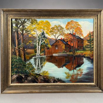 Home / ANTIQUE ESTATE AUCTION - FRI DECEMBER 12 AT 6 PM / Page 4 ANTIQUE ESTATE AUCTION - FRI DECEMBER 12 AT 6 PM Showing 181–240 of 282 results Default sorting Sort by popularity Sort by latest Sort by price: low to high Sort by price: high to low LOT 180 JOHN TOMASETTI, SNOWING IN THE HILLS, WATERCOLOR, SIGNED LOWER RIGHT, UNFRAMED. 15 X 22 LOT 181 JOHN TOMASETTI, BLOOMING FLOWER, WATERCOLOR, SIGNED LOWER LEFT, UNFRAMED BUT MATTED. 15 X 22-1/2 LOT 182 JOHN TOMASETTI, RED BARN, WATERCOLOR, SIGNED LOWER RIGHT, UNFRAMED BUT MATTED. 23 X 30 LOT 183 JOHN TOMASETTI, RECENT SNOW, WATERCOLOR, SIGNED LOWER RIGHT, UNFRAMED. 11 X 15 LOT 184 ONE DRAWER OAK TABLE WITH SHELF BELOW AND TURNED LEGS. 29″(H), 42″(W), 26″(D) LOT 185 LARGE 2-HANDLED SILVER PLATED TRAY WITH SCROLLED LEAF AND FLOWER BORDER, MARKED ON REVERSE “REPLATED BY GORHAM CO.” 32-1/4 X 21-1/2 LOT 186 ANTIQUE HANGING SLAG GLASS LAMP WITH CARAMEL AND LIGHT GREEN PANELS. 22″(D) LOT 187 ANTIQUE TILT TOP INLAID GAME TABLE WITH WALNUT AND MAPLE SQUARES SURROUNDED BY CURLY MAPLE, CUT CORNER MOLDED EDGE TOP AND SNAKE FEET. 25-3/4″(H), 24″ X 24″ TOP LOT 188 ALICE URGIEL, OLD RED MILL, OIL ON CANVAS, SIGNED LOWER RIGHT, FRAMED. 22 X 28 LOT 189 ANTIQUE RED PAINTED LIFT TOP BLANKET CHEST. 32″(H), 37-1/4″(W), 19-3/4″(D) LOT 190 ANTIQUE ORIENTAL RUNNER WITH 5 DIAMONDS. 3.2 X 9.5 LOT 191 ANTIQUE WINDSOR ARMCHAIR WITH BAMBOO TURNINGS AND BIRDCAGE DESIGN. 33-1/2″(H) LOT 192 ANTIQUE BOW BACK WINDSOR SADDLE SEAT ARMCHAIR WITH SPRAY LEG BASE. 38″(H) LOT 193 ANTIQUE HUTCH STYLE TABLE WITH 6 PLANK TOP. TOP SIZE: 59-3/4″(H) X 42-1/2″(W), 28-1/2″(H) LOT 194 WELL USED SCRUB TOP PIG BENCH WITH HEAVY PLAN TOP. 23″(H), 23″(D), 49″(L) LOT 195 SHERATON RED PAINTED DROP LEAF 6 LEG DINING TABLE WITH ONE DRAWER. 29-1/2″(H), 42″(D), 18-1/2″(W), 55-1/2″ WITH LEAVES UP LOT 196 TONY VAN HASSELT, “IRISH STREAM”, WATERCOLOR, SIGNED LOWER RIGHT, UNFRAMED BUT MATTED. 14-1/2 X 20-1/2 SIGHT SIZE LOT 197 PAIR OF ANTIQUE FEDERAL SIDE CHAIRS WITH PIERCED BACK SPLAT AND RUSH SEATS. 39″(H) LOT 198 EMPIRE CHINOISERIE DECORATED 4-DRAWER CHEST ON SCROLL SHAPED FEET. 47-1/2″(H), 44-1/2″(W), 23″(D) LOT 199 JOHN TOMASETTI, BLUE COLOR CIRCLE, WATERCOLOR, SIGNED AND DATED 83 LOWER RIGHT, FRAMED. 13-3/4 X 13-34 SIGHT SIZE LOT 200 JOHN TOMASETTI, LARGE COLOR WHEEL, OIL ON CANVAS BOARD, SIGNED AND DATED 1982 LOWER RIGHT, UNFRAMED. 30 X 24 LOT 201 JOHN TOMASETTI, INTENSE COLOR WHEEL, WATERCOLOR, SIGNED LOWER RIGHT, UNFRAMED BUT MATTED. 7-1/2 X 7-1/2 LOT 202 JOHN TOMASETTI, DARK COLOR WHEEL, WATERCOLOR, SIGNED LOWER RIGHT AND DATED 1983, UNFRAMED. 15-1/4 X 15-1/4 LOT 203 JOHN TOMASETTI, CIRCLE OF COLOR, WATERCOLOR, SIGNED LOWER RIGHT AND DATED 84, FRAMED. 20-1/2 X 20-1/2 SIGHT SIZE LOT 204 JOHN TOMASETTI, SIXTEEN CIRCLES OF COLOR, WATERCOLOR, SIGNED LOWER RIGHT AND DATED 84, FRAMED. 21 X 21 SIGHT SIZE LOT 205 JOHN TOMASETTI, CIRCLES OF COLOR, WATERCOLOR, SIGNED LOWER RIGHT AND DATED 84, FRAMED. 21 X 21 SIGHT SIZE LOT 206 JOHN TOMASETTI, COLOR PALETTE IN ROUND AND SQUARE, WATERCOLOR, SIGNED LOWER RIGHT AND DATED 84, FRAMED. 21 X 14 SIGHT SIZE LOT 207 JOHN TOMASETTI, FOUR CIRCLES OF COLOR, WATERCOLOR, SIGNED LOWER RIGHT AND DATED 84, FRAMED. 21-1/2 X 21-1/2 SIGHT SIZE LOT 208 SPIDER LEG ANTIQUE CHERRY CANDLESTAND. 27-3/4″(H), 20 X 13-1/2 TOP LOT 209 FLORENCE ESTE, LANDSCAPE TREE LINE, WATERCOLOR, SIGNED LOWER LEFT, FRAMED. 9-1/2 X 13-1/2 SIGHT SIZE LOT 210 FLORENCE ESTE, HILLSIDE WITH BOULDERS, WATERCOLOR, SIGNED LOWER LEFT AND DATED 1880, FRAMED. 9-1/2 X 13-1/2 SIGHT SIZE LOT 211 JOHN TOMASETTI, WINTER HILLS, WATERCOLOR, SIGNED LOWER RIGHT, UNFRAMED. 22 X 30 LOT 212 ORIENTAL STYLE COFFEE TABLE WITH M.O.P. INLAID SKIRT AND MAHOGANY TOP. 20″(H), 42″(W), 21″(D) LOT 213 ORIENTAL STYLE COFFEE TABLE WITH M.O.P. INLAID SKIRT AND MAHOGANY TOP. 20″(H), 42″(W), 21″(D) LOT 214 UNSIGNED, TROPICAL LANDSCAPE, OIL ON CANVAS BOARD, INSCRIPTION ON REVERSE, “WITH LOVE CLAUD AND LOU”, POSSIBLY CLAUD PASCOE, FRAMED. 24 X 20 LOT 215 SIGNED, “ORANGE BLOSSOMS, FORT HILL”, OIL ON CANVAS, SIGNED INDISTINCTLY “JEAN…” LOWER RIGHT, FRAMED. 24 X 30 LOT 216 ALLAN HOLLADAY, COVERED BRIDGE-NEWFANE, VT”, WATERCOLOR, SIGNED LOWER LEFT, FRAMED. 14-1/2 X 21 SIGHT SIZE LOT 217 MARIE FREDRIKSSON, PANORAMIC LANDSCAPE, OIL ON CANVAS ATTACHED TO MASONITE, SIGNED LOWER RIGHT, LOCATION INDISTINCTLY MARKED ON REVERSE, UNFRAMED. 12 X 17 LOT 218 WILLIAM & MARY STYLE STOOL WITH ROPE TURING AND SQUARE TOP (NEEDS SEAT). 17-1/4″(H), 16-1/2 X 17-1/2 LOT 219 WILLIAM & MARY STYLE BENCH WITH 6 TURNED LEGS AND CARVED STRETCHERS (NEEDS UPHOLSTERY TO SEAT). 17-3/4″(H), 18″(D), 48″(W) LOT 220 JASON BURROUGHS, WATERFALL, OIL ON CANVAS MOUNTED TO BOARD, SIGNED LOWER LEFT, FRAMED. 22 X 28 LOT 221 BEN DRABECK, COASTAL SEASCAPE, OIL ON CANVAS, UNSIGNED, UNFRAMED, 16 X 20. PROVENANCE FROM THE ARTIST’S ESTATE LOT 222 ANTIQUE OAK 1-DOOR MIRROR FRONT WARDROBE WITH 2 DRAWERS. 91-1/2″(H), 60″(W) X 22″(D) LOT 223 PAINT DECORATED SHERATON FANCY SIDE CHAIR. 31-1/2″(H) LOT 224 ANTIQUE SHERATON TIGER AND BIRDSEYE MAPLE 2-DRAWER DROP LEAF STAND. 29″(H), 23″(D), 17″(W), 38″ WITH LEAVES UP LOT 225 LADDERBACK ARMCHAIR IN BLACK/GREEN PAINT, 18TH C., RUSH SEAT. 43-1/2″(H) LOT 226 EARLY LADDERBACK ARMCHAIR WITH RUSH SEAT IN OLD SURFACE. 46-1/2″(H) LOT 227 TWO DRAWER DROP LEAF TURNED LEG TABLE HAVING MOLDED EDGE TOP AND 6 LEGS. 29″(H), 36″(D), 15-3/4″(W), 45-3/4 WITH LEAVES UP LOT 228 WHITE PAINTED BENCH STYLE LONG STAND. 16″(H), 61-1/2″(L), 12″(W) LOT 229 ONE DOOR HANGING WALL CABINET WITH SHELVES BEHIND. 29-1/2″(H), 14-1/2″(W), 7-1/2″(D) LOT 230 TWO PIECE GRAIN PAINTED STEP BACK SECRETARY, TOP SECTION WITH CUBBY HOLES AND SHELVES, BOTTOM SECTION WITH SHALLOW WRITING SURFACE AND 2 DRAWERS ON HIGH TURNED LEGS. 76″(H), 45″(W), 24-1/2″(D) LOT 231 ANTIQUE ENGLISH OAK 1-DRAWER STAND HAVING TALL CABRIOLE LEGS. 28-1/2″(H), 24″(W), 17-
