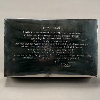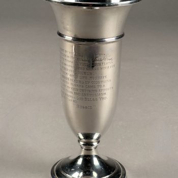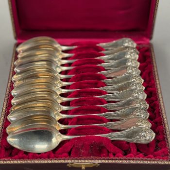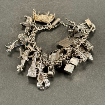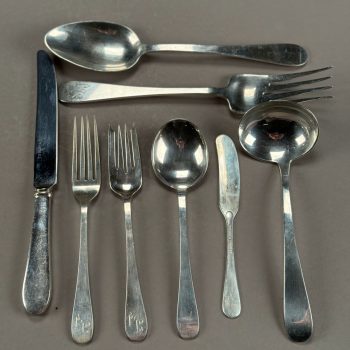 Home / ANTIQUE ESTATE AUCTION - FRI JANUARY 30 AT 6 PM / Page 2 ANTIQUE ESTATE AUCTION - FRI JANUARY 30 AT 6 PM Showing 61–120 of 290 results Default sorting Sort by popularity Sort by latest Sort by price: low to high Sort by price: high to low LOT 061 STERLING BRACELET WITH 24 LINKS PAVED WITH DARK BLUE STONES. 7″(L) LOT 062 14K YG AND BEAD NECKLACE. 16-1/2″(L) LOT 063 14K YG DIAMOND AND PEARL NECKLACE AND EARRING SET. 18″(L), 5.2 DWT (8.2 G) LOT 064 UNMARKED WHITE GOLD (PROBABLY 14K) 17-1/2″ CHAIN WITH 1-3/4″(L) DIAMOND UNMARKED WHITE GOLD AND BLACK STONE PENDANT. CHAIN 1.5 DWT (2.5 G), PENDANT 2.7 DWT (4.2 G) LOT 065 14K WG CHAIN WITH 10K YG DIAMOND AND EMERALD PENDANT. 22″(L) CHAIN, .8 DWT (1.2 G), PENDANT .8 DWT (1.2 G) LOT 066 14K AND 10K MOTHER OF PEARL WITH CENTER DIAMOND EARRINGS AND SHIRT STUDS LOT 067 TWO PAIR OF GOLD PIERCED EARRINGS, 1 SET WITH SMALL DIAMONDS, THE OTHER WITH RED STONES LOT 068 LOT OF EARRINGS AND SHIRT STUDS IN AMETHYST AND CITRINE COLOR LOT 069 LOT OF PIERCED EARRINGS INCLUDING PEARL, GOLD, CORAL AND A SINGLE BLACK PEARL WITH DIAMOND LOT 070 TWO INTAGLIO CUT STONE RINGS, ONE WITH FAMILY CREST SIZE 9-1/2, THE OTHER WITH ARABIC WRITING SIZE 9-1/2 LOT 071 STERLING AND TURQUOISE RING, SIZE 12. LOT 072 UNMARKED SILVER AND TURQUOISE BRACELET WITH LARGE OVAL STONE. 1.3 OZT LOT 073 UNMARKED SILVER AND TURQUOISE RING HAVING A CARVED FROG DESIGN, SIZE 7-3/4 LOT 074 HEAVY HANDMADE CUFF BRACELET IN UNMARKED SILVER WITH A LARGE TURQUOISE STONE. 2.1 OZT LOT 075 UNMARKED SILVER RING WITH LARGE TURQUOISE OVAL STONE, SIZE 4-1/2 LOT 076 SILVER, CORAL, AND TURQUOISE HANGING PENDANT, UNMARKED. 2 X 1-1/4 LOT 077 UNMARKED SILVER RING WITH CABOCHON RED CORAL STONE, SIZE 7 LOT 078 SMALL SILVER AND TURQUOISE CONCHO BELT, 13 LINKS, UNMARKED. 33″(L), 2.7 OZT LOT 079 LONNIE WILLIE SILVER AND CORAL STONE, SIZE 6 LOT 080 LARGE ROUND SILVER REPOSE DECORATED BOX WITH HINGED LID AND HANGING LOOP. 2″(D), 1 OZT LOT 081 LARGE SILVER LOS CASTILLO, “PLUMA AZTECA” PENDANT WITH CUT OUT IMAGES OF 2 WARRIORS. 3-1/2 X 4-1/2, 3 OZT LOT 082 LARGE NATIVE AMERICAN SILVER KACHINA BOLO TIE DEPICTING AN EAGLE DANCER, FIGURE IS 4″(H), 4″ WINGSPAN LOT 083 AGATE WAX SEAL WITH AGATE CARVED HANDLE. 1-3/4″(L) LOT 084 TWENTY-TWO ANTIQUE STICK PINS INCLUDING ONE MARKED 14K, SATSUMA FACE, FLAG WITH BULLET, DIAMOND AND MORE. LONGEST 3″ LOT 085 SILVER & BLUE LAPIS BEAD NECKLACE IN GRADUATED SIZES. 25″(L) LOT 086 MEXICAN STERLING CHARM BRACELET HAVING 19 CHARMS INCLUDING SPINNING WHEEL, DICE, LOCOMOTIVE, TYPEWRITER, HELICOPTER, AND MORE. LOT 087 STERLING PIN WITH 5 HANGING CHARMS OF A PEACOCK AND BIRD PIN. 3″ X 2″, 1 OZT, “PERU” LOT 088 TWO PART STERLING BELT BUCKLE DECORATED WITH “C” SCROLLS AND FLOWER HEADS. 4-1/2″(L) X 2″(W), 1.3 OZT LOT 089 LARGE PAIR OF STERLING SILVER CANDLESTICKS. 12-3/4″(H), 28.4 OZT LOT 090 18TH C. GERMAN SILVER MUFFINEER WITH REPOUSSE DECORATION. 7″(H), 5.9 OZT LOT 091 STERLING SILVER PRESENTATION BOX BY ANDREW A. TAYLOR, NEWARK, NJ 1930-1973, WEIGHT WITHOUT WOOD LINER 23.7 OZT. 9-1/2″(W), 5-3/4″(D), 2″(H) LOT 092 STERLING SILVER “DWIGHT AWARD” CUP, WEIGHTED BASE, 10″(H) LOT 093 CASED ENGLISH STERLING SILVER TEASPOONS AND SUGAR TONGS SET, SHEFFIELD, 1911-1912, 4 OZT LOT 094 CASED GERMAN 800 SILVER SET OF 12 SPOONS, 5-3/4″(L), 9.3 OZT LOT 095 “THE CHARLES”, LONDON POCKET LIGHTER, SILVER PLATED, DESIGNED BY MEYER MAXIMILIAN LEVENE. 1-3/4 X 1-3/4 LOT 096 GORHAM STERLING SILVER CIGAR HOLDER (HOLDS 3). 5″ X 2-1/2″, 3.5 OZT LOT 097 CARTIER UNMARKED SILVER COMPACT. 3″ X 2-1/4″, 2.7 OZT LOT 098 STERLING SILVER DOUBLE SHELL DISH WITH CENTER HANDLE. 9-1/2″ X 6″, 7.9 OZT LOT 099 TWELVE STERLING SILVER STIRRING STRAWS. 8″(L), 4.7 OZT LOT 100 TWO STERLING SILVER OVAL DISHES. 8-1/2 X 6-1/2 AND 5-1/4 X 4-1/4, 11.8 OZT LOT 101 SOLID SILVER HAND HAMMERED PLATE MARKED “WELSCH PLATA 900”. 10-3/4″(D), 21 OZT LOT 102 FISHER STERLING SUGAR & CREAMER ALONG WITH 2 STERLING SALT SHAKERS. 4.9 OZT LOT 103 OVAL STERLING SILVER DISH. 9-3/4 X 6, 12.2 OZT LOT 104 FORTY PC STERLING SILVER FLATWARE SET BY TIFFANY & CO. IN THE “SALEM” PATTERN. 53.7 OZT (WITHOUT 7 KNIVES) LOT 105 TIFFANY & CO. STERLING SILVER HANDLED DISH. 12″ X 7″, 15.6 OZT LOT 106 SILVER GOBLET, ACCORDING TO CLARKE SCHOOL RECORDS, “SILVER CUP FROM SOUTH AMERICA 200+ YEARS OLD, HAND WROUGHT AND HAMMERED ALMOST ENTIRELY OF PURE SILVER”. 6″(H), 15.6 OZT LOT 107 STERLING PRESENTATION CUP TO “H.B. ROGERS FROM HER CO-LABORERS, CLARKE INST. JULY 8, 1871”, 3″(H), 5.7 OZT LOT 108 ANTIQUE PILLAR & SCROLL SETH THOMAS SHELF CLOCK WITH INSIDE LABEL. 32″(H), 17-1/2″(W) LOT 109 FRAMED COLOR LITHOGRAPH, “BATTLE OF BUNKER HILL”, KURZ & ALLISON, 19-1/2 X 27 SIGHT SIZE LOT 110 FRAMED COLOR LITHOGRAPH, “BATTLE OF THE WILDERNESS”, KURZ & ALLISON, 1887, 19 X 26 SIGHT SIZE LOT 111 FRAMED COLOR LITHOGRAPH, “BATTLE OF CHANCELLORSVILLE”, KURZ & ALLISON, 1889, 19 X 25-1/2 SIGHT SIZE LOT 112 FRAMED COLOR LITHOGRAPH, “BATTLE OF CEDAR CREEK”, KURZ & ALLISON, 1890, 19 X 26 SIGHT SIZE LOT 113 UNFRAMED COLOR LITHOGRAPH, “SIEGE OF VICKSBURG”, KURZ & ALLISON, 1888, MATTED. 21 X 28 LOT 114 SMALL SCHOOL GIRL NEEDLEWORK SAMPLER, “GRENA VANDYKE C. VALLEY AGED 12, 1827 ALPHA-NUMERIC ROWS AND TREE LINED BOTTOM, FRAMED. 9-1/2 X 9 SIGHT SIZE LOT 115 SMALL CHIPPENDALE WALL MIRROR WITH CREST DECORATED WITH STYLIZED PRINCE OF WALES PLUME. 25-12″(H) LOT 116 FRAMED PORTRAIT OF GENTLEMAN, 18TH C., OIL ON COPPER. 5 X 3-1/2 SIGHT SIZE LOT 117 FRAMED MINIATURE PORTRAIT OF A YOUNG GIRL SEATED READING FROM AN OPEN BOOK. 4-1/2″ X 4-1/4″ SIGHT SIZE LOT 118 SIGNED SNOW COVERED ROAD, OIL ON CANVAS, SIGNED ILLEGIBLY BOTTOM RIGHT J. REMMEL, FRAMED. 20 X 24 LOT 119 FRAMED MINIATURE OF A YOUNG GIRL IN BLUE DRESS, WRITTEN ON BACK “L. ATKINSON NO 1 LONDON STREET HACKNEY ROAD”. 3-1/2 X 2-1/2 SIGHT SIZE LOT 120 SIGNED, FARM HOUSE ACROSS THE RIVER, OIL ON CANVAS, SIGNED ILLEGIBL
