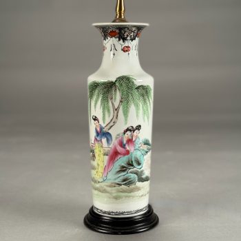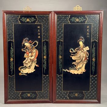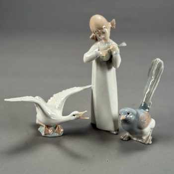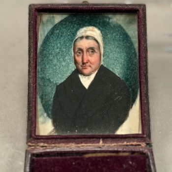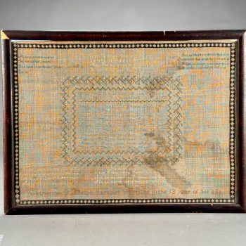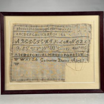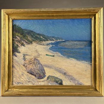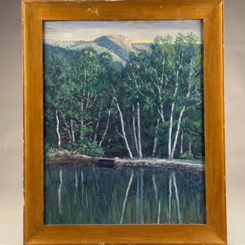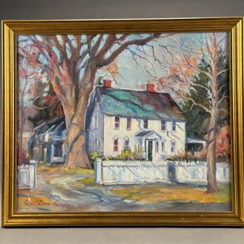 Home / ANTIQUE ESTATE AUCTION - FRI JANUARY 30 AT 6 PM / Page 3 ANTIQUE ESTATE AUCTION - FRI JANUARY 30 AT 6 PM Showing 121–180 of 290 results Default sorting Sort by popularity Sort by latest Sort by price: low to high Sort by price: high to low LOT 121 THREE PCS OF EARLY AMERICAN GLASS, 5″(D) CLEAR GLASS BOWL, 3″ HAND BLOWN BLUE MASTER SALT, DIAMOND PATTERN, POSSIBLY STIEGEL, AND 7-3/4″ GREEN CHESTNUT BOTTLE (SMALL CRACK OFF ORIGINAL BUBBLE) LOT 122 PAIR OF BRASS LEMON TOP ANDIRONS WITH LOG STOPS. 19-1/2”(H) LOT 123 UNUSUAL ROUND WOOD AND PIERCED TIN FOOT WARMER WITH TRAY 6”(H) 10”(D) LOT 124 STENCIL DECORATED CANE SEAT ANTIQUE BOSTON ROCKER. 42-1/2″(H) LOT 125 FOUR PCS ANTIQUE PEWTER, 13-1/4″(D) PLATE, 9-1/4″(D) PLATE, 9-3/4″(D) PLATE, 9″(D) BASIN LOT 126 PAIR OF HEAVY BRASS TALL BALL AND SPIRE ANDIRONS HAVING BALL & CLAW FEET AND LOG STOPS. 26-1/2”(H) LOT 127 ANTIQUE SCHOOLGIRL NEEDLEWORK FAMILY REGISTER OF THE COWLS FAMILY BY LOISA COWLS AGED 10, UNDER THE INSTRUCTRESS “MISS OLIVE SMITH”, THOUGHT TO BE OF AMHERST/HADLEY, MA AREA, FLOWER BORDER WITH BIRDS, TREES, WATER AND ANIMALS, PERIOD FRAME. 10-3/4 X 10-1/4 SIGHT SIZE LOT 128 ANTIQUE SCHOOLGIRL NEEDLEWORK FAMILY REGISTER FOR THE PHELPS FAMILY, ROGER PHELPS AND RHODA PHELPS AND THEIR 9 CHILDREN, 1804-1827 EXECUTED BY CATHERINE O. PHELPS IN HER 13TH YEAR (1841) HAVING 6 VERSES SURROUNDING THE REGISTER, FRAMED. 17-3/4 X 21-1/4 SIGHT SIZE – ROGER WAS BORN AND DIED IN WINDSOR, CT LOT 129 FRAMED PARTIAL SCHOOLGIRL NEEDLEWORK SAMPLER BY CATHARINE PHELPS AGED 9 IN BLACK STITCH. 12-1/2 X 16 LOT 130 ROUND MINIATURE PAINTING OF A YOUNG WOMAN IN RUFFLED EDGE BROWN DRESS. 2-1/4″(D) LOT 131 FOUR DRAWER CHIPPENDALE CHEST ON BRACKET BASE WITH OLDER FINISH. 42″(H), CASE: 39-1/2″(W), 18-1/4″(D) LOT 132 ROBERT F. WILLIAMS, GREEN DORY ON A SANDY SHORELINE, OIL ON CANVAS, SIGNED LOWER LEFT, HOUSED IN A SIGNED PERIOD NEWCOMB-MACKLIN CO. FRAME, WHICH HAS A PARTIAL EXHIBITION LABEL TO REVERSE. 20 X 24 LOT 133 ROBERT F. WILLIAMS, “DOLLY COPP CAMPS, WHITE MOUNTAINS NH AUG 25, 1939”, OIL ON MASONITE, SIGNED LOWER RIGHT, FRAMED. 20 X 16 LOT 134 BAUSCH & LOMB CO. MICROSCOPE IN WOOD CASE INCLUDING 3 LENSES. 13″(H) LOT 135 ELICE DAVIS PIEROPAN, “KEEPER OF THE ELM”, OIL ON CANVAS, SIGNED LOWER LEFT, FRAMED. 20 X 24 LOT 136 ANTIQUE MINIATURE PORTRAIT OF A GENTLEMAN IN INTERIOR SETTING, IN CASE. 2-3/4 X 2 LOT 137 TWO WOOD AND PIERCED FOOT WARMERS WITH TRAYS. 6”(H) 9”(W) 8”(D) LOT 138 ANTIQUE MINIATURE PORTRAIT OF A WOMAN WEARING WHITE BONNET, IN CASE. 2-3/4 X 2-1/4 LOT 139 ONE DRAWER SHERATON MAHOGANY STAND WITH CARVED SPIRAL AND TURNED LEGS. 26-1/2″(H), 18″(W), 17″(D) LOT 140 PAIR OF IRON GOOSENECK ANDIRONS 17”(H) LOT 141 ANTIQUE PAIR OF BRASS BALL TOP ANDIRONS WITH LOG STOPS. 16”(H) LOT 142 SIGNED, “DR ARCHIBALD V. GALBRAITH”, PASTEL, SIGNED LOWER RIGHT AND DATED 1965. HE WAS HEADMASTER AT WILLISTON ACADEMY (1919-1949), FRAMED. 20-1/4 X 16-1/4 SIGHT SIZE LOT 143 ANTIQUE CAST IRON PRATT & LETCHWORTH HORSE DRAWN BOY’S EXPRESS WAGON, 2 ARTICULATED HORSES, DRIVER, AND STENCILED SIDE. 17″(L) LOT 144 SIXTEEN CHINA HEAD STICK DOLLS AND PAINTED WOOD DOLL (15-1/2″) LOT 145 SIX BOARD ANTIQUE BLANKET CHEST WITH CUT OUT ENDS FOR FEET (HINGE MISSING). 24″(H), 46″(W), 18″(D) LOT 146 RARELY USED 3-PIECE STRUCTO TO ROAD BUILDING ASSORTMENT WITH BOX (DAMAGED), 17″ ROAD GRADER, 19″ DUMP TRUCK, 17″ STEAM SHOVEL LOT 147 THREE ANTIQUE STEEL TOY VEHICLES: (1) 21″(L) YELLOW & RED TROLLEY. (2) 9-1/4″(L) “BUDDY’S DO-NUT BAKERY TRUCK BY BANNER. (3) 10″(L) GREEN TRUCK LOT 148 JOHN D. MAZIARZ, “GOLDEN RIDGE #3”, OIL ON CANVAS, SIGNED AND DATED ’81 LOWER LEFT. 20 X 30 LOT 149 JOHN D. MAZIARZ, “NEW ENGLAND IKON” (LATE AUTUMN #2), OIL & COLLAGE, SIGNED LOWER RIGHT, DATED 1983, SIMPLE OUTLINE FRAME. 30 X 40 LOT 150 JOHN D. MAZIARZ, “GOTHIC CATHEDRAL” 1956, OIL ON CANVAS, SIGNE LOWER LEFT, FRAMED. 30-1/2 X 23-1/2 LOT 151 THREE LLADRO FIGURINES OF GIRLS. 7″ – 8-1/2″(H) LOT 152 THREE LLADRO FIGURINES OF GIRLS. 5-1/4″ – 6-1/2″(H) LOT 153 THREE LLADRO FIGURINES, 8-1/4″ GIRL WITH LUTE, 5-1/4″ BIRD, 6(L) GOOSE LOT 154 CLEAR GLASS CENTER BOWL BY ROSENTHAL IN THE “CLASSIC” DESIGN. 5-3/4″(H), 10″(D) LOT 155 LALIQUE BLUE GLASS TROPICAL FISH, SIGNED AND WITH ORIGINAL BAG. 1-3/4″(H) X 2″(W) LOT 156 TWO BACCARAT CLEAR GLASS PCS, 5-1/2″(D) COASTER IN BOX AND 6-1/2″(D) STAR SHAPED DISH LOT 157 LIMOGES ENAMEL DISH DECORATED WITH FLOWERS AGAINST A GREEN BACKGROUND BY NOEL NIVARD AND YVONNE PINGEN. 6-3/4″(D) LOT 158 EIGHTEEN PCS OF CUT GLASS BY AND SIGNED THOMAS WEBB, ENGLAND INCLUDING 8″ PITCHER, (9) 4″ MUGS AND MORE ALONG WITH (4) 5″ BACCARAT WINES AND AN UNMARKED CANDLESTICK LOT 159 SILVER OVERLAY CUT GLASS WATER PITCHER. 10″(H) LOT 160 WALTER KAMYS, “BORDER LANDSCAPES”, OIL ON CANVAS, SIGNED ON REVERSE, DATED 1967, FRAMED. 40 X 50 LOT 161 WALTER KAMYS, “ASSISI” INK/WATERCOLOR, SIGNED LOWER RIGHT AND DATED 1955, FRAMED. 18 X 25 SIGHT SIZE LOT 162 WALTER KAMYS, ABSTRACT, OIL ON CANVAS, SIGNED ON REVERSE, UNFRAMED, DATED 2008. 24 X 36 LOT 163 COLORFUL ITALIAN ART GLASS DECANTER WITH STOPPER BY MURANO IN THE “ZECCHIN STYLE”. 12-1/2″(H) LOT 164 SIGNED (ASIAN) WATERFALLS IN THE MOUNTAINS, GOUACHE, SIGNED MIDDLE LEFT, FRAMED. 43 X 30-1/2 SIGHT SIZE LOT 165 CLOISONNE CYLINDER VASE LAMP WITH FLOWING TREE DESIGN VASE. 12-1/2″(H), OVERALL 32-1/2″(H) LOT 166 JADE BANGLE BRACELET, 2-1/4″ INSIDE DIAMETER, WHITE & GREEN COLOR LOT 167 COLORFUL NEEDLEWORK MARRIAGE KIMONO WITH LAVISH NEEDLEWORK SCENES OF EXOTIC BIRDS, FLOWERS, CLOUDS AND MORE. 75″(L), 52″ ACROSS SHOULDERS LOT 168 LAVENDER KIMONO WITH SCENES OF FLOWERS, HUTS AND BAMBOO. 64″(L), 46″ ACROSS SHOULDERS LOT 169 BLACK KIMONO WITH SCENES OF BIRDS AND TREES. 62″(L), 49″ ACROSS SHOULDERS LOT 170 BLUE FLOWER DECORATED KIMONO. 54″(H), 48″ ACROSS ARMS LOT 171 CHINESE FAMILLE ROSE VASE