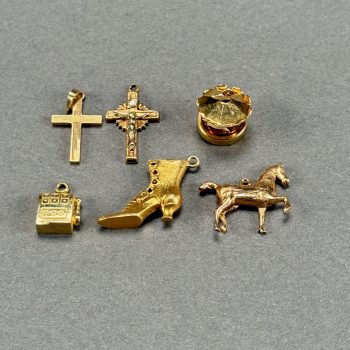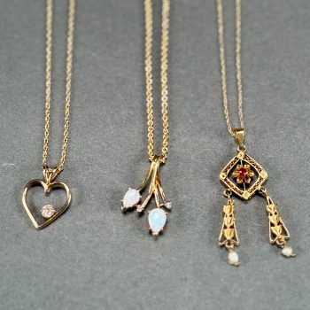 Home / ANTIQUE ESTATE AUCTION - FRI MARCH 27 AT 6 PM ANTIQUE ESTATE AUCTION - FRI MARCH 27 AT 6 PM PREVIEW: THURS. 8AM – 4PM AND FRI. 8AM – 6PM CLICK IMAGE TO OPEN – CLICK MAGNIFY GLASS TO ENLARGE IMAGE Showing 1–60 of 344 results Default sorting Sort by popularity Sort by latest Sort by price: low to high Sort by price: high to low LOT 001 14K YG AND DIAMOND RING, SIZE 6-3/4. 4.7 DWT (7.3 G) LOT 002 PLATINUM LARGE DIAMOND RING, SIZE 5-3/4. 2.7 DWT (4.2 G) LOT 003 18+K YG DIAMOND & TOPAZ BRACELET. 15.3 DWT (23.9 G) LOT 004 FINE 3 PC PEARL SUITE WITH DIAMOND SAPPHIRE AND 14K YG CLASPS, 16″ NECKLACE, 7″ BRACELET, AND PAIR PIERCED EARRINGS. LOT 005 14K YG AND TOPAZ RING, SIZE 7. 5.1 DWT (7.9 G) LOT 006 14K YG AND DIAMOND RING, SIZE 5-3/4. 2.4 DWT (3.7 G) LOT 007 14K YG SAPPHIRE RING, SIZE 7. 3.4 DWT (5.3 G) LOT 008 14K YG DIAMOND & RUBY RING, SIZE 5-1/4. 2.7 DWT (4.2 G) LOT 009 14K YG CITRINE & SEED PEARL BROOCH. 1-1/2 X 1-1/4 LOT 010 GOLD RING WITH AMETHYST STONE, SIZE 6-1/2. 1.6 DWT (2.5 G) LOT 011 14K YG EMERALD & AMETHYST RING, SIZE 6-1/4. 3.8 DWT (5.9 G) LOT 012 14K YG SAPPHIRE & WHITE STONE RING, SIZE 5-1/2. 2.7 DWT (4.2 G) LOT 013 14K YG CLEAR STONE RING, SIZE 7-1/4. 2.9 DWT (4.5 G) LOT 014 14K YG CLOVER SHAPED PIN WITH 12 EMERALDS AND 1 RUBY LOT 015 14K YG CLEAR STONE RING, SIZE 5. 1.6 DWT (2.5 G) LOT 016 14K YG BLUE & CLEAR STONE RING, SIZE 7. 2.2 DWT (3.4 G) LOT 017 14K YG JADE & DIAMOND RING, SIZE 7. 3.6 DWT (5.7 G) LOT 018 14K YG RUBY & SEED PEARL RING, SIZE 4-3/4. 2.1 DWT (3.2 G) LOT 019 ANTIQUE GARNET PIN. 1-1/4″(D) LOT 020 ANTIQUE GARNET BUTTERFLY BROOCH. 1-1/4″ X 1-3/4″ LOT 021 ANTIQUE GARNET BRACELET LOT 022 ANTIQUE ROUND GARNET BROOCH. 1-1/2″(D) LOT 023 ANTIQUE GARNET DANGLE STYLE PENDANT. 2-1/4″(L) LOT 024 14K (TESTED) OPAL & DIAMOND RING, SIZE 4-1/2. 1.6 DWT (2.5 G) LOT 025 14K (TESTED) OPAL & DIAMOND RING, SIZE 4-1/4. 1.1 DWT (1.7 G) LOT 026 ANTIQUE VICTORIAN BULLSEYE BANDED AGATE BROOCH. 1-1/4 X 1 LOT 027 14K YG 18″ CHAIN, .5 DWT (.8 G) AND 9K PENDANT, 1.2 DWT (1.9 G) LOT 028 14K YG SOLITAIRE DIAMOND RING, SIZE 8. 1.5 DWT (2.3 G) LOT 029 TWO PAIR OF GREEN STONE EARRINGS AND 14K YG WEDDING BAND, SIZE 5-1/2 LOT 030 14K YG AND WHITE STONE RING, SIZE 8-1/4. 1.5 DWT (2.3 G) LOT 031 DAMASCENE AND 24K GOLD INLAID BRACELET IN ORIGINAL BOX LOT 032 14K YG AND BLUE STONE RING, SIZE 7. 4.1 DWT (6.4 G) LOT 033 14K YG (TESTED) PEARL PIN WITH FLORAL DESIGN, 2″(L). 3.8 DWT (5.9 G) LOT 034 14K YG DIAMOND & GREEN STONE RING, SIZE 7-1/4. 2.3 DWT (3.6 G) LOT 035 14K YG DIAMOND BRACELET. 3.4 DWT (5.3 G) LOT 036 14K YG CLEAR STONE RING, SIZE 7. 3.2 DWT (5 G) LOT 037 14K YG AQUAMARINE RING, SIZE 6-3/4, 1.6 DWT (2.5 G) LOT 038 14K YG CLEAR & RED STONE RING, SIZE 6-3/4. 1.6 DWT (2.4 G) LOT 039 LIGHT CARVED JADE EARRING. 2-1/2″ X 1-1/2″ LOT 040 18K WG RING WITH CLEAR STONE, SIZE 6. 1.6 DWT (2.5 G) LOT 041 14K YG BLUE STONE RING, SIZE 7-1/4. 2.6 DWT (4 G) LOT 042 14K YG PEARL & RUBY RING, SIZE 6-1/4. 4.1 DWT (6.4 G) LOT 043 14K YG DIAMOND RING, CENTER DIAMOND HAVING 3 DIAMONDS ON EACH SIDE, SIZE 6-1/2. 2.3 DWT (3.7 G) LOT 044 NICE ANTIQUE STICK PINS LOT 045 SIX 14K YG CHARMS. 7.8 DWT (12.2 G) OR .39 OZT LOT 046 THREE 14K YG NECKLACES, 1 WITH SMALL DIAMOND, ANOTHER WITH 2 OPALS AND THE LAST WITH RED STONE. 7.6 DWT (11.86 G) LOT 047 14K YG PEARL & RED STONE RING, SIZE 8. 5.2 DWT (8.1 G) LOT 048 14K YG RUBY RING, SIZE 8. 8.2 DWT (12.8 G) LOT 049 14K YG DIAMOND SOLITAIRE RING, SIZE 7-1/4. 4.2 DWT (6.5 G) LOT 050 10K YG INTAGLIO CUT BLACK STONE RING, SIZE 10-1/2. 7.4 DWT (11.5 G) LOT 051 14K YG SEIKO WRISTWATCH (NO BAND). TOTAL WEIGHT: 12.6 DWT, (19.7 G) OR .63 OZT ALONG WITH ANOTHER SEIKO WRISTWATCH LOT 052 18K YG WATCH CHAIN, 10″(L), 4.6 DWT (7.2 G) ALONG WITH GOLD PLATED POCKET WATCH BY MOERIS, 15 JEWEL, HUNTER CASE LOT 053 TWO 14K YG WEDDING BANDS, SIZE 8-1/2. 9.1 DWT (14.2 G) LOT 054 10K YG DRURY HIGH SCHOOL CLASS RING, 1970, SIZE 7-1/2. 9.7 DWT (15.1 G) LOT 055 TWO 14K YG RINGS (1 TESTED), ONE WITH DIAMOND, SIZE 6-1/4, THE OTHER WITH RUBY, SIZE 7-3/4. 2.8 DWT (4.3 G) LOT 056 PAIR OF GOLD FILLED ANTIQUE BRACELETS LOT 057 GOLD FILLED BRACELET LOT 058 STERLING & TURQUOISE SQUASH BLOSSOM NECKLACE, 22″(L) ALONG WITH 2 PAIR PIERCED EARRINGS LOT 059 TURQUOISE & BEAD NECKLACE, 30″(L) ALONG WITH 2 PAIR TURQUOISE EARRINGS LOT 060 STERLING SILVER AND CUT GREEN STONE NECKLACE, 20″(L) 1 2 3 4 5 6 →