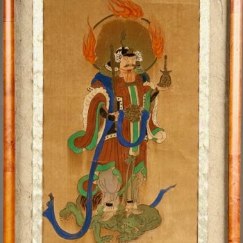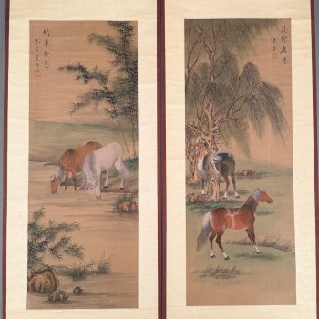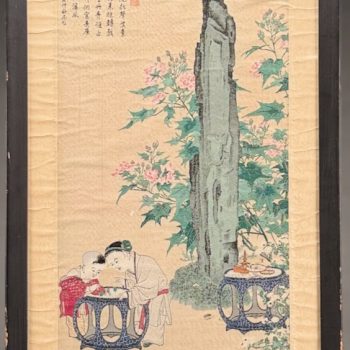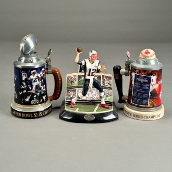 Home / ANTIQUE ESTATE AUCTION - FRI MARCH 27 AT 6 PM / Page 3 ANTIQUE ESTATE AUCTION - FRI MARCH 27 AT 6 PM Showing 121–180 of 344 results Default sorting Sort by popularity Sort by latest Sort by price: low to high Sort by price: high to low LOT 121 THREE ANTIQUE BOTTLES: (1) 8″(H) ALLEN’S LUNG BALSAM. (2) 9″(H) DR O PHELPS BROWN, JERSEY CITY N.J. (3) 11-1/2″(H) DYOTTVILLE GLASS WORKS, PHILA. LOT 122 THREE ANTIQUE BLOB TOP SODA BOTTLES: (1) 7″(H) COBURN LANG & CO. BOSTON. (2) 8″(H) WEISS BEER, MCKINNEY & CO, PHILADA. (3) 7″(H) TARR & SMITH, BOSTON LOT 123 THREE ANTIQUE SPRING WATER BOTTLES: (1) 9-1/2″ CLARKE & WHITE, NEW YORK. (2) 8″ EXCELSIOR SPRING, SARATOGA, NY. (3) 8″ CONGRESS SPRING CO., SARATOGA, NY LOT 124 ANTIQUE SHERATON DROP LEAF STAND IN MAHOGANY HAVING 2 DRAWERS ON FRONT AND BACK, CARVED LEGS ON CASTER FEET. 28″(H), 24-1/”(D), 16-1/4″(W), OPEN 38-3/4 LOT 125 UNSIGNED, PAIR OF WORKS, WINTER LANDSCAPE AND COASTAL SCENE, FRAMED. 6-1/4 X 18 LOT 126 PENNSYLVANIA WINDSOR BENCH WITH SCROLL ARMS. 31″(H), 17″(D), 56-1/2″(W) LOT 127 CLAUDE L. PAYZANT, ON THE HIGH SEAS, OIL ON CANVAS, SIGNED LOWER RIGHT, FRAMED. 32 X 38 LOT 128 SCOTTISH GEORGE III MAHOGANY TALL CLOCK BY CHARLES SHEDDEN OF PERTH, PENDULUM AND WEIGHTS PRESENT. (NEEDS SUSPENSION SPRING)78″(H), 18″(W) LOT 129 CLAUDE GROSPERRIN, BOATS AT REST, LITHOGRAPH, SIGNED IN PENCIL BOTTOM RIGHT, 224/275, COLLECTOR’S GUILD LABEL TO REVERSE, FRAMED. 17-1/2 X 22-1/2 SIGHT SIZE LOT 130 WILLIAM & MARY STYLE 1-DRAWER STAND. 18″(H), 19″(W), 18-1/2″(D) LOT 131 EARLY ANTIQUE BRASS DIAL WALL CLOCK, NO PENDULUM. 15″(H), 8″(W) LOT 132 ANTIQUE CONTINENTAL HANGING CABINET WITH SHELVES AND GLASS FRONT. 34-1/2″(H), 51″(W), 7-1/4″(D) LOT 133 CARVED WALNUT SIDEBOARD BY NEW YORK GALLERIES. 35-1/2″(H), 78″(W), 21-1/2″(D) LOT 134 LOUIS CHARLES JANSON, TEACH AND PUPIL, BRONZE, SIGNED “CH. JANSON 1865” BELOW FOOT. 14″(H) LOT 135 SCHOOL GIRL NEEDLEWORK SAMPLER BY MARY C. ENDICOTT, 1844, ALPHA-NUMERIC ROWS WITH VERSE, FRAMED. 16 X 11-1/4 SIGHT SIZE LOT 136 SHERATON 2-DRAWER STAND. 28-1/2″(H), 21 X 15-1/2 LOT 137 CUSTOM MADE BIRDSEYE MAPLE BOX WITH HINGED LID AND RAISED PANELS. 15”(H) X 21-1/2”(W) X 14-3/4”(D) LOT 138 FINE REPRODUCTION CORNER CHAIR WITH PIERCED BACK SPLATS. 34”(H) LOT 139 JOHNNY FRIEDLAENDER, “FLOWERS II”, ETCHING WITH AQUATINT, SIGNED LOWER RIGHT, 63/200, UNFRAMED. 19-3/4 X 14-3/4 LOT 140 JOHNNY FRIEDLAENDER, “COMPOSITION WITH COCKEREL”, ETCHING, SIGNED LOWER RIGHT, VI/LX, UNFRAMED. 22-1/4 X 15 LOT 141 JOHNNY FRIEDLAENDER, COMPOSITION WITH FISH, ETCHING WITH AQUATINT, SIGNED LOWER RIGHT, 190/200, UNFRAMED. 15 X 22-1/2 LOT 142 CARVED AND PAINTED WOOD MASK WITH BIRD TOP, 18-1/2”(H) LOT 143 CARVED AND PAINTED WOOD MASK, 17-1/2”(H) LOT 144 CHINESE PAINTING OF STANDING MALE FIGURE STANDING ATOP AN ANIMAL, FRAMED, 30”(H) 13-1/2”(W) SIGHT SIZE LOT 145 FRAMED CHINESE RANK BADGE, NEEDLEWORK, FRAMED, 12” X 12” LOT 146 CAST IRON DRAGON FIGURE WITH GOLD AND GREEN PAINT. 8-1/2″(H), 14″(L) LOT 147 ANTIQUE CLOISONNE VASE LAMP, THE VASE IN BLACK WITH GOLD DRAGON, WITH SHADE. 25-1/2″(H) LOT 148 CARVED SOAPSTONE SCULPTURE OF VASES AND FLOWERS WITH EXOTIC BIRDS. 9″(H), 12″(W) LOT 149 TWO JAPANESE SCROLLS, BOTH HORSES IN LANDSCAPE, SIGNED. 55″ X 13″ LOT 150 ANTIQUE JAPANESE TANTO SWORD OR DAGGER, SIGNED, NO GRIP. 15-1/2″(L) LOT 151 HANGING TIBETAN THANGKA HAND PAINTED WITH MANDALA DHARMA WHEEL DECORATION. 21” (H) 15”(W) LOT 152 HANGING TIBETAN THANGKA, HAND PAINTED WITH WRATHFUL MANJUSHRI, WITH A CHANGING TIBETAN THANGKA, HAND PAINTED WITH WRATHFUL MANJUSHRI, WITH A COLORFUL BROCADE FABRIC SURROUND 32” X 22” LOT 153 ANTIQUE ROSE FAMILLE VASE LAMP, SIGNED ON REVERSE, INTERIOR DOMESTIC SCENE DECORATION, WITH SHADE. 29″ OVERALL, 13-1/2″ VASE LOT 154 20TH C. WEDDING KIMONO NEEDLEWORK WITH CRANES. 76″ X 52″ LOT 155 20TH C. WEDDING KIMONO NEEDLEWORK WITH CRANES. 78″ X 52″ LOT 156 PAIR OF ANTIQUE SATSUMA VASES DECORATED WITH WARRIORS. 14-1/2″(H) LOT 157 PAIR OF SATSUMA 9-1/2″(H) VASES AND SMALL 3″ COVERED JAR (RIM CHIPS) LOT 158 BRONZE LYING CAT ON WOOD BASE. 4″(H), 7″(W), 4″(D) LOT 159 CHINESE BRASS HINGED TOP BOX WITH INSET CARVED JADE PLAQUE. 1-1/2″(H), 4-1/2″(W), 3-3/4″(D) LOT 160 FRAMED NEEDLEWORK SCROLL HAVING 2 FIGURES AT TABLE WITH LANDSCAPE. 35-1/2 X 14 SIGHT SIZE LOT 161 TIBETAN TIGER RUG 3 X 6 LOT 162 PAIR OF MUSEUM REPRODUCTIONS OF 15TH C. ILLUMINATED MANUSCRIPT PAGES, FRAMED. 8-3/4 X 6 SIGHT SIZE LOT 163 FRAMED PERSIAN MANUSCRIPT PAGE, 11 X 7 SIGHT SIZE LOT 164 ANTIQUE 2-PART BRASS BRAZIER WITH FIGURAL FINIAL. 40″(H), 16″(D) LOT 165 PAUL F. FRONTIERO, MOTIF & LOBSTERMAN, OIL ON WOOD PANEL, SIGNED LOWER RIGHT, FRAMED 8 X 10, SMALL SMALL WORLD GALLERY TAG TO REVERSE LOT 166 BOSTON RED SOX 2013 WORLD SERIES CHAMPIONS PLAQUE 15” X 12” LOT 167 GREY, RED SOX SHIRT SIZE XL SIGNED BY DAVID ORTIZ. GATEWAY CITY SIGNATURES AUTHENTIC AUTOGRAPH LOT 168 THREE SPORT COLLECTABLES. (1) 9-1/2”(H) PATRIOTS SUPER BOWL 49 STEIN L.E. 0911. (2) 8” RED SOX 2013 WORLD SERIES STEIN L. E. 1624. (3) 8’ TOM BRADY SUPER BOWL 49 FIGURINE L.E. 0179 LOT 169 THREE AUTOGRAPHED BASEBALLS: (1) TAMPA BAY RAYS BALL W/2 SIGNATURES. (2) RED SOX BERNIE CARBO 1978. (3) RAYS 1000TH WIN 9-7-2011, 7 AUTOGRAPHS OF THE RIGHT FIELD CREW LOT 170 NEW ENGLAND PATRIOTS TEAM SIGNED BASEBALL CAP POSSIBLY 1999-2001? BLACK SIGNATURES ON BLUE. DIFFICULT TO READ LOT 171 SIGNED MANNY RAMIREZ #24 GLOVE (ELITE SPORTS AUTHENTICATED) LOT 172 THREE SIGNED BASEBALLS INCLUDING #11 DANNY ALMONTE (LITTLE LEAGUE AGE SCANDAL), JEREMIAH BAYER MINOR LEAGUE; AND ANOTHER LOT 173 PAIR OF GAME WORN BASEBALL SPIKE SHOES SIGNED BY JONATHAN PAPELBON #58 G/W 06 LOT 174 SIGNED JOCKEY CAP BY ROBBIE DAVIS LOT 175 SIGNED CINCINNATI REDS HELMET WILY MODESTO PENA GUTIERREZ (DAMAGED) LOT 176 TWO SIGNED FOOTBALLS, TROY BROWN (N.E. PATRIOTS) #80; SAMMY MORRIS (N.E. PATRIOTS) #34 L
