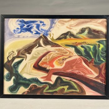 Home / ANTIQUE ESTATE AUCTION - FRI MARCH 27 AT 6 PM / Page 4 ANTIQUE ESTATE AUCTION - FRI MARCH 27 AT 6 PM Showing 181–240 of 344 results Default sorting Sort by popularity Sort by latest Sort by price: low to high Sort by price: high to low LOT 181 CONCERT POSTER: FILLMORE AUDITORIUM, S.F. “ONE NIGHT ONLY MR. B.B. KING, MOBY GRAPE, STEVE MILLER BLUES BAND FEB 26, 1967. 22 X 13-3/4 LOT 182 FRAMED LARGE PHOTOGRAPH OF AN ERUPTING VOLCANO, UNKNOWN LOCATION. 22-3/4 X 19 SIGHT SIZE LOT 183 ANTIQUE CAST IRON BOOK PRESS ON WOOD BASE. 13-1/2”(H), 13 X 20 LOT 184 MAXFIELD PARRISH, “DAYBREAK”, LARGE LITHOGRAPH, FRAMED. 17-1/4 X 29 SIGHT SIZE LOT 185 CARMEL SLAG 6 PANEL TABLE LAMP. 21″(H), 16″(D) SHADE LOT 186 JOHN ROY, OPTICAL ABSTRACTION, PEN & INK, SIGNED LOWER LEFT AND DATED ’56, ALSO INSCRIBED TO WALTER (WALTER KAMYS), FRAMED. 6-1/4 X 6-1/4 LOT 187 SALVADOR DALI, “NARCISSUS”, ETCHING, SIGNED IN PLATE, FRAMED. 7-1/2 X 5-1/2 SIGHT SIZE LOT 188 ALEXANDER CALDER, “DERRIERE LE MIROIR”, LITHOGRAPH, BACK OF A FOLDED TWO-PAGE TEXT, MATTED, UNSIGNED. 15 X 22 LOT 189 P.L. PECK?, WITH OUTSTRETCHED ARMS, WATERCOLOR, SIGNED WITH DATE OF 1944 AND INSCRIPTION ON REVERSE, UNFRAMED. 12-3/4 X 19-3/4 LOT 190 JOSEPH KANTOR, PORTRAIT OF WALTER KAMYS, OIL ON CANVAS, SIGNED LOWER RIGHT AND DATED 12-8-59, TITLED ON REVERSE, FRAMED. 13-1/2 X 7-1/4 LOT 191 HEINTZ ART METAL SHADE WITH ORIGINAL SILK LINEN, UNSIGNED, FLORAL MOTIF. 8-1/2″(D) LOT 192 VICTORIAN WALL CLOCK WITH TIME, STRIKE & ALARM, PENDULUM PRESENT. 49″(H) LOT 193 HENRI MATISSE, “TEENY”, LINOCUT PRINT, SIGNED IN PLATE LOWER LEFT, FRAMED. 12-1/4 X 9-1/4 SIGHT SIZE LOT 194 SMALL CARVED TOP GATELEG TABLE 28”(H), 27”(D), 9-1/2”(W), (23” OPEN) LOT 195 THREE PC MCCOY POTTERY TEA SET ALONG WITH MCCOY POTTERY 9″ BASKET AND VASE. 9-1/2″ LOT 196 PAIR OF MCCOY 8″(H) BIRD OF PARADISE STRAWBERRY PLANTER/VASES, AND 2 OTHER MCCOY VASES. 8-1/2″(H), 9″(H) LOT 197 SIXTY-FOUR PC DINNER SERVICE BY FIESTA, COMBINATION OF VARIOUS COLORS AND AGES. LOT 198 GORDON ONSLOW-FORD, ABSTRACT COMPOSITION, INSCRIBED TOP RIGHT, “TO WALTER FROM GORDON” (WALTER KAMYS WORKED IN MEXICO WITH GORDON IN THE 1940’S), DATED CENTER RIGHT 9-7-45, ALSO A TYPED LABEL ON REVERSE WITH ARTIST NAME AND DATED 1945, FRAMED. 37-3/4 X 15 SIGHT SIZE LOT 199 SIGISMOND KOLOS-VARI, “NETS”, COLOR ETCHING, SIGNED LOWER RIGHT, 142/200, UNFRAMED. 15 X 20-1/2 LOT 200 JEFFREY FITZGERALD, “THE JUNGLE PICTURE”, OIL ON CANVAS, SIGNED AND TITLED ON REVERSE, OUTLINE FRAME, DATED 1985. 46 X 60 LOT 201 HIGH BACK CARVED FLEMISH STYLE SIDE CHAIR WITH TAPESTRY SEAT AND CARVED FRONT STRETCHER. 54”(H) LOT 202 WALLY AMES, UNDER THE CUMULUS CLOUDS, OIL ON BOARD, SIGNED LOWER RIGHT AND ON REVERSE, FRAMED. 11-1/4 X 17-1/2 LOT 203 WALLY AMES, AT THE BEACH, OIL ON BOARD, SIGNED BOTTOM RIGHT AND ON REVERSE, FRAMED. 9-1/4 X 12 LOT 204 EIGHT POLISHED AMMONITE FOSSILS AND ONE FISH. LARGEST 4″ X 3-1/4″ LOT 205 THREE PCS OF WATERFORD GLASS: (1) 13-1/2″ DECANTER, (2) 6″ PITCHER, (3) 4″(H), 9″(D) BOWL LOT 206 TWENTY-SEVEN PCS OF WATERFORD GLASSWARE, ALL ASSORTED STEMWARE LOT 207 TWENTY-FIVE PIECE DECORATED PORCELAIN DESSERT SET BY KPM, BERLIN. SET CONSISTS OF 23-3/4 X 11-1/2 PLATTER AND 24 9-1/2″(D) SHALLOW BOWLS. LOT 208 CRANBERRY CUT TO CLEAR OVERLAY CUT GLASS DECANTER WITH STOPPER. 12-1/2″(H) LOT 209 FOUR FOLD HEAVILY CARVED ROOM SCREEN WITH CARVED LEAF DESIGN. 74″(H), 80″(W) LOT 210 FOUR FOLD HEAVILY CARVED ROOM SCREEN WITH CARVED ELEPHANT AND DEER DESIGN. 73″(H), 80″(W) LOT 211 JACK COUGHLIN, GRASSHOPPER, PENCIL DRAWING, ORIGINAL OF THE ETCHING OF THE SAME NAME, SIGNED IN PENCIL LOWER RIGHT AND DATED 12/23/70, FRAMED. 7-1/4 X 6 SIGHT SIZE LOT 212 JACK COUGHLIN, “GRASSHOPPER”, ETCHING, ARTIST PROOF, SIGNED LOWER RIGHT AND DATED 1973, ALSO INSCRIBED “FOR WALTER” (WALTER KAMYS), FRAMED. 9 X 6-3/4 SIGHT SIZE LOT 213 KRESSY, SLEEPING NUDE, PENCIL DRAWING, SIGNED AND DATED 1967 BOTTOM CENTER, ALSO INSCRIBED “FOR WALTER” (WALTER KAMYS), FRAMED. 14-1/2 X 13 SIGHT SIZE LOT 214 WILLIAM FETT, ABSTRACT LANDSCAPE, WATERCOLOR, SIGNED CENTER BOTTOM “WM F. FETT AUGUST 1943”, FRAMED. 19-1/2 X 26 SIGHT SIZE LOT 215 WILLIAM FETT, “STUDY OF A FIGURE IN LANDSCAPE”, LITHOGRAPH, INSCRIBED, SIGNED AND DATED 1944 BOTTOM MARGIN, UNFRAMED. 21-1/4 X 18-1/4 LOT 216 ANTIQUE CLOISONNE BRASS FLOOR LAMP, 62″(H) AND 23″(H) BRASS FLOOR ASHTRAY LOT 217 OAK VICTORIAN WALL CLOCK, TIME & STRIKE, KEY & PENDULUM PRESENT, ORIGINAL FINISH LOT 218 SCANDINAVIAN TEAK COFFEE TABLE. 18″(H), 55″(W), 19″(D) LOT 219 GUSTAVE SINGIER, ABSTRACT IN BLUE & GREEN, LITHOGRAPH IV/LX, SIGNED & DATED ’62 LOWER LEFT, UNFRAMED. 22-1/4 X 15 LOT 220 JEAN LE MOAL, “THE FISH”, COLOR LITHOGRAPH, SIGNED LOWER RIGHT AND DATED 1952, 35/200, UNFRAMED. 15 X 22-1/4 LOT 221 HELEN PHILLIPS, “THE TRAP”, ETCHING WITH AQUATINT AND EMBOSSING, SIGNED LOWER RIGHT AND DATED ’53, 44/200, UNFRAMED. 22-1/4 X 15 LOT 222 ALFRED MANESSIER, “LITANIES”, LITHOGRAPH, SIGNED LOWER RIGHT, 78/200, UNFRAMED. 22-1/4 X 15 LOT 223 PERUVIAN BRONZE MEDAL – RAMON CASTILLA PRESIDENTE (1855-1862) IN ORIGINAL ROUND CASE. 2-3/4″(D) LOT 224 SIMON MOSELSIO, DUCK TRINKET DISH, BRONZE, SIGNED BELOW DUCK. 3″(H), 4-1/2″(D) LOT 225 MCCLELLAND BARCLAY, LEAF DISH, BRONZE, SIGNED ON SIDE BOTTOM RIM. 1-1/2″(H), 7-1/4 X 4-1/4 LOT 226 UNFRAMED MEXICAN POLITICAL POSTER CELEBRATING THE END OF WWII, ANGEL BRACHO, 1945 “VICTORIA!” 31-3/4 X 24 LOT 227 UNFRAMED MEXICAN POLITICAL POSTER, 1949, “WE WILL WIN PEACE IF WE FIGHT IT”, CONTINENTAL AMERICAN CONGRESS FOR PEACE. 31-3/4 X 24 LOT 228 UNFRAMED MEXICAN POLITICAL POSTER COMMEMORATING THE 1ST CONGRESS OF LATIN AMERICAN OIL WORKERS HELD IN TAMPICO, MEXICO 1948, PRODUCED BY THE TALLER DE GRAFICA POPULAR, MEXICO. 37-1/2 X 27-1/2 LOT 229 UNFRAMED MEXICAN POLITICAL POSTER BY JOSE CHAVEZ MORADO, “EL FASCISMO”, LITHOGRAPH, ADVERTISING AN ANTI-FASCIST CONFERENCE IN ME