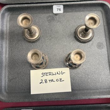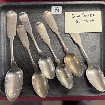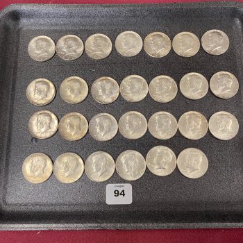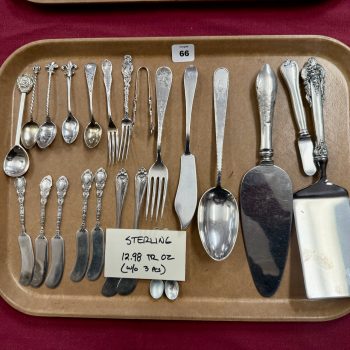 Home / LARGE ESTATE AUCTION - FRI JANUARY 16 AT 6 PM / Page 2 LARGE ESTATE AUCTION - FRI JANUARY 16 AT 6 PM Showing 61–98 of 98 results Default sorting Sort by popularity Sort by latest Sort by price: low to high Sort by price: high to low LOT 060 ASST JEWELRY LOT 061 GOLD FILLED JEWELRY LOT 062 SHAGREEN COMPACT, NECKLACE & BOX LOT 063 STERL FLATWARE, 13.7 OZT LOT 064 FOUR PCS TIFFANY STERL, 7.8 OZT LOT 065 STERL FLATWARE, 15.1 OZT LOT 066 STERL FLATWARE, 13 OZT LOT 067 WEIGHTED STERL C-STICKS, SALT & PEPPER LOT 068 THREE PCS STERLING, 10.1 OZT LOT 069 THREE PCS STERLING LOT 070 FOUR PC STERLING DRESSER SET LOT 071 BOARDMAN STERL & WOOD SALT & PEPPER LOT 072 STERLING FLATWARE, 6.3 OZT LOT 073 COIN SILVER FLATWARE, 8 OZT LOT 074 SIX COIN SPOONS, 6.7 OZT LOT 075 STERLING STRAWS, 2.9 OZT LOT 076 FOUR STERLING C-STICKS, 2.8 OZT LOT 077 SIX STERLING SPOONS, 3.3 OZT LOT 078 MIXED SILVER INCL. 2 LUNT ORNAMENTS LOT 079 LOT STERL C-STICKS, ETC LOT 080 FOOTED CUP, 3.9 OZT LOT 081 1926 D PEACE DOLLAR LOT 082 ASST U.S. COINS INCL. 1 OZ SILVER LOT 083 ASST INDIAN HEAD CENTS LOT 084 ASST LINCOLN CENTS LOT 085 ASST MODERN U.S. COINS LOT 086 ASST U.S. HALF DOLLARS LOT 087 TWO SILVER DOLLARS & 1984 PROOF SET LOT 088 (140) $1 COINS LOT 089 (19) $2 BILLS & MORE LOT 090 4 U.S. MINT SETS LOT 091 WORLD COINS LOT 092 CANADIAN COINS LOT 093 FOUR PEACE DOLLARS 1921, 22, 23, 26S LOT 094 (27) 1964 KENNEDY HALVES LOT 095 (25) 1965-69 KENNEDY HALVES LOT 096 MIXED LOT US COINS ($2.70 SILVER) LOT 097 INDIAN HEAD/ LINCOLN CENTS ← 1 2