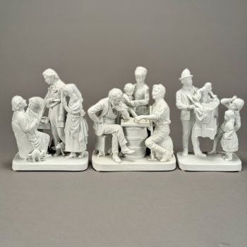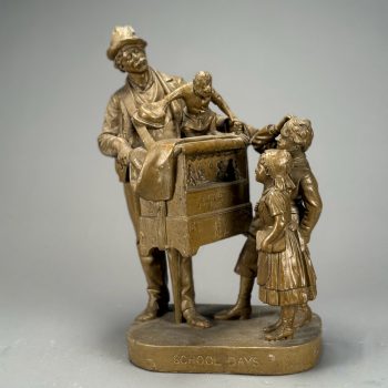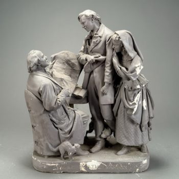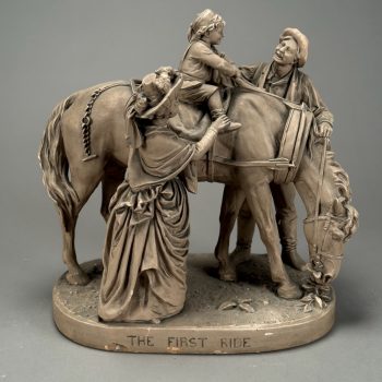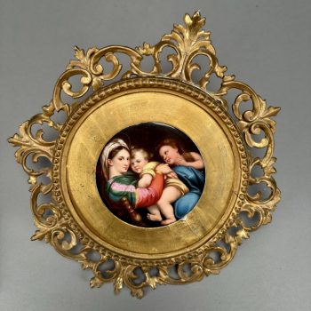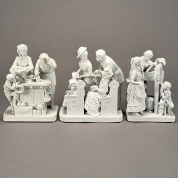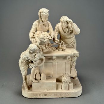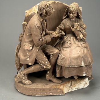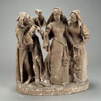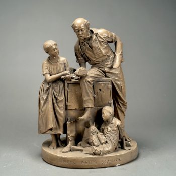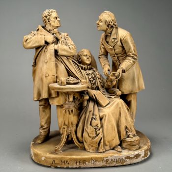 Home / OCTOBER 3 AT 6 PM / Page 4 OCTOBER 3 AT 6 PM Showing 181–240 of 392 results Default sorting Sort by popularity Sort by latest Sort by price: low to high Sort by price: high to low LOT 182 WALTER J. KAMYS, “VIEW OF TOLEDO”, GOUACHE & INK, SIGNED LOWER RIGHT & DATED 1954, FRAMED BEHIND GLASS, 26-1/2 X 39-1/2 SIGHT SIZE. PROV. FROM THE ESTATE OF THE ARTIST LOT 183 DANISH TEAK DRAW LEAF DINING TABLE BY M.M. MOREDDI, TAPERED ROUND LEGS. 29″(H), 68″(L), 114″ OPEN, 39-1/2″(D) LOT 184 GENE MCINERNEY, WHEELBARROW WITH ENAMEL PAILS, OIL ON BOARD, SIGNED LOWER LEFT AND DATED 1990, FRAMED. 28 X 42. THIS ARTIST IS KNOWN FOR HIS HYPERREALISM LOT 185 CONTEMPORARY TAN LEATHER SOFA WITH REMOVABLE CUSHIONS. 33″(H), 72″(W) LOT 186 JOHN D. MAZIARZ, “ANIMAL CONSTRUCTION”, OIL ON CANVAS, SIGNED & DATED 1958 BOTTOM RIGHT, OUTLINE FRAME, 28 X 22. PROV. FROM THE ESTATE OF THE ARTIST LOT 187 JOHN D. MAZIARZ, “BROKEN BOUNDARY”, ACRYLIC & COLLAGE, SIGNED & DATED 1991 BOTTOM RIGHT, OUTLINE FRAME, 30 X 40. PROV. FROM THE ESTATE OF THE ARTIST LOT 188 MID-CENTURY TEAK SIDEBOARD HAVING 2 DOORS WITH SHELF BEHIND AND 2 SLIDING DOORS WITH 6 DRAWERS BEHIND, FRONT WITH DECORATIVE METAL WORK. 29-1/2″(H), 70-3/4″(W), 17-3/4″(D) LOT 189 MID-CENTURY TEAK 2-DOOR SIDEBOARD HAVING A SEPARATE LOW BASE AN CARVED DOORS. 30-1/2″(H), 49-1/4″(W), 20″(D) LOT 190 ANTIQUE HAMPSHIRE POTTERY LAMP (HAIRLINE CRACK FROM RIM DOWN SIDE 3-1/2″) MARKED ON BASE “HAMPSHIRE 006” ACCOMPANIED BY A FINE DECORATED METAL MESH LAMP SHADE. 25″(H) LOT 191 FABULOUS CARVED ROOT SCULPTURE OF A NUDE WOOD NYMPH HAVING TEXTURED SKIN, BRANCH ARMS AND LEGS. 27″(L) LOT 192 TWO PCS OF GOLD DECORATED BLACK GLASS BY RANDY STRONG: (1) 10″(H) CYLINDER VASE. (2) 4″(D) ROUND PAPERWEIGHT DATED 86 & 87 LOT 193 BURL WOOD PLANK COFFEE TABLE ON 3 LEGS. 16″(H), 32″(D), 52″(W) LOT 194 KARLO ZAGO DJUROVICH, “ST. SEBASTIAN”, FINGER-WOVEN TAPESTRY FROM ROPE LIKE JUTE AND HEMP, SIGNED ON REVERSE, FRAMED. 47 X 39 SIGHT SIZE LOT 195 KARLO ZAGO DJUROVICH, UNTITLED, MAN WITH BEARD, FINGER-WOVEN TAPESTRY FROM ROPE LIKE JUTE AND HEMP, UNSIGNED, OUTLINE METAL ROUND FRAME. 48″(D) LOT 196 KARLO ZAGO DJUROVICH, “GOOSE” FINGER-WOVEN TAPESTRY FROM ROPE LIKE JUTE AND HEMP, SIGNED ON REVERSE, FRAMED. 54 X 28-3/4 SIGHT SIZE LOT 197 FRITZIMA?, TWO FIGURES, MIXED MEDIA ON PAPER, SIGNED INDISTINCTLY LOWER LEFT, FRAMED. 33 X 26 LOT 198 SIX SHELF ROLL-AROUND WOOD INDUSTRIAL SHOE RACK. 58″(H), 51″(W), 13″(D) LOT 199 INTERNATIONAL SHADE CO. LEADED STAINED GLASS HANGING LAMP WITH 4 SOCKETS AND CHAIN, SHADE WITH GRAPE MOTIF. 24-1/2″(D) LOT 200 BALLY CAPTAIN FANTASTIC PINBALL MACHINE #6390. 72″(H), 52″(L), 30″(W) LOT 201 HANGING LEADED STAINED GLASS LAMP WITH GRAPE MOTIF AROUND BOTTOM BORDER. LOT 202 VICTORIAN MARBLE TOP SERPENTINE FRONT 4-DRAWER CHEST WITH NICE VENEERS. 38″(H), 44″(W), 21″(D) LOT 203 GREEN SLAG PANEL TABLE LAMP, THE SHADE WITH METAL DRAPERY EDGE. 23-1/2″(H), SHADE 14″(D) LOT 204 PAIR OF INDIA MADE ROUND CARVED SKIRT STANDS. 30″(H), 24″(D) LOT 205 TWO WALL CLOCKS: (1) ROUND TELECHRON ADVERTISING DR. PEPPER, 15″(D). (2) SETH THOMAS OCTAGON TIME & STRIKE WITH KEY, 11″(D) LOT 206 CAST IRON OUTSIDE FIGURE “FAITHFUL GROOMSMAN” BY J.W. FISKE, PROVIDENCE, RI. 45″(H) LOT 207 JOHN ROGERS GROUP STATUE, “THE FIRST RIDE” (WITH HAT), PLASTER. 18″(H) LOT 208 JOHN ROGERS GROUP STATUE, “CHECKERS UP AT THE FARM”, PLASTER. 20″(H) LOT 209 JOHN ROGERS GROUP STATUE, “THE COUNCIL ON WAR” (HANDS FORWARD OF HEAD), PLASTER. 24″(H) LOT 210 JOHN ROGERS GROUP STATUE, “WEIGHING THE BABY”, PLASTER. 21″(H) LOT 211 JOHN ROGERS GROUP STATUE, “PARTING PROMISE” (OLDER MAN), PLASTER. 22″(H) LOT 212 JOHN ROGERS GROUP STATUE, “RETURNED VOLUNTEER, HOW THE FORT WAS TAKEN”, PLASTER. 20″(H) LOT 213 JOHN ROGERS GROUP STATUE, “SCHOOL EXAMINATION”, PLASTER. 20″(H) LOT 214 JOHN ROGERS GROUP STATUE, “UNCLE NED’S SCHOOL”, PLASTER. 20″(H) LOT 215 JOHN ROGERS GROUP STATUE, “POLITICS”, PLASTER. 18″(H) LOT 216 JOHN ROGERS GROUP STATUE, “TAP ON THE WINDOW”, PLASTER. 19-1/2″(H) LOT 217 JOHN ROGERS GROUP STATUE, “WHY DON’T YOU SPEAK FOR YOURSELF, JOHN?”, PLASTER. 22″(H) LOT 218 JOHN ROGERS GROUP STATUE, “SHAUGHRAUN AND TATTERS”, PLASTER. 20″(H) LOT 219 JOHN ROGERS GROUP STATUE, “THE FAVORED SCHOLAR”, PLASTER. 21″(H) LOT 220 JOHN ROGERS GROUP STATUE, “SCHOOL DAYS”, PLASTER. 21-1/2″(H) LOT 221 JOHN ROGERS GROUP STATUE, COMING TO THE PARSON”, PLASTER. 22″(H) LOT 222 JOHN ROGERS GROUP STATUE, “MADAM, YOUR MOTHER CRAVES A WORD WITH YOU”, PLASTER. 20″(H) LOT 223 JOHN ROGERS GROUP STATUE, “RIP VAN WINKLE ON THE MOUNTAIN”, PLASTER. 21-1/4″(H) LOT 224 JOHN ROGERS GROUP STATUE, “MATTER OF OPINION”, PLASTER, 21″(H) LOT 225 JOHN ROGERS GROUP STATUE, “RIP VAN WINKLE AT HOME”, PLASTER. 18-1/2″(H) LOT 226 JOHN ROGERS GROUP STATUE, “IS IT SO NOMINATED IN THE BOND?”, PLASTER. 23″(H) LOT 227 JOHN ROGERS GROUP STATUE, “COURTSHIP IN SLEEPY HOLLOW”, PLASTER. 16-1/2″(H) LOT 228 JOHN ROGERS GROUP STATUE, “A FROLIC AT THE OLD HOMESTEAD”, PLASTER. 22-1/2″(H) LOT 229 JOHN ROGERS GROUP STATUE, “TOWN PUMP”, (CANTEEN AT SIDE), PLASTER. 13″(H) LOT 230 JOHN ROGERS GROUP STATUE, “PARTING PROMISE” (OLDER MAN), PLASTER. 22″(H) LOT 231 JOHN ROGERS GROUP STATUE, “COUNTRY POSTOFFICE, NEWS FROM THE ARMY” (SHORT SLEEVE), PLASTER. 20″(H) LOT 232 THREE REED & BARTON PORCELAIN MINIATURE JOHN ROGERS’ STATUES, “WEIGHING THE BABY”, “THE FAVORED SCHOLAR”, AND “NEIGHBORING PEWS”. TALLEST 8-1/2″ LOT 233 THREE REED & BARTON PORCELAIN MINIATURE JOHN ROGERS’ STATUES, “COMING TO THE PARSONS”, “SCHOOL DAYS”, AND “CHECKERS UP AT THE FARM”. TALLEST 8-1/4″ LOT 234 THREE DRAWER OVER ONE DRAWER CHIPPENDALE CHEST ON OGEE FEET (ALTERED). 30-1/2″(H), 42-1/2″(W), 23″(D) LOT 235 FOUR FRAMED NEEDLEWORKS WITH SCRIP