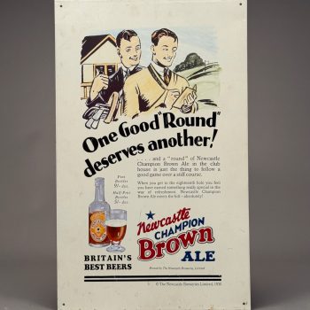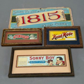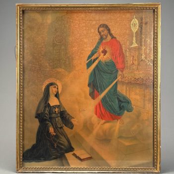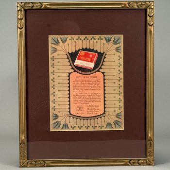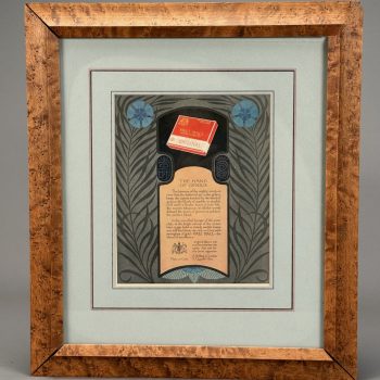 Home / OCTOBER 3 AT 6 PM / Page 5 OCTOBER 3 AT 6 PM Showing 241–300 of 392 results Default sorting Sort by popularity Sort by latest Sort by price: low to high Sort by price: high to low LOT 242 FRAMED PRINT OF “THE APPARITION OF THE SACRED HEART OF JESUS TO SAINT MARGARET MARY ALACOQUE”. 25-1/2 X 21-1/2 SIGHT SIZE LOT 243 H.L.B., GRAND ESTATE, SANDPAPER BLACK & WHITE DRAWING, SIGNED WITH INITIALS LOWER LEFT, FRAMED. 15 X 21 SIGHT SIZE LOT 244 FRAMED UNSIGNED SANDPAPER BLACK & WHITE DRAWING OF A LANDSCAPE SCENE WITH TALL MOUNTAINS, BUILDINGS, FARM AND COWS. 13-1/4 X 19-1/4 SIGHT SIZE LOT 245 BLACK & WHITE ANTIQUE SANDPAPER DRAWING DEPICTING A LARGE FORT WITH STEAMBOAT, SAILBOAT AND MEN IN ROWBOAT, FRAMED. 9-1/2 X 13-1/2 SIGHT SIZE LOT 246 FRAMED UNSIGNED SANDPAPER BLACK & WHITE DRAWING OF A CASTLE NEXT TO WATER AND HILLS. 12-1/2 X 17-1/4 SIGHT SIZE LOT 247 UNSIGNED, CASTLE ON RIVER LANDSCAPE, SANDPAPER BLACK & WHITE DRAWING, FRAMED. 14-1/2 X 20-1/2 SIGHT SIZE LOT 248 KEN GORE, SUNLIT BIRCH, OIL ON MASONITE, SIGNED LOWER RIGHT, FRAMED. 8 X 10 LOT 249 ANTIQUE MAHOGANY 3-PART SECRETARY, TOP SECTION WITH 2 GLASS DOORS, MIDDLE WITH 2 DOORS AND BASE HAVING 3 DRAWERS WITH COLUMNS AND BRASS RING PULLS. 87-1/2″(H), 42″(W), 21″(D) LOT 250 ORIENTAL RUG WITH LARGE IVORY CENTER MEDALLION AND ALL OVER PATTERN. 5.3 X 14 LOT 251 ORIENTAL RUG WITH LARGE CENTER MEDALLION ON A BURGUNDY FIELD. 5.4 X 11.6 LOT 252 FRAMED POSTER, “THE ECHO”, WILL H. BRADLEY ARTIST, 20 X 13 SIGHT SIZE LOT 253 FRAMED ART NOUVEAU POSTER FOR “THE CHAP BOOK (THE PIPES)” BY WILLIAM HENRY BRADLEY, LITHOGRAPH, 1895. 21 X 14-1/4 SIGHT SIZE LOT 254 FRAMED POSTER “PORTO RAMOS PINTO” BY RENE VINCENT, PRINTED BY VERCASSON OF PARIS, LITHOGRAPH 1925 ORIGINAL. 20 X 14 SIGHT SIZE LOT 255 TWO FRAMED ADVERTISEMENTS FOR WILLYS-KNIGHT AUTOMOBILES. 12 X 8-1/4 & 8-1/2 X 6 SIGHT SIZES LOT 256 PAIR OF FRAMED ADVERTISEMENTS FOR WILLYS-KNIGHT AUTOMOBILE BY WILLYS-OVERLAND, INC. 12 X 19-1/2 SIGHT SIZE LOT 257 ADVERTISING STAND-UP STORE DISPLAY FOR HORLICK’S MALTED MILK, DIE CUT OF WOMAN WITH COW. 16 X 11-3/4 LOT 258 UNFRAMED CRACKER BARREL LABEL FOR “MONTPELIER CRACKERS”, C.H. CROSS & SON, MONTPELIER, VT. 16-1/4″(D) LOT 259 TIN ADVERTISING SIGN FOR VALENTINE’S VALSPAR BRONZE VARNISH, “IT’S THE COAT THAT MAKES THE BOAT”. 13″(H), 19″(W) LOT 260 FRAMED POSTER “KOOL MILD MENTHOL CIGARETTES” DEPICTING A PENGUIN ON SKATES (WILLIE THE PENGUIN). 17-1/2 X 11-3/4 SIGHT SIZE LOT 261 FRAMED ART NOUVEAU ADVERTISEMENT FOR PALL MALL CIGARETTES. 10 X 8 SIGHT SIZE LOT 262 FRAMED ANTIQUE CIGAR LABEL DEPICTING A WOMAN ON SOFA. 4-3/4 X 7-1/2 SIGHT SIZE LOT 263 FRAMED ADVERTISEMENT FOR PALL MALL CIGARETTES WITH ART NOUVEAU DESIGN. 10 X 7-1/2 SIGHT SIZE LOT 264 TWO “LUCKY STRIKE” ADVERTISING CUT-OUT FIGURES, WHEN FOLDED YOU USE CIGARETTES AS LEGS AND THEY HOLD A MATCH, FRAMED. 5-1/2 X 2 LOT 265 TWO ADVERTISING PCS FOR MANIATTY FAMILY SHOPS: (1) FRAMED “MANIATTY’S CANDY SHOP…”, 10 X 13 SIGHT SIZE. (2) THE CORNER CUPBOARD – 2-SIDED (MISSING END). 12 X 30 AND FRAMED AERIAL PHOTOGRAPH OF BRICKERS RESTAURANT IN GREENFIELD, MA. 15-1/2 X 19-1/2 SIGHT SIZE; ALSO FRAMED BROCHURE FOR THE MANSION HOUSE, GREENFIELD, MASS, INSIDE FRAME 25-1/2 X 19-1/2 LOT 266 TIN ADVERTISING SIGN “DRINK ME” FOR MAGIC HAT BREWING COMPANY, SOUTH BURLINGTON, VERMONT. 20 X 15 LOT 267 FRAMED MIRROR SIGN “GRANTS’/BEST PROCURABLE/STAND FAST/SCOTCH WHISKIES/AGENTS-ROBERT GUY LTD/MARITZBURG. OVERALL SIZE 37 X 27 LOT 268 FRAMED POSTER FOR RHEINGOLD AND GOOD OLD SCOTCH ALE BY THE LIEBMANN BREWERIES, INC. 36 X 23 SIGHT SIZE LOT 269 FRAMED MIRROR SIGN “DEWAR’S/SCOTCH WHISKY/PERTH-SCOTLAND”. OVERALL SIZE 27 X 37 LOT 270 FRAMED ORIGINAL CIGAR BOX LABEL, “EVEN STEVEN”. 7 X 8 SIGHT SIZE LOT 271 FRAMED CIGAR BOX LABEL FOR “FIRST BANNER” CIGARS, WASHINGTON MOTIF. 4-1/4 X 4-1/4 SIGHT SIZE LOT 272 TIN SIGN FOR NEWCASTLE CHAMPION BROWN ALE, “BRITAIN’S BEST BEERS”, 24 X 15 LOT 273 FRAMED POSTER FOR “COLD BRAU” OF THE GLOBE BREWING CO. BALTIMORE, MD. 25-1/2 X 18-1/2 SIGHT SIZE LOT 274 FRAMED ANTIQUE POSTER FOR “MRS LANGTRY” AT THE BOSTON THEATRE NOV 8, POSTER MADE BY H.A. THOMAS & STERLING ART LITHOGRAPHERS, LILLIE LANGTRY WAS AN ENGLISH ACTRESS THAT TOURED IN THE U.S. IN 1894, FRAMED. 28 X 18 SIGHT SIZE LOT 275 FOUR CIGAR RELATED ITEMS: (1) 7″ X 13-3/4″ CARDBOARD ADVERTISING PLAQUE FOR SILAS PEIRCE & CO’S. 1815 10 CENT CIGAR, (2-4) FRAMED CIGAR ADS FOR “SONNY BOY”, “OUR KITTIES”, AND “HAND MADE” LOT 276 BUDWEISER CLYDESDALE WAGON LIGHT, RAY’S CAFE, GREENFIELD, MASS. 5′ 10″(L), 21-1/2″(W), 9-1/2″(D) LOT 277 COMMONWEALTH BREWING CORP. ADVERTISING GOLD MEDAL TIVOLI BEER TIP TRAY, SPRINGFIELD, MASS. 4-1/4″(D) LOT 278 “DRINK MOXIE”, 2 SIDED SIGN FOR SIDE MOUNTING. 9 X 18 LOT 279 REVERSE PAINTING ON GLASS ADVERTISING SIGN FOR “F.W. WOOLWORTH CO.”, FRAMED LOT 280 SMALL ORIENTAL MAT WITH CONNECTED 3 MEDALLION CENTER. 2 X 3.2 LOT 281 ORIENTAL RUG WITH CENTER IVORY FIELD OF 4 BIRDS. 2.8 X 5.4 LOT 282 TWO PART EMPIRE SECRETARY IN RED WASH. 76-1/2″(H), 40″(W), 19″(D) LOT 283 THREE PCS OF FLOWER DECORATED MILK GLASS WITH ORMOLU HANDLES, RIM AND BASES, PAIR OF 16-1/2″ VASES AND 12″(H) ROUND VASE LOT 284 TWO ANTIQUE BRASS FIGURINES: (1) 6-1/2″(H) X 7″(L) FAR EASTERN HORSE. (2) 11-1/2″(H) X 17″(L) PEACOCK LOT 285 FRAMED UNMOUNTED ALBUMEN PRINTS, ALL BY FELIX BONFILS. MOTHER AND CHILD, 8-1/2 X 10-1/2 SIGHT SIZE; “CART TRANSPORTING ARAB WOMEN”, 8 X 11 SIGHT SIZE; TWO JAFFA, ONE FROM THE SEA, THE OTHER A MARKET, 8 X 11 SIGHT SIZE LOT 286 FOUR DECORATIVE TILES: (1) 7 X 5 KING ON HORSE HOLDING BIRD. (2) 11-1/2 X 8 OVAL FACE WITH FISH. (3) 9-1/2 X 9-1/2 KING WITH LION. (4) 9-1/2 X 9-1/2 FLOWER LOT 287 TWO PCS OF EXCAVATED TERRACOTTA ETRUSCAN POTTERY FROM 900 B.C., ONE TAGGED WITH PROVENANCE, BOTH AS FOUND. (1) PEDESTAL DISH, 3″(H), 5″(D). (2) BOWL, 3″(H), 10″(D) LOT 288 DISPLAY CASE WIT