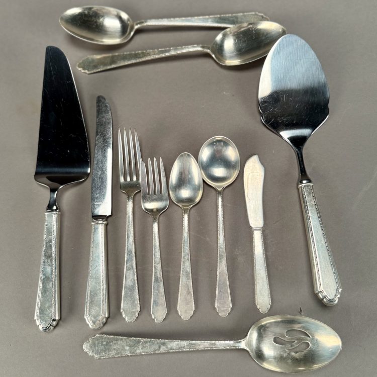 Home / OCTOBER 3 AT 6 PM / LOT 003 EIGHTY-ONE PC STERLING SILVER FLATWARE SET BY LUNT IN THE “WILLIAM & MARY” PATTERN, IN SILVER CHEST. 74 OZT (EXCLUDING 16 HOLLOW HANDLED PCS) LOT 003 EIGHTY-ONE PC STERLING SILVER FLATWARE SET BY LUNT IN THE “WILLIAM & MARY” PATTERN, IN SILVER CHEST. 74 OZT (EXCLUDING 16 HOLLOW HANDLED PCS) Place a Bid Categories: ANTIQUE AUCTION - FRI OCTOBER 3 AT 6 PM, OCTOBER 3 AT 6 PM Tag: auction Related products LOT 023 STEPHEN G. MANIATTY, ‘SAWMILL’, OIL ON CANVAS, SIGNED LOWER RIGHT, FRAMED WITH AN AWARD PLAQUE “GRUMBACHER ARTISTS MATERIAL AWARD/GRAND NATIONAL EXHIBITION/NEW YORK CITY – 1965”. 20 X 30 LOT 018 COIN SILVER HANDLED CUP, PROBABLY FREEMAN & WALLIN, PHILADELPHIA, CIRCA 1850. 4″(H), 3.6 OZT. LOT 016 6 PCS OF STERLING SILVER: (1) 6″(D) PLATE BY TOWLE. (2) 3-1/2 FOOTED CREAMER BY POOLE. (3) 4″(D) FOOTED BOWL BY SHREVE, CRUMP & LOW CO (4) 7″(L) FOOTED GRAVY BY J.E. CALDWELL & CO (5) 4″ CREAMER BY DOMINICK & HAFF (6) 6-3/4″(W) DISH BY TOWLE. 25.2 OZT LOT 008 11 STERLING SILVER PLATES BY GORHAM. 6″(D), 27.8 OZT