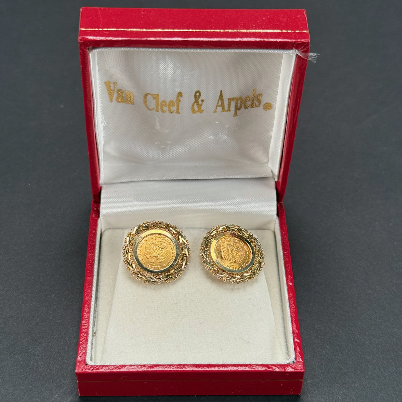 Home / ANTIQUE AUCTION - FRI NOVEMBER 7 AT 6 PM / LOT 009 VAN CLEEF & ARPELS 14K YG PAIR OF EARRINGS HAVING 1945 2 PESO MEXICAN GOLD COIN IN EACH EARRING. 5.7 DWT (9 G) LOT 009 VAN CLEEF & ARPELS 14K YG PAIR OF EARRINGS HAVING 1945 2 PESO MEXICAN GOLD COIN IN EACH EARRING. 5.7 DWT (9 G) Place a Bid Category: ANTIQUE AUCTION - FRI NOVEMBER 7 AT 6 PM Tag: auction Related products LOT 008 11 STERLING SILVER PLATES BY GORHAM. 6″(D), 27.8 OZT LOT 013 3 PCS OF STERLING SILVER: (1) OVAL DEEP SERVING DISH BY E. CALDWELL & CO, 10 X 6-1/2. (2) PORRINGER BY DOMINICK & HAFF, 7″. (3) PORRINGER BY RWM, 6″. 21.8 OZT LOT 006 FINE PAIR OF FANCY STERLING SILVER CANDLESTICKS, SHEFFIELD, 1903-4 WITH MAKER’S MARK ‘HE LD’, 12″(H) LOT 018 COIN SILVER HANDLED CUP, PROBABLY FREEMAN & WALLIN, PHILADELPHIA, CIRCA 1850. 4″(H), 3.6 OZT.