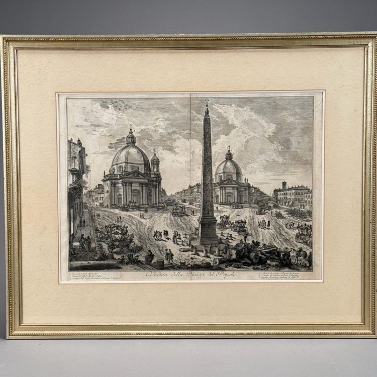 Home / ANTIQUE AUCTION - FRI OCTOBER 3 AT 6 PM / LOT 013 GIOVANNI BATTISTA PIRANESI, “VEDUTA DELLA PIAZZA DEL POPOLO”, ETCHING, 18TH C., FRAMED. 16 X 22-1/2 SIGHT SIZE LOT 013 GIOVANNI BATTISTA PIRANESI, “VEDUTA DELLA PIAZZA DEL POPOLO”, ETCHING, 18TH C., FRAMED. 16 X 22-1/2 SIGHT SIZE Place a Bid Categories: ANTIQUE AUCTION - FRI OCTOBER 3 AT 6 PM, OCTOBER 3 AT 6 PM Tag: auction Related products LOT 001 PAIR OF STERLING SILVER COLUMN CANDLESTICKS BY GORHAM MARKED A3207 EACH HAVING REMOVABLE BOBECHES. 10-1/4″(H) LOT 019 COIN SILVER MUG BY C. BARD & SON, PHILADELPHIA, PA, CIRCA 1850 INSCRIBED ‘ANNA CRAIG FULTON’, THE BODY HAVING REPOUSSE FLOWERS. 3-1/2″(H), 3.3 OZT LOT 009 48 PC STERLING SILVER FLATWARE SET IN THE “KING GEORGE” PATTERN BY GORHAM, 57 OZT (WITHOUT 16 KNIVES) MONOGRAMMED LOT 013 3 PCS OF STERLING SILVER: (1) OVAL DEEP SERVING DISH BY E. CALDWELL & CO, 10 X 6-1/2. (2) PORRINGER BY DOMINICK & HAFF, 7″. (3) PORRINGER BY RWM, 6″. 21.8 OZT