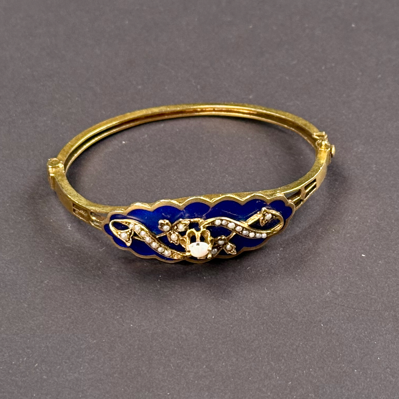 Home / ANTIQUE ESTATE AUCTION - FRI FEBRUARY 20 AT 6 PM / LOT 014 14K YG BRACELET WITH OPAL AND SEED PEARLS AGAINST BLUE ENAMEL. 12.3 DWT (19.2 G) LOT 014 14K YG BRACELET WITH OPAL AND SEED PEARLS AGAINST BLUE ENAMEL. 12.3 DWT (19.2 G) Place a Bid Category: ANTIQUE ESTATE AUCTION - FRI FEBRUARY 20 AT 6 PM Tag: auction Related products LOT 012 2 SMALL STERLING SILVER TRAYS. (1) 6″ SQUARE BY DOMINICK & HAFF (2) 7-1/2 X 5-1/2 OVAL FOOTED TRAY BY J.E. CALDWELL & CO, BOTH MONOGRAMMED. 11.7 OZT LOT 013 3 PCS OF STERLING SILVER: (1) OVAL DEEP SERVING DISH BY E. CALDWELL & CO, 10 X 6-1/2. (2) PORRINGER BY DOMINICK & HAFF, 7″. (3) PORRINGER BY RWM, 6″. 21.8 OZT LOT 017 CONTINENTAL SILVER (.800) DRESSER BOX MARKED ON BASE ‘BEUTHNER’. 3-1/4″(H), 5-1/2″(W) X 4″(D), 8 OZT LOT 009 48 PC STERLING SILVER FLATWARE SET IN THE “KING GEORGE” PATTERN BY GORHAM, 57 OZT (WITHOUT 16 KNIVES) MONOGRAMMED