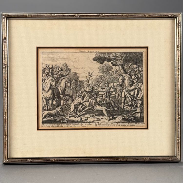 Home / ANTIQUE AUCTION - FRI OCTOBER 3 AT 6 PM / LOT 016 WENCESLAUS HOLLAR, “STAGG HUNTING”, ETCHING, FRAMED, 6-3/4 X 9 SIGHT SIZE LOT 016 WENCESLAUS HOLLAR, “STAGG HUNTING”, ETCHING, FRAMED, 6-3/4 X 9 SIGHT SIZE Place a Bid Categories: ANTIQUE AUCTION - FRI OCTOBER 3 AT 6 PM, OCTOBER 3 AT 6 PM Tag: auction Related products LOT 019 COIN SILVER MUG BY C. BARD & SON, PHILADELPHIA, PA, CIRCA 1850 INSCRIBED ‘ANNA CRAIG FULTON’, THE BODY HAVING REPOUSSE FLOWERS. 3-1/2″(H), 3.3 OZT LOT 007 FIXED HANDLED STERLING SILVER LOW BASKET MARKED BIGELOW, KENNARD & CO. 5-1/2″(H), 10-1/2″(D), 9.8 OZT LOT 014 PAIR OF STERLING SILVER 2 HANDLED PLATES BY WEBSTER MARKED ‘6613’, NO MONOGRAM, 10-1/2 AT WIDEST, 21.3 OZT LOT 020 STERLING SILVER HINGED SQUARE BOX, LONDON, 1806, MAKERS MARK RH?, THE LID WITH A REPOUSSE SCENE OF 2 MEN PLAYING A BOARD GAME. 1-1/4″(H), 4″(W), 4″(D)