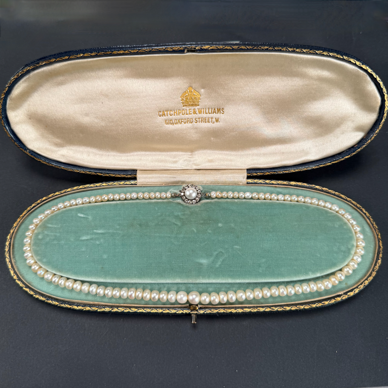 Home / ANTIQUE AUCTION - FRI NOVEMBER 7 AT 6 PM / LOT 016A FINE GRADUATED PEARL NECKLACE IN ORIGINAL CATCHPOLE & WILLIAMS BOX. 15″(L) LOT 016A FINE GRADUATED PEARL NECKLACE IN ORIGINAL CATCHPOLE & WILLIAMS BOX. 15″(L) Place a Bid Category: ANTIQUE AUCTION - FRI NOVEMBER 7 AT 6 PM Tag: auction Related products LOT 001 PAIR OF STERLING SILVER COLUMN CANDLESTICKS BY GORHAM MARKED A3207 EACH HAVING REMOVABLE BOBECHES. 10-1/4″(H) LOT 018 COIN SILVER HANDLED CUP, PROBABLY FREEMAN & WALLIN, PHILADELPHIA, CIRCA 1850. 4″(H), 3.6 OZT. LOT 007 FIXED HANDLED STERLING SILVER LOW BASKET MARKED BIGELOW, KENNARD & CO. 5-1/2″(H), 10-1/2″(D), 9.8 OZT LOT 010 2 STERLING SILVER SHAKERS, ONE 6″(H) WITH BLURRED ENGLISH HALLMARKS, THE OTHER 6-1/2″(H) MARKED STERLING. 9 OZT