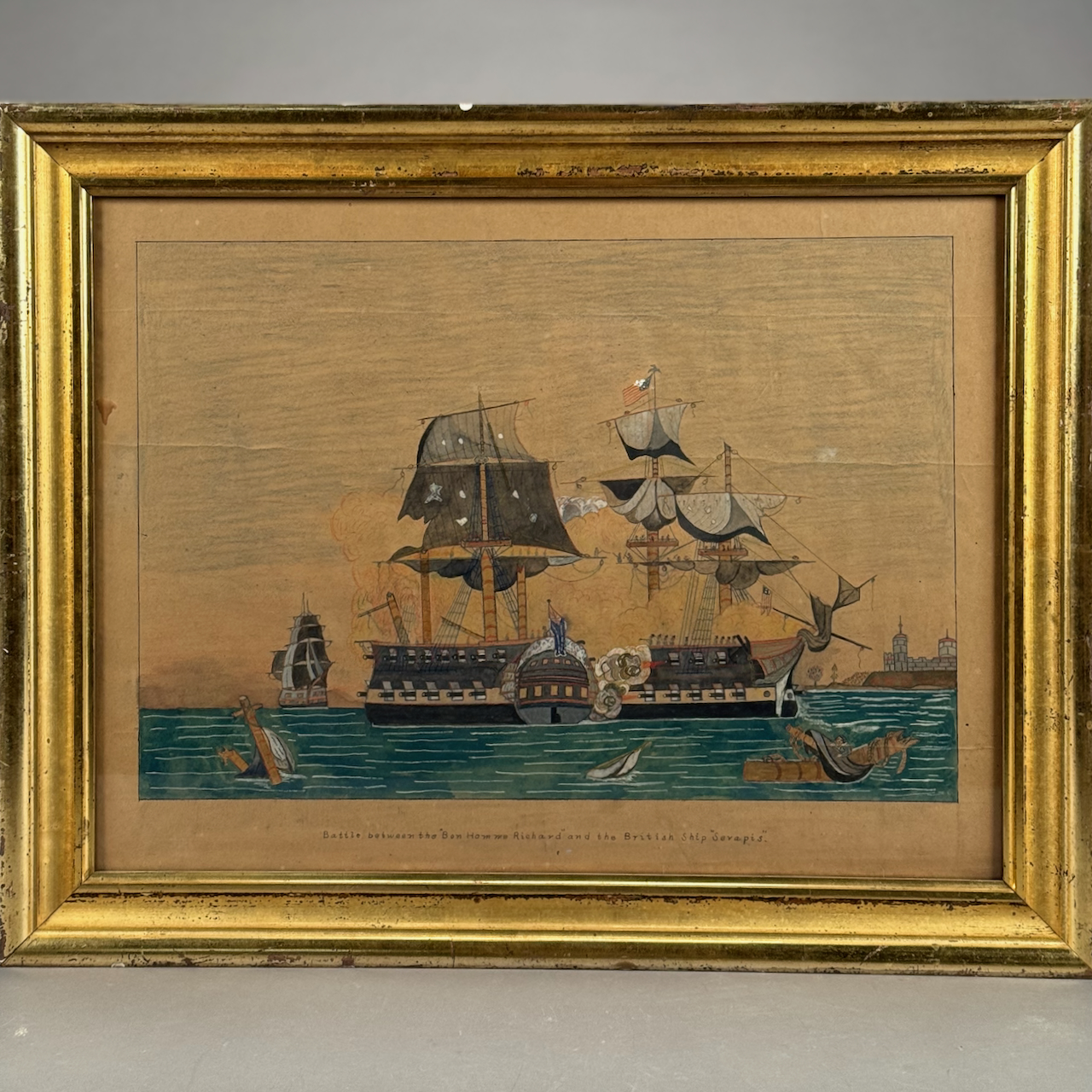 Home / ANTIQUE ESTATE AUCTION - FRI DECEMBER 12 AT 6 PM / LOT 017 UNSIGNED FRONT, “BATTLE BETWEEN THE “BON HOMME RICHARD” AND THE BRITISH SHIP SERAPIS” ON REVERSE IS “PAINTED BY C.E. DAILEY, 1890”, WATERCOLOR & COLORED PENCIL, LEMON GOLD FRAME. 15 X 20 SIGHT SIZE LOT 017 UNSIGNED FRONT, “BATTLE BETWEEN THE “BON HOMME RICHARD” AND THE BRITISH SHIP SERAPIS” ON REVERSE IS “PAINTED BY C.E. DAILEY, 1890”, WATERCOLOR & COLORED PENCIL, LEMON GOLD FRAME. 15 X 20 SIGHT SIZE Place a Bid Category: ANTIQUE ESTATE AUCTION - FRI DECEMBER 12 AT 6 PM Tag: auction Related products LOT 023 STEPHEN G. MANIATTY, ‘SAWMILL’, OIL ON CANVAS, SIGNED LOWER RIGHT, FRAMED WITH AN AWARD PLAQUE “GRUMBACHER ARTISTS MATERIAL AWARD/GRAND NATIONAL EXHIBITION/NEW YORK CITY – 1965”. 20 X 30 LOT 016 6 PCS OF STERLING SILVER: (1) 6″(D) PLATE BY TOWLE. (2) 3-1/2 FOOTED CREAMER BY POOLE. (3) 4″(D) FOOTED BOWL BY SHREVE, CRUMP & LOW CO (4) 7″(L) FOOTED GRAVY BY J.E. CALDWELL & CO (5) 4″ CREAMER BY DOMINICK & HAFF (6) 6-3/4″(W) DISH BY TOWLE. 25.2 OZT LOT 002 3 PC STERLING SILVER TEA SET BY GORHAM CONSISTING OF 10″ TEAPOT (2441), 6-1/2″ CREAMER (2444), 6″ COVERED SUGAR (2443), 45 OZT LOT 018 COIN SILVER HANDLED CUP, PROBABLY FREEMAN & WALLIN, PHILADELPHIA, CIRCA 1850. 4″(H), 3.6 OZT.