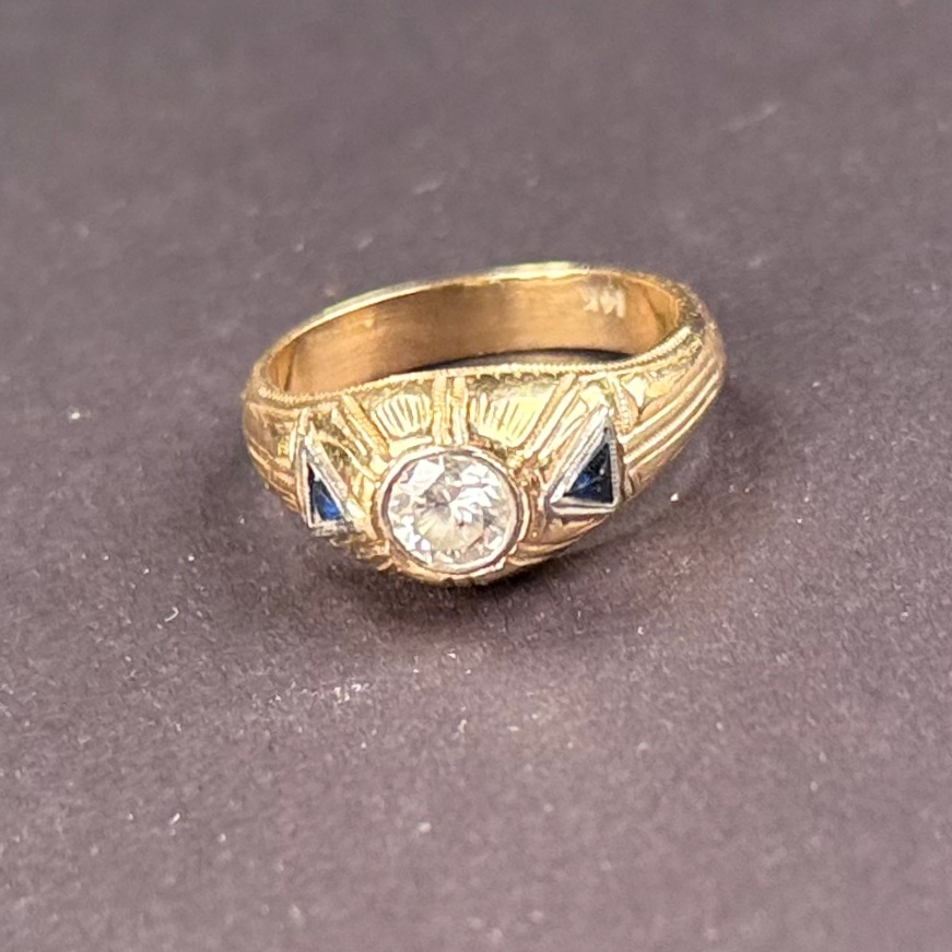 Home / ANTIQUE ESTATE AUCTION - FRI FEBRUARY 20 AT 6 PM / LOT 019 14K YG RING WITH CENTER DIAMOND FLANKED BY TRIANGLE SHAPED SAPPHIRES, SIZE 9, 5.5 DWT, (8.59 G) LOT 019 14K YG RING WITH CENTER DIAMOND FLANKED BY TRIANGLE SHAPED SAPPHIRES, SIZE 9, 5.5 DWT, (8.59 G) Place a Bid Category: ANTIQUE ESTATE AUCTION - FRI FEBRUARY 20 AT 6 PM Tag: auction Related products LOT 015 42 PC STERLING FLATWARE SET BY LUNT IN THE ‘WILLIAM & MARY’ PATTERN, NO MONOGRAM. 34.5 OZT (W/O 12 KNIVES) LOT 007 FIXED HANDLED STERLING SILVER LOW BASKET MARKED BIGELOW, KENNARD & CO. 5-1/2″(H), 10-1/2″(D), 9.8 OZT LOT 016 6 PCS OF STERLING SILVER: (1) 6″(D) PLATE BY TOWLE. (2) 3-1/2 FOOTED CREAMER BY POOLE. (3) 4″(D) FOOTED BOWL BY SHREVE, CRUMP & LOW CO (4) 7″(L) FOOTED GRAVY BY J.E. CALDWELL & CO (5) 4″ CREAMER BY DOMINICK & HAFF (6) 6-3/4″(W) DISH BY TOWLE. 25.2 OZT LOT 012 2 SMALL STERLING SILVER TRAYS. (1) 6″ SQUARE BY DOMINICK & HAFF (2) 7-1/2 X 5-1/2 OVAL FOOTED TRAY BY J.E. CALDWELL & CO, BOTH MONOGRAMMED. 11.7 OZT