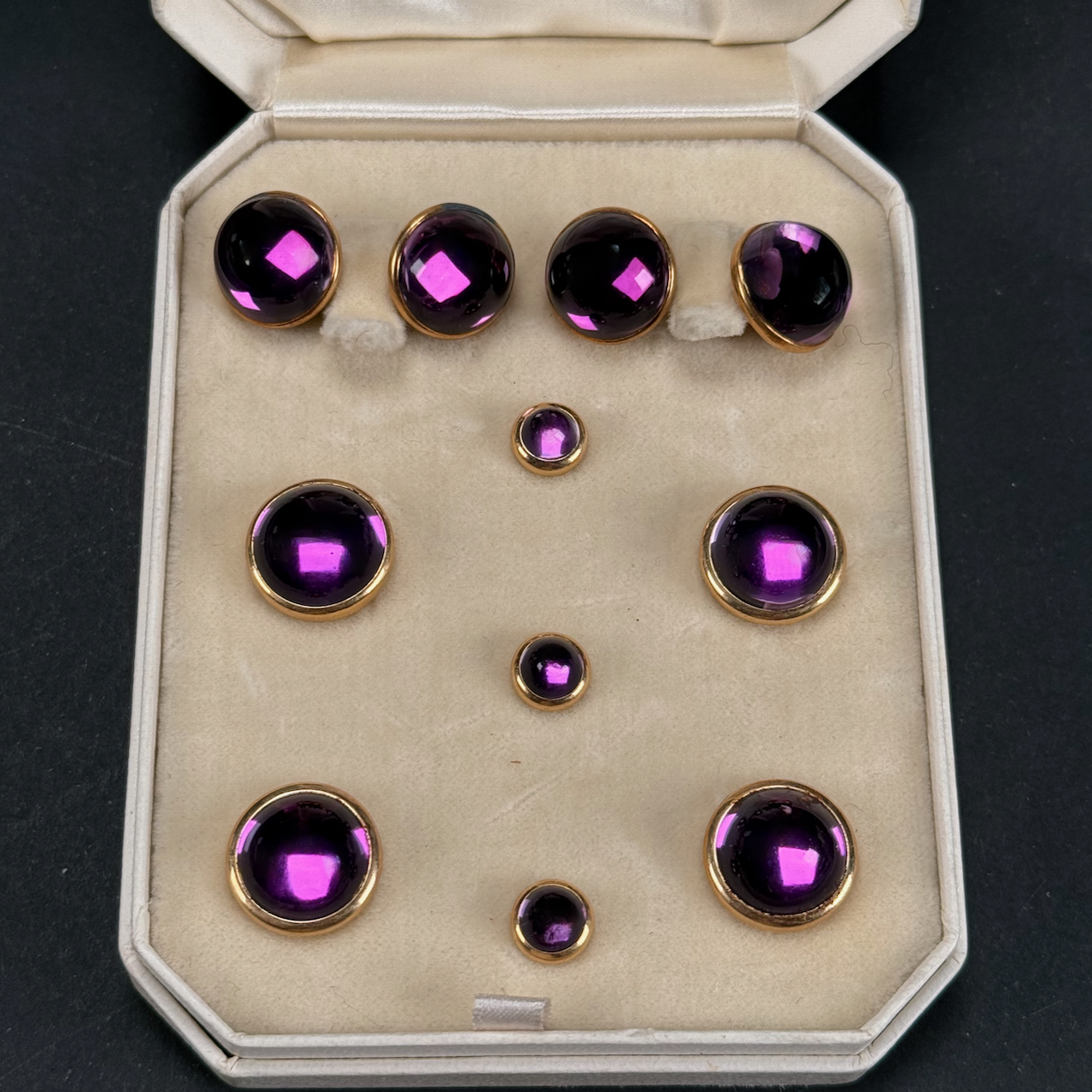 Home / ANTIQUE AUCTION - FRI NOVEMBER 7 AT 6 PM / LOT 019A 14K YG AND AMETHYST CUFFLINK AND STUD SET LOT 019A 14K YG AND AMETHYST CUFFLINK AND STUD SET Place a Bid Category: ANTIQUE AUCTION - FRI NOVEMBER 7 AT 6 PM Tag: auction Related products LOT 009 48 PC STERLING SILVER FLATWARE SET IN THE “KING GEORGE” PATTERN BY GORHAM, 57 OZT (WITHOUT 16 KNIVES) MONOGRAMMED LOT 003 PAIR OF STERLING SILVER PORRINGERS BY GEBELEIN, BOSTON. 7″(L), 4-3/4 BOWL, 12 OZT LOT 001 PAIR OF STERLING SILVER COLUMN CANDLESTICKS BY GORHAM MARKED A3207 EACH HAVING REMOVABLE BOBECHES. 10-1/4″(H) LOT 014 PAIR OF STERLING SILVER 2 HANDLED PLATES BY WEBSTER MARKED ‘6613’, NO MONOGRAM, 10-1/2 AT WIDEST, 21.3 OZT
