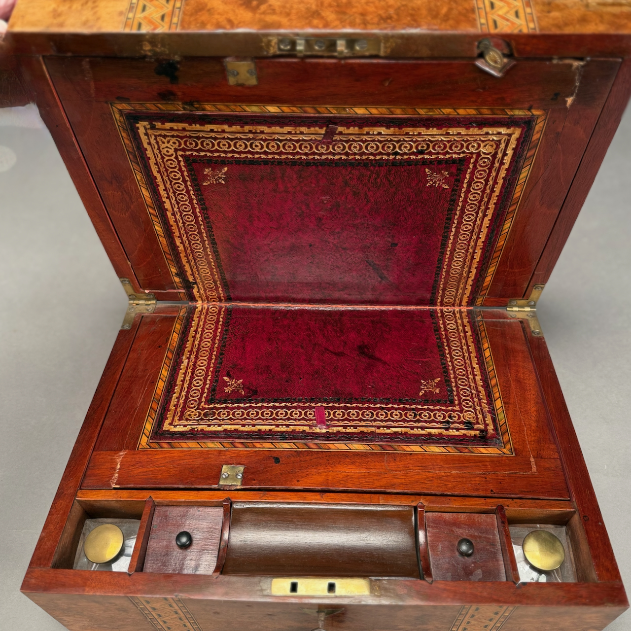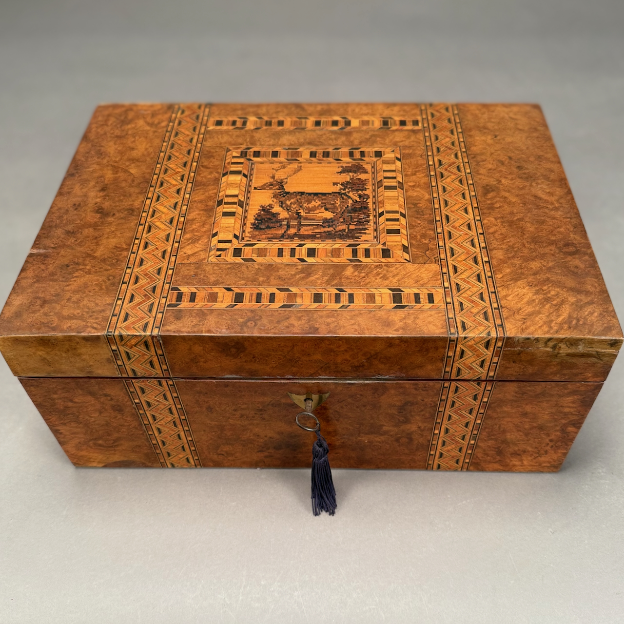 Home / ANTIQUE ESTATE AUCTION - FRI DECEMBER 12 AT 6 PM / LOT 024 FINE ANTIQUE MARQUETRY DECORATED BURL WOOD LAP DESK WITH INLAID DEER ON LID, TOOLED LEATHER WRITING SURFACE FITTED WITH 2 INKWELLS, KEY PRESENT. 6-1/4″(H), 15 X 10-3/4 LOT 024 FINE ANTIQUE MARQUETRY DECORATED BURL WOOD LAP DESK WITH INLAID DEER ON LID, TOOLED LEATHER WRITING SURFACE FITTED WITH 2 INKWELLS, KEY PRESENT. 6-1/4″(H), 15 X 10-3/4 Place a Bid Category: ANTIQUE ESTATE AUCTION - FRI DECEMBER 12 AT 6 PM Tag: auction Related products LOT 005 PAIR OF STERLING SILVER CANDELABRAS BY ARROWSMITH, WEIGHTED IN 2 PARTS. 14-1/2″(H) (1 REPAIRED) LOT 022 STEPHEN G. MANIATTY, ‘BUCKET OF POSIES’, OIL ON CANVAS, SIGNED LOWER RIGHT, FRAMED. 38 X 36 LOT 017 CONTINENTAL SILVER (.800) DRESSER BOX MARKED ON BASE ‘BEUTHNER’. 3-1/4″(H), 5-1/2″(W) X 4″(D), 8 OZT LOT 006 FINE PAIR OF FANCY STERLING SILVER CANDLESTICKS, SHEFFIELD, 1903-4 WITH MAKER’S MARK ‘HE LD’, 12″(H)