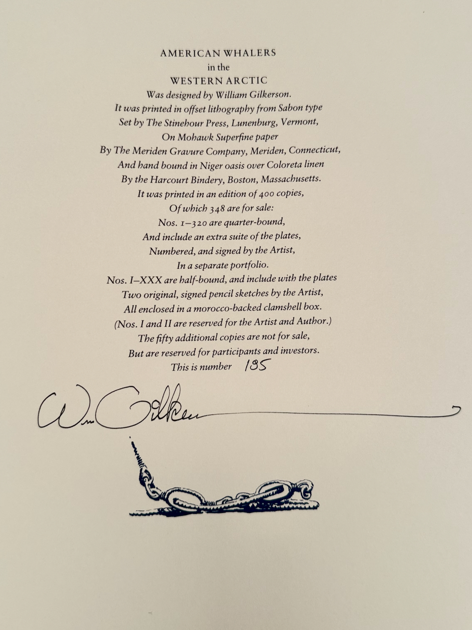 Home / ANTIQUE ESTATE AUCTION - FRI DECEMBER 12 AT 6 PM / LOT 025 BOOK: AMERICAN WHALERS IN THE WESTERN ARCTIC – THE FINAL EPOCH OF THE GREAT AMERICAN SAILING WHALING FLEET. WILLIAM GILKERSON AND JOHN R. BOCKSTOCE 1983 THE BOOK ALONG WITH A PORTFOLIO OF PENCIL SIGNED COLOR LITHOGRAPH PLATES #185 SIGNED LOT 025 BOOK: AMERICAN WHALERS IN THE WESTERN ARCTIC – THE FINAL EPOCH OF THE GREAT AMERICAN SAILING WHALING FLEET. WILLIAM GILKERSON AND JOHN R. BOCKSTOCE 1983 THE BOOK ALONG WITH A PORTFOLIO OF PENCIL SIGNED COLOR LITHOGRAPH PLATES #185 SIGNED Place a Bid Category: ANTIQUE ESTATE AUCTION - FRI DECEMBER 12 AT 6 PM Tag: auction Related products LOT 004 133 PC STERLING SILVER FLATWARE SET IN THE “KING PATTERN. 190 OZT (EXCLUDING 12 KNIVES), MONOGRAMMED LOT 009 48 PC STERLING SILVER FLATWARE SET IN THE “KING GEORGE” PATTERN BY GORHAM, 57 OZT (WITHOUT 16 KNIVES) MONOGRAMMED LOT 008 11 STERLING SILVER PLATES BY GORHAM. 6″(D), 27.8 OZT LOT 017 CONTINENTAL SILVER (.800) DRESSER BOX MARKED ON BASE ‘BEUTHNER’. 3-1/4″(H), 5-1/2″(W) X 4″(D), 8 OZT