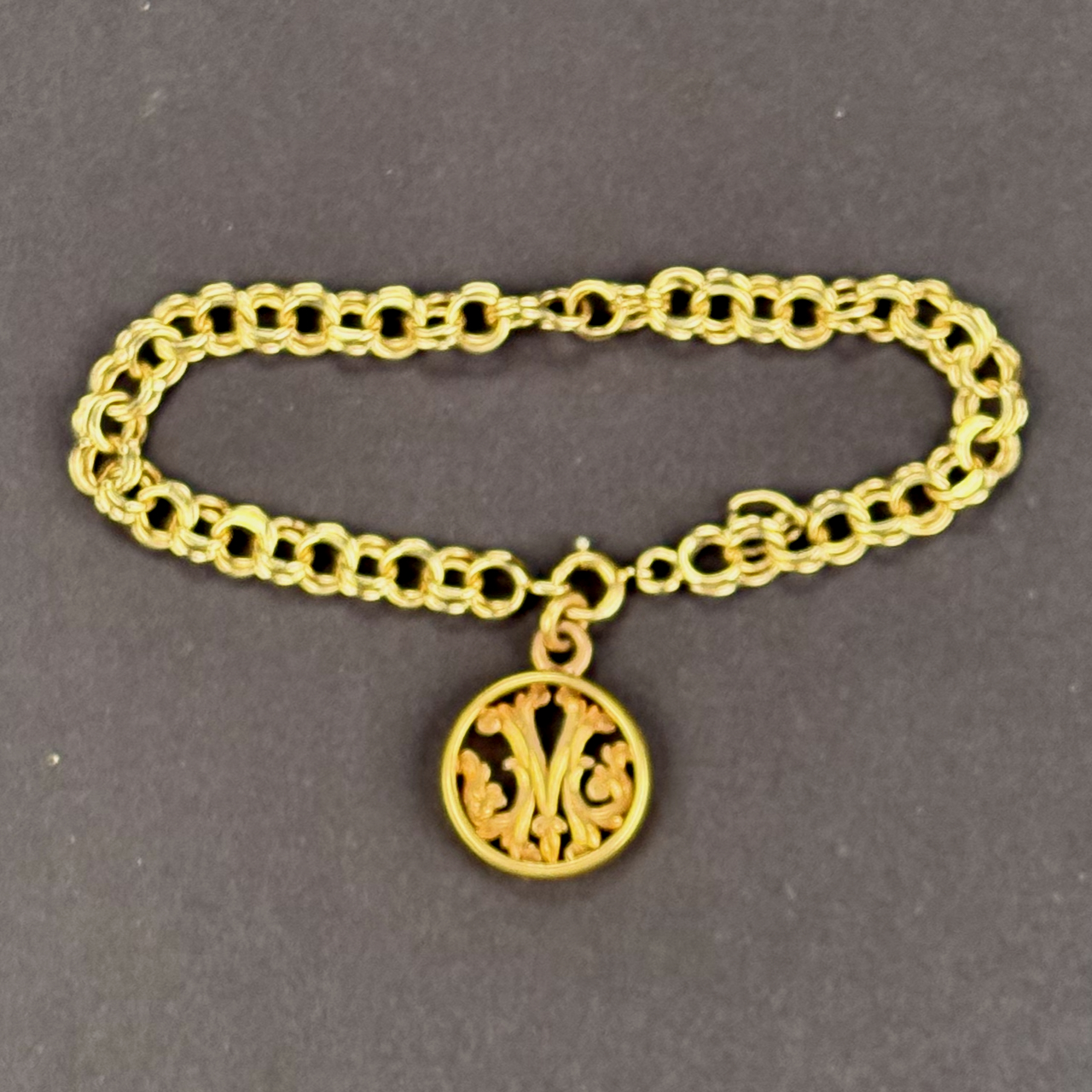 Home / ANTIQUE ESTATE AUCTION - FRI FEBRUARY 20 AT 6 PM / LOT 027 14K YG CHAIN BRACELET WITH ROUND CUT OUT “M” CHARM, CHARM BRACELET MARKED, 5.7 DWT, (8.9 G), .29 OZT, UNMARKED CHARM, 3 DWT (4.6 G), .15 OZT, 7″(L) LOT 027 14K YG CHAIN BRACELET WITH ROUND CUT OUT “M” CHARM, CHARM BRACELET MARKED, 5.7 DWT, (8.9 G), .29 OZT, UNMARKED CHARM, 3 DWT (4.6 G), .15 OZT, 7″(L) Place a Bid Category: ANTIQUE ESTATE AUCTION - FRI FEBRUARY 20 AT 6 PM Tag: auction Related products LOT 003 PAIR OF STERLING SILVER PORRINGERS BY GEBELEIN, BOSTON. 7″(L), 4-3/4 BOWL, 12 OZT LOT 019 COIN SILVER MUG BY C. BARD & SON, PHILADELPHIA, PA, CIRCA 1850 INSCRIBED ‘ANNA CRAIG FULTON’, THE BODY HAVING REPOUSSE FLOWERS. 3-1/2″(H), 3.3 OZT LOT 007 FIXED HANDLED STERLING SILVER LOW BASKET MARKED BIGELOW, KENNARD & CO. 5-1/2″(H), 10-1/2″(D), 9.8 OZT LOT 009 48 PC STERLING SILVER FLATWARE SET IN THE “KING GEORGE” PATTERN BY GORHAM, 57 OZT (WITHOUT 16 KNIVES) MONOGRAMMED