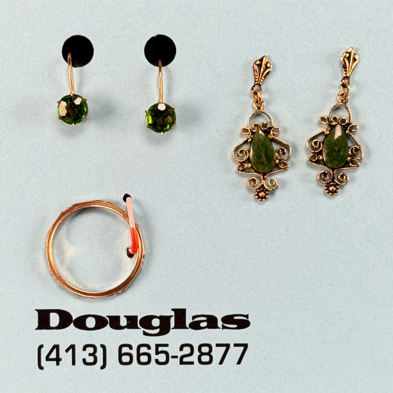 Home / ANTIQUE ESTATE AUCTION - FRI MARCH 27 AT 6 PM / LOT 029 TWO PAIR OF GREEN STONE EARRINGS AND 14K YG WEDDING BAND, SIZE 5-1/2 LOT 029 TWO PAIR OF GREEN STONE EARRINGS AND 14K YG WEDDING BAND, SIZE 5-1/2 Place a Bid Category: ANTIQUE ESTATE AUCTION - FRI MARCH 27 AT 6 PM Tag: auction Related products LOT 020 STERLING SILVER HINGED SQUARE BOX, LONDON, 1806, MAKERS MARK RH?, THE LID WITH A REPOUSSE SCENE OF 2 MEN PLAYING A BOARD GAME. 1-1/4″(H), 4″(W), 4″(D) LOT 015 42 PC STERLING FLATWARE SET BY LUNT IN THE ‘WILLIAM & MARY’ PATTERN, NO MONOGRAM. 34.5 OZT (W/O 12 KNIVES) LOT 022 STEPHEN G. MANIATTY, ‘BUCKET OF POSIES’, OIL ON CANVAS, SIGNED LOWER RIGHT, FRAMED. 38 X 36 LOT 006 FINE PAIR OF FANCY STERLING SILVER CANDLESTICKS, SHEFFIELD, 1903-4 WITH MAKER’S MARK ‘HE LD’, 12″(H)