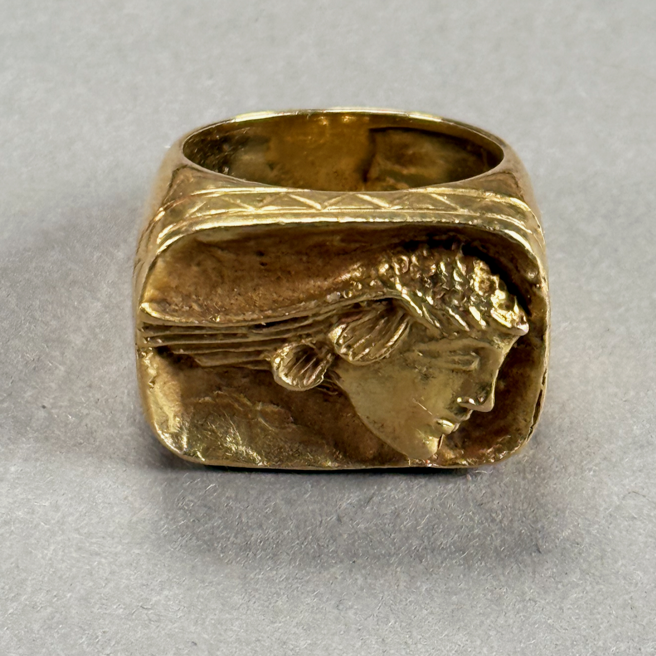 Home / ANTIQUE ESTATE AUCTION - FRI FEBRUARY 20 AT 6 PM / LOT 031 HEAVY FRENCH GOLD RING WITH HEAD OF MERCURY WITH “MADE IN FRANCE” AND HALLMARKED 10.28 DWT (16 G) LOT 031 HEAVY FRENCH GOLD RING WITH HEAD OF MERCURY WITH “MADE IN FRANCE” AND HALLMARKED 10.28 DWT (16 G) Place a Bid Category: ANTIQUE ESTATE AUCTION - FRI FEBRUARY 20 AT 6 PM Tag: auction Related products LOT 016 6 PCS OF STERLING SILVER: (1) 6″(D) PLATE BY TOWLE. (2) 3-1/2 FOOTED CREAMER BY POOLE. (3) 4″(D) FOOTED BOWL BY SHREVE, CRUMP & LOW CO (4) 7″(L) FOOTED GRAVY BY J.E. CALDWELL & CO (5) 4″ CREAMER BY DOMINICK & HAFF (6) 6-3/4″(W) DISH BY TOWLE. 25.2 OZT LOT 013 3 PCS OF STERLING SILVER: (1) OVAL DEEP SERVING DISH BY E. CALDWELL & CO, 10 X 6-1/2. (2) PORRINGER BY DOMINICK & HAFF, 7″. (3) PORRINGER BY RWM, 6″. 21.8 OZT LOT 014 PAIR OF STERLING SILVER 2 HANDLED PLATES BY WEBSTER MARKED ‘6613’, NO MONOGRAM, 10-1/2 AT WIDEST, 21.3 OZT LOT 005 PAIR OF STERLING SILVER CANDELABRAS BY ARROWSMITH, WEIGHTED IN 2 PARTS. 14-1/2″(H) (1 REPAIRED)