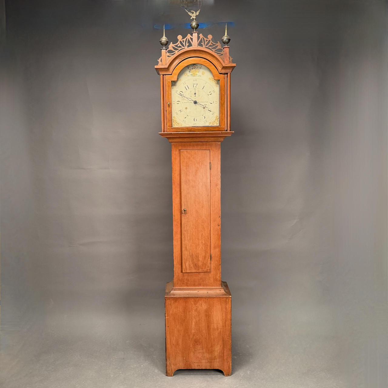 Home / ANTIQUE ESTATE AUCTION - FRI DECEMBER 12 AT 6 PM / LOT 039 ANTIQUE GRANDFATHER CLOCK BY RILEY WHITING, WINCHESTER, CT, WOODEN WORKS AND SIGNED DIAL. 94″(H), 17-1/2″(W) X 10″(D), 2 WEIGHTS, 3 FINIALS AND PENDULUM BOB (NO STICK) PRESENT LOT 039 ANTIQUE GRANDFATHER CLOCK BY RILEY WHITING, WINCHESTER, CT, WOODEN WORKS AND SIGNED DIAL. 94″(H), 17-1/2″(W) X 10″(D), 2 WEIGHTS, 3 FINIALS AND PENDULUM BOB (NO STICK) PRESENT Place a Bid Category: ANTIQUE ESTATE AUCTION - FRI DECEMBER 12 AT 6 PM Tag: auction Related products LOT 011 4 PCS OF ENGLISH STERLING SILVER. (1) EXPANDING TOAST RACK, 1901-1902, LONDON, 3″(H). (2) 3″ TEA CADDY SPOON, 1796-7, LONDON. (3) 7″ RETICULATED 2 HANDLED DISH, 1906-7, BIRMINGHAM. (4) 2″(H) TANKARD SHAPED MUSTARD WITH COBALT LINER, 1902-3, BIRMINGHAM. 12.6 OZT (W/O LINER) LOT 016 6 PCS OF STERLING SILVER: (1) 6″(D) PLATE BY TOWLE. (2) 3-1/2 FOOTED CREAMER BY POOLE. (3) 4″(D) FOOTED BOWL BY SHREVE, CRUMP & LOW CO (4) 7″(L) FOOTED GRAVY BY J.E. CALDWELL & CO (5) 4″ CREAMER BY DOMINICK & HAFF (6) 6-3/4″(W) DISH BY TOWLE. 25.2 OZT LOT 004 133 PC STERLING SILVER FLATWARE SET IN THE “KING PATTERN. 190 OZT (EXCLUDING 12 KNIVES), MONOGRAMMED LOT 014 PAIR OF STERLING SILVER 2 HANDLED PLATES BY WEBSTER MARKED ‘6613’, NO MONOGRAM, 10-1/2 AT WIDEST, 21.3 OZT