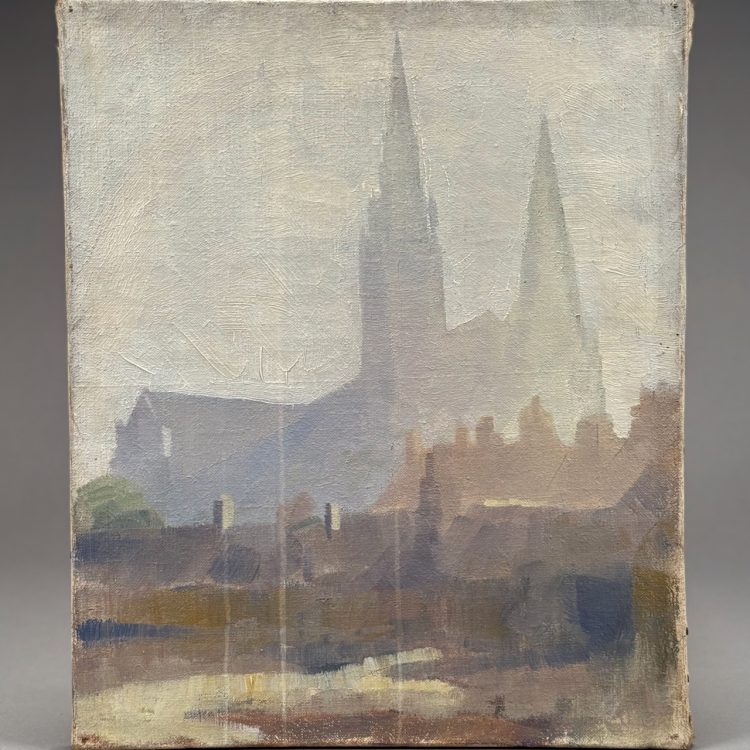 Home / ANTIQUE AUCTION - FRI OCTOBER 3 AT 6 PM / LOT 040 DONALD CARLISLE GREASON, NOTRE DAME, PARIS, OIL ON CANVAS, UNSIGNED, UNFRAMED, 18 X 15 LOT 040 DONALD CARLISLE GREASON, NOTRE DAME, PARIS, OIL ON CANVAS, UNSIGNED, UNFRAMED, 18 X 15 Place a Bid Categories: ANTIQUE AUCTION - FRI OCTOBER 3 AT 6 PM, OCTOBER 3 AT 6 PM Tag: auction Related products LOT 024 STEPHEN G. MANIATTY, ‘OCTOBERS GIFT’, OIL ON CANVAS, SIGNED LOWER RIGHT, FRAMED. 34 X 25 LOT 013 3 PCS OF STERLING SILVER: (1) OVAL DEEP SERVING DISH BY E. CALDWELL & CO, 10 X 6-1/2. (2) PORRINGER BY DOMINICK & HAFF, 7″. (3) PORRINGER BY RWM, 6″. 21.8 OZT LOT 007 FIXED HANDLED STERLING SILVER LOW BASKET MARKED BIGELOW, KENNARD & CO. 5-1/2″(H), 10-1/2″(D), 9.8 OZT LOT 020 STERLING SILVER HINGED SQUARE BOX, LONDON, 1806, MAKERS MARK RH?, THE LID WITH A REPOUSSE SCENE OF 2 MEN PLAYING A BOARD GAME. 1-1/4″(H), 4″(W), 4″(D)