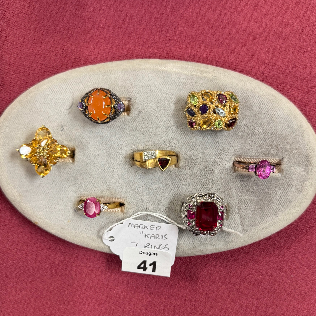 Home / LARGE ESTATE AUCTION - FRI JANUARY 16 AT 6 PM / LOT 041 SEVEN RINGS MARKED KARIS LOT 041 SEVEN RINGS MARKED KARIS Place a Bid Category: LARGE ESTATE AUCTION - FRI JANUARY 16 AT 6 PM Tag: auction Related products LOT 008 11 STERLING SILVER PLATES BY GORHAM. 6″(D), 27.8 OZT LOT 023 STEPHEN G. MANIATTY, ‘SAWMILL’, OIL ON CANVAS, SIGNED LOWER RIGHT, FRAMED WITH AN AWARD PLAQUE “GRUMBACHER ARTISTS MATERIAL AWARD/GRAND NATIONAL EXHIBITION/NEW YORK CITY – 1965”. 20 X 30 LOT 015 42 PC STERLING FLATWARE SET BY LUNT IN THE ‘WILLIAM & MARY’ PATTERN, NO MONOGRAM. 34.5 OZT (W/O 12 KNIVES) LOT 006 FINE PAIR OF FANCY STERLING SILVER CANDLESTICKS, SHEFFIELD, 1903-4 WITH MAKER’S MARK ‘HE LD’, 12″(H)