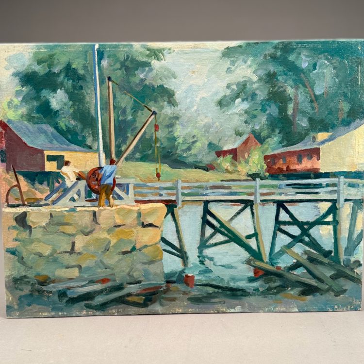 Home / ANTIQUE AUCTION - FRI OCTOBER 3 AT 6 PM / LOT 043 DONALD CARLISLE GREASON, “GLOUCESTER HARBOR 1955”, OIL ON CANVAS BOARD, SIGNED AND TITLED ON REVERSE, UNFRAMED, 12 X 16 LOT 043 DONALD CARLISLE GREASON, “GLOUCESTER HARBOR 1955”, OIL ON CANVAS BOARD, SIGNED AND TITLED ON REVERSE, UNFRAMED, 12 X 16 Place a Bid Categories: ANTIQUE AUCTION - FRI OCTOBER 3 AT 6 PM, OCTOBER 3 AT 6 PM Tag: auction Related products LOT 010 2 STERLING SILVER SHAKERS, ONE 6″(H) WITH BLURRED ENGLISH HALLMARKS, THE OTHER 6-1/2″(H) MARKED STERLING. 9 OZT LOT 009 48 PC STERLING SILVER FLATWARE SET IN THE “KING GEORGE” PATTERN BY GORHAM, 57 OZT (WITHOUT 16 KNIVES) MONOGRAMMED LOT 012 2 SMALL STERLING SILVER TRAYS. (1) 6″ SQUARE BY DOMINICK & HAFF (2) 7-1/2 X 5-1/2 OVAL FOOTED TRAY BY J.E. CALDWELL & CO, BOTH MONOGRAMMED. 11.7 OZT LOT 021 OSCAR BERNINGHAUS, ‘THE ROAD TO TAOS’, OIL ON CANVAS, SIGNED LOWER RIGHT, GILT FRAME WITH ARTIST PLAQUE. ON REVERSE OF FRAME IS A PENNSYLVANIA ACADEMY OF THE FINE ART LABEL FOR THEIR 109TH ANNUAL ART EXHIBITION WITH TITLE AND ARTIST (1914). 24 X 36