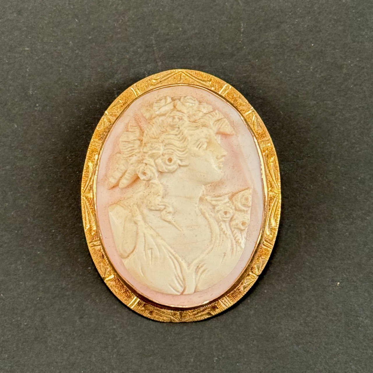 Home / ANTIQUE ESTATE AUCTION - FRI JANUARY 30 AT 6 PM / LOT 046 10K YG FRAMED CARVED SHELL CAMEO PIN/PENDANT OF A WOMAN WITH FLOWERS IN HER HAIR. 1-3/4″ X 1-1/2″(D) LOT 046 10K YG FRAMED CARVED SHELL CAMEO PIN/PENDANT OF A WOMAN WITH FLOWERS IN HER HAIR. 1-3/4″ X 1-1/2″(D) Place a Bid Category: ANTIQUE ESTATE AUCTION - FRI JANUARY 30 AT 6 PM Tag: auction Related products LOT 004 133 PC STERLING SILVER FLATWARE SET IN THE “KING PATTERN. 190 OZT (EXCLUDING 12 KNIVES), MONOGRAMMED LOT 008 11 STERLING SILVER PLATES BY GORHAM. 6″(D), 27.8 OZT LOT 006 FINE PAIR OF FANCY STERLING SILVER CANDLESTICKS, SHEFFIELD, 1903-4 WITH MAKER’S MARK ‘HE LD’, 12″(H) LOT 024 STEPHEN G. MANIATTY, ‘OCTOBERS GIFT’, OIL ON CANVAS, SIGNED LOWER RIGHT, FRAMED. 34 X 25