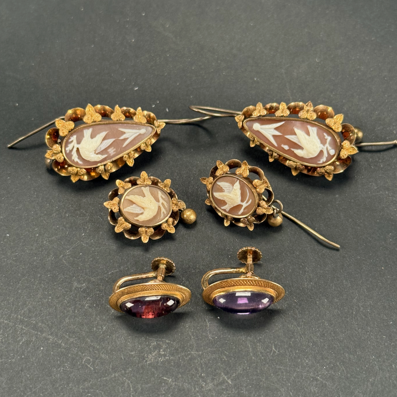 Home / ANTIQUE AUCTION - FRI NOVEMBER 7 AT 6 PM / LOT 047 THREE PAIR OF EARRINGS 1-1/4″(L), PAIR OF TEAR DROP SHAPED CAMEOS WITH BIRDS, ANOTHER SIMILAR PAIR 3/4″(L) (ONE AS IS) AND PAIR 14K AMETHYST CABOCHON SCREW BACK EARRINGS LOT 047 THREE PAIR OF EARRINGS 1-1/4″(L), PAIR OF TEAR DROP SHAPED CAMEOS WITH BIRDS, ANOTHER SIMILAR PAIR 3/4″(L) (ONE AS IS) AND PAIR 14K AMETHYST CABOCHON SCREW BACK EARRINGS Place a Bid Category: ANTIQUE AUCTION - FRI NOVEMBER 7 AT 6 PM Tag: auction Related products LOT 020 STERLING SILVER HINGED SQUARE BOX, LONDON, 1806, MAKERS MARK RH?, THE LID WITH A REPOUSSE SCENE OF 2 MEN PLAYING A BOARD GAME. 1-1/4″(H), 4″(W), 4″(D) LOT 022 STEPHEN G. MANIATTY, ‘BUCKET OF POSIES’, OIL ON CANVAS, SIGNED LOWER RIGHT, FRAMED. 38 X 36 LOT 011 4 PCS OF ENGLISH STERLING SILVER. (1) EXPANDING TOAST RACK, 1901-1902, LONDON, 3″(H). (2) 3″ TEA CADDY SPOON, 1796-7, LONDON. (3) 7″ RETICULATED 2 HANDLED DISH, 1906-7, BIRMINGHAM. (4) 2″(H) TANKARD SHAPED MUSTARD WITH COBALT LINER, 1902-3, BIRMINGHAM. 12.6 OZT (W/O LINER) LOT 007 FIXED HANDLED STERLING SILVER LOW BASKET MARKED BIGELOW, KENNARD & CO. 5-1/2″(H), 10-1/2″(D), 9.8 OZT