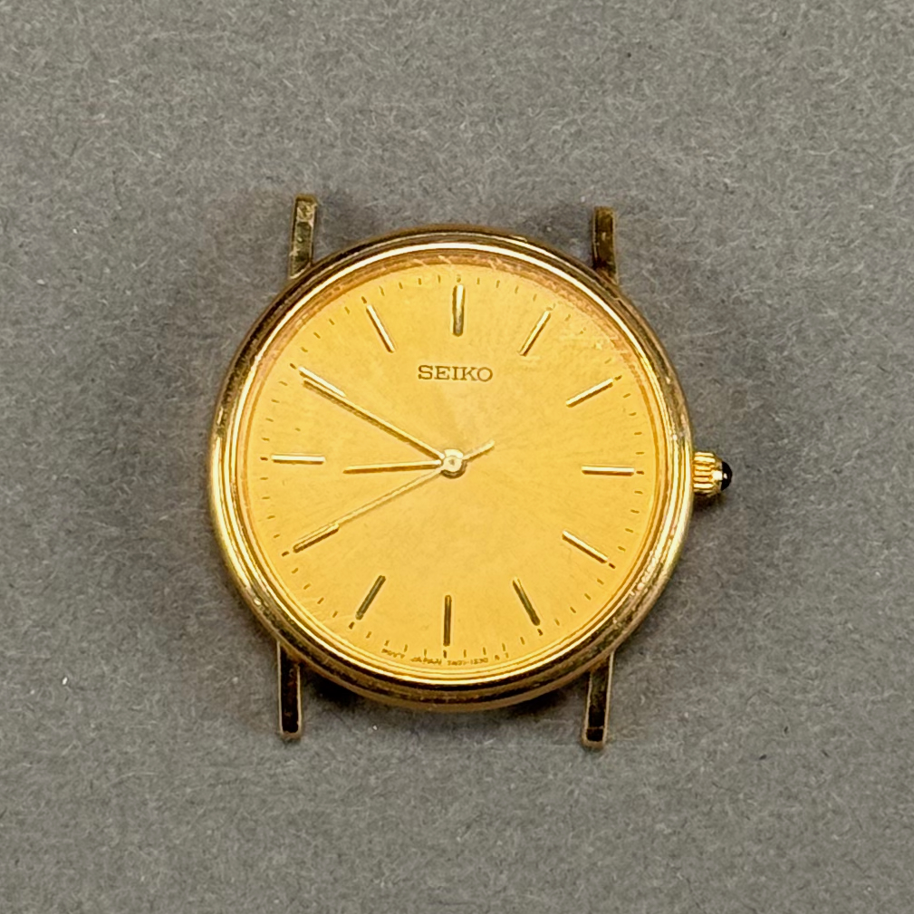 Home / ANTIQUE ESTATE AUCTION - FRI MARCH 27 AT 6 PM / LOT 051 14K YG SEIKO WRISTWATCH (NO BAND). TOTAL WEIGHT: 12.6 DWT, (19.7 G) OR .63 OZT ALONG WITH ANOTHER SEIKO WRISTWATCH LOT 051 14K YG SEIKO WRISTWATCH (NO BAND). TOTAL WEIGHT: 12.6 DWT, (19.7 G) OR .63 OZT ALONG WITH ANOTHER SEIKO WRISTWATCH Place a Bid Category: ANTIQUE ESTATE AUCTION - FRI MARCH 27 AT 6 PM Tag: auction Related products LOT 002 3 PC STERLING SILVER TEA SET BY GORHAM CONSISTING OF 10″ TEAPOT (2441), 6-1/2″ CREAMER (2444), 6″ COVERED SUGAR (2443), 45 OZT LOT 012 2 SMALL STERLING SILVER TRAYS. (1) 6″ SQUARE BY DOMINICK & HAFF (2) 7-1/2 X 5-1/2 OVAL FOOTED TRAY BY J.E. CALDWELL & CO, BOTH MONOGRAMMED. 11.7 OZT LOT 016 6 PCS OF STERLING SILVER: (1) 6″(D) PLATE BY TOWLE. (2) 3-1/2 FOOTED CREAMER BY POOLE. (3) 4″(D) FOOTED BOWL BY SHREVE, CRUMP & LOW CO (4) 7″(L) FOOTED GRAVY BY J.E. CALDWELL & CO (5) 4″ CREAMER BY DOMINICK & HAFF (6) 6-3/4″(W) DISH BY TOWLE. 25.2 OZT LOT 019 COIN SILVER MUG BY C. BARD & SON, PHILADELPHIA, PA, CIRCA 1850 INSCRIBED ‘ANNA CRAIG FULTON’, THE BODY HAVING REPOUSSE FLOWERS. 3-1/2″(H), 3.3 OZT