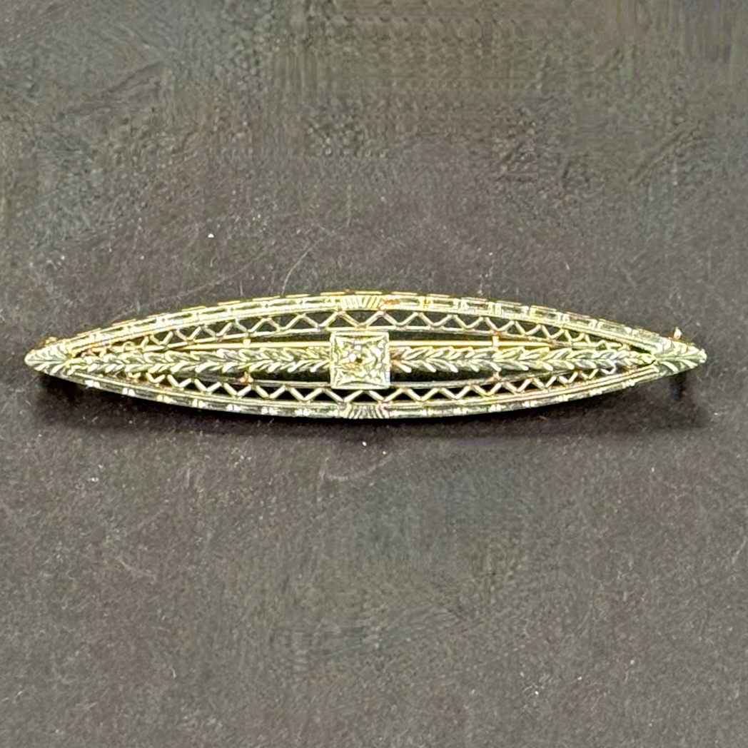 Home / ANTIQUE ESTATE AUCTION - FRI FEBRUARY 20 AT 6 PM / LOT 052 14K YG & WG AND DIAMOND PIN, 2″(L), 2.8 DWT, 4.3 G, .14 OZT LOT 052 14K YG & WG AND DIAMOND PIN, 2″(L), 2.8 DWT, 4.3 G, .14 OZT Place a Bid Category: ANTIQUE ESTATE AUCTION - FRI FEBRUARY 20 AT 6 PM Tag: auction Related products LOT 014 PAIR OF STERLING SILVER 2 HANDLED PLATES BY WEBSTER MARKED ‘6613’, NO MONOGRAM, 10-1/2 AT WIDEST, 21.3 OZT LOT 007 FIXED HANDLED STERLING SILVER LOW BASKET MARKED BIGELOW, KENNARD & CO. 5-1/2″(H), 10-1/2″(D), 9.8 OZT LOT 018 COIN SILVER HANDLED CUP, PROBABLY FREEMAN & WALLIN, PHILADELPHIA, CIRCA 1850. 4″(H), 3.6 OZT. LOT 008 11 STERLING SILVER PLATES BY GORHAM. 6″(D), 27.8 OZT