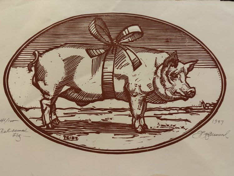 Home / ANTIQUE AUCTION - FRI OCTOBER 3 AT 6 PM / LOT 053 TIM ENGELLAND, “RERIBBONED PIG”, L.E. 41/100, SIGNED LOWER RIGHT, DATED 1987, WOODBLOCK PRINT, UNFRAMED. 13 X 19 LOT 053 TIM ENGELLAND, “RERIBBONED PIG”, L.E. 41/100, SIGNED LOWER RIGHT, DATED 1987, WOODBLOCK PRINT, UNFRAMED. 13 X 19 Place a Bid Categories: ANTIQUE AUCTION - FRI OCTOBER 3 AT 6 PM, OCTOBER 3 AT 6 PM Tag: auction Related products LOT 008 11 STERLING SILVER PLATES BY GORHAM. 6″(D), 27.8 OZT LOT 014 PAIR OF STERLING SILVER 2 HANDLED PLATES BY WEBSTER MARKED ‘6613’, NO MONOGRAM, 10-1/2 AT WIDEST, 21.3 OZT LOT 015 42 PC STERLING FLATWARE SET BY LUNT IN THE ‘WILLIAM & MARY’ PATTERN, NO MONOGRAM. 34.5 OZT (W/O 12 KNIVES) LOT 011 4 PCS OF ENGLISH STERLING SILVER. (1) EXPANDING TOAST RACK, 1901-1902, LONDON, 3″(H). (2) 3″ TEA CADDY SPOON, 1796-7, LONDON. (3) 7″ RETICULATED 2 HANDLED DISH, 1906-7, BIRMINGHAM. (4) 2″(H) TANKARD SHAPED MUSTARD WITH COBALT LINER, 1902-3, BIRMINGHAM. 12.6 OZT (W/O LINER)