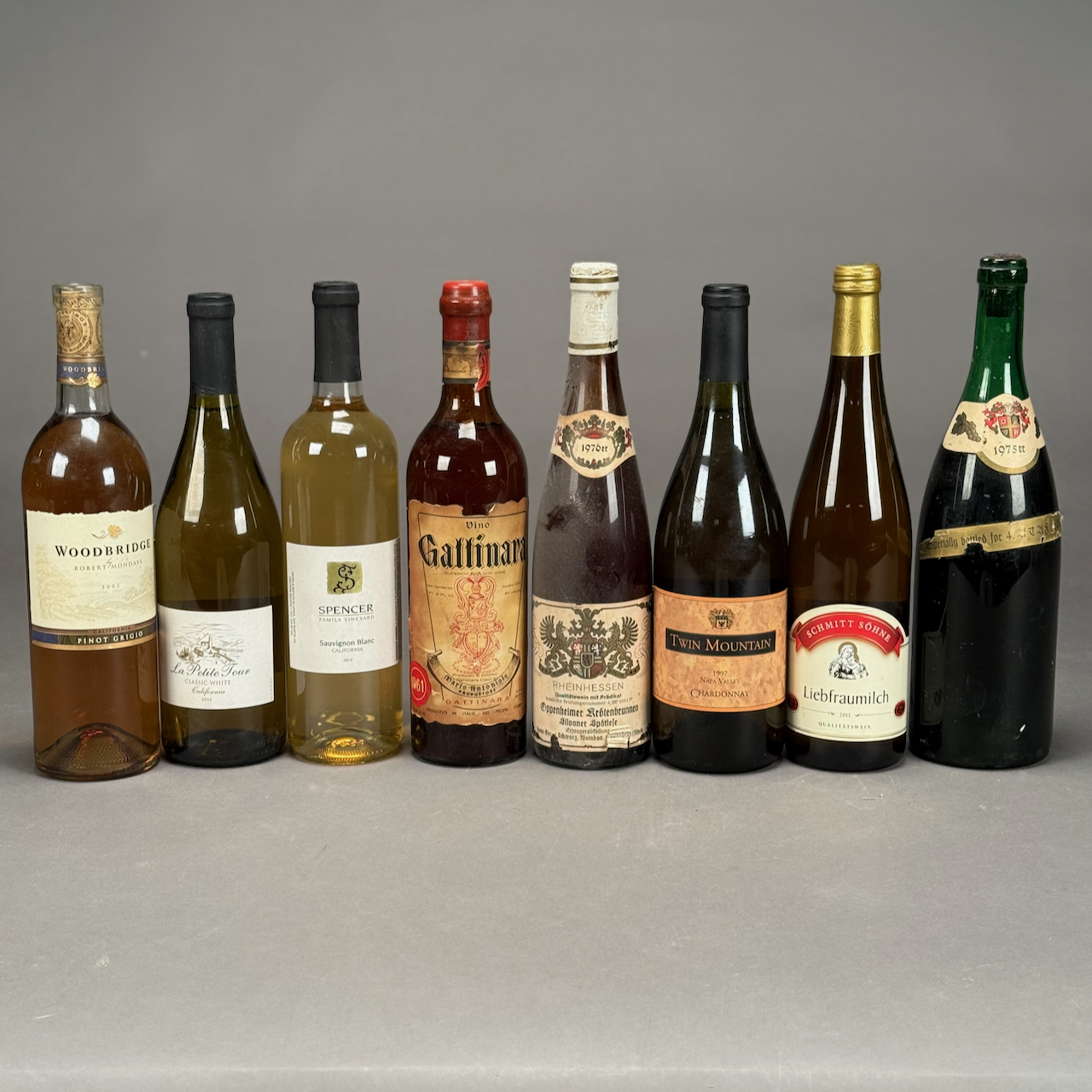 Home / ANTIQUE ESTATE AUCTION - FRI DECEMBER 12 AT 6 PM / LOT 061 EIGHT ASSORTED BOTTLES OF WHITE WINE, ALL DIFFERENT LOT 061 EIGHT ASSORTED BOTTLES OF WHITE WINE, ALL DIFFERENT Place a Bid Category: ANTIQUE ESTATE AUCTION - FRI DECEMBER 12 AT 6 PM Tag: auction Related products LOT 006 FINE PAIR OF FANCY STERLING SILVER CANDLESTICKS, SHEFFIELD, 1903-4 WITH MAKER’S MARK ‘HE LD’, 12″(H) LOT 005 PAIR OF STERLING SILVER CANDELABRAS BY ARROWSMITH, WEIGHTED IN 2 PARTS. 14-1/2″(H) (1 REPAIRED) LOT 002 3 PC STERLING SILVER TEA SET BY GORHAM CONSISTING OF 10″ TEAPOT (2441), 6-1/2″ CREAMER (2444), 6″ COVERED SUGAR (2443), 45 OZT LOT 004 133 PC STERLING SILVER FLATWARE SET IN THE “KING PATTERN. 190 OZT (EXCLUDING 12 KNIVES), MONOGRAMMED