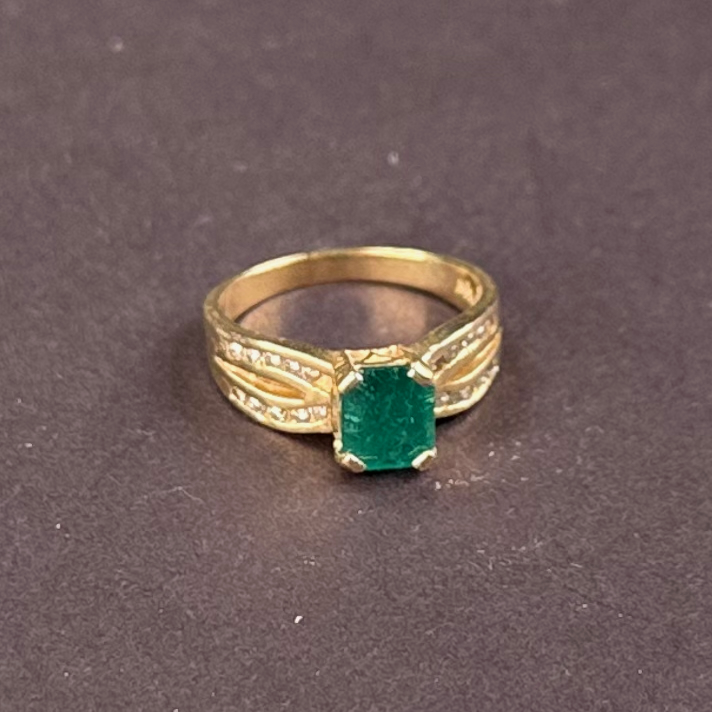 Home / ANTIQUE ESTATE AUCTION - FRI FEBRUARY 20 AT 6 PM / LOT 062 14K YG RING WITH EMERALD FLANKED BY ROWS OF SMALL DIAMONDS, SIZE 6-3/4, 2.6 DWT, (4.1 G) LOT 062 14K YG RING WITH EMERALD FLANKED BY ROWS OF SMALL DIAMONDS, SIZE 6-3/4, 2.6 DWT, (4.1 G) Place a Bid Category: ANTIQUE ESTATE AUCTION - FRI FEBRUARY 20 AT 6 PM Tag: auction Related products LOT 010 2 STERLING SILVER SHAKERS, ONE 6″(H) WITH BLURRED ENGLISH HALLMARKS, THE OTHER 6-1/2″(H) MARKED STERLING. 9 OZT LOT 005 PAIR OF STERLING SILVER CANDELABRAS BY ARROWSMITH, WEIGHTED IN 2 PARTS. 14-1/2″(H) (1 REPAIRED) LOT 007 FIXED HANDLED STERLING SILVER LOW BASKET MARKED BIGELOW, KENNARD & CO. 5-1/2″(H), 10-1/2″(D), 9.8 OZT LOT 009 48 PC STERLING SILVER FLATWARE SET IN THE “KING GEORGE” PATTERN BY GORHAM, 57 OZT (WITHOUT 16 KNIVES) MONOGRAMMED