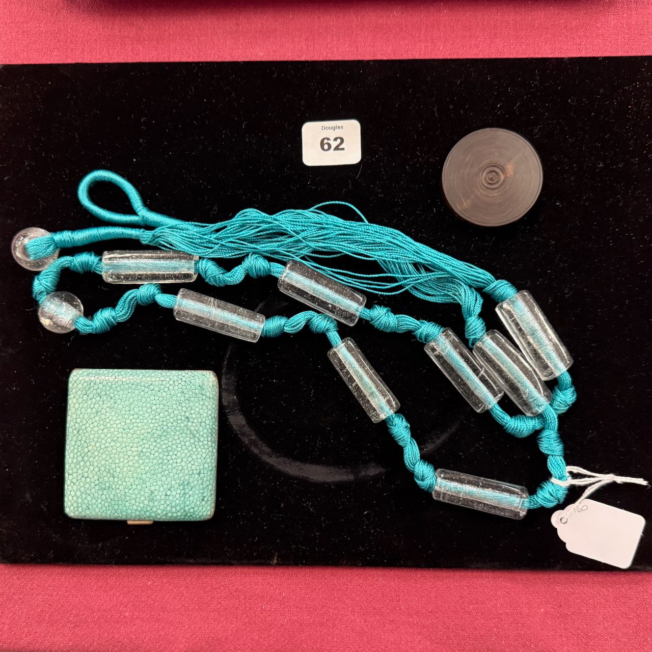 Home / LARGE ESTATE AUCTION - FRI JANUARY 16 AT 6 PM / LOT 062 SHAGREEN COMPACT, NECKLACE & BOX LOT 062 SHAGREEN COMPACT, NECKLACE & BOX Place a Bid Category: LARGE ESTATE AUCTION - FRI JANUARY 16 AT 6 PM Tag: auction Related products LOT 013 3 PCS OF STERLING SILVER: (1) OVAL DEEP SERVING DISH BY E. CALDWELL & CO, 10 X 6-1/2. (2) PORRINGER BY DOMINICK & HAFF, 7″. (3) PORRINGER BY RWM, 6″. 21.8 OZT LOT 014 PAIR OF STERLING SILVER 2 HANDLED PLATES BY WEBSTER MARKED ‘6613’, NO MONOGRAM, 10-1/2 AT WIDEST, 21.3 OZT LOT 019 COIN SILVER MUG BY C. BARD & SON, PHILADELPHIA, PA, CIRCA 1850 INSCRIBED ‘ANNA CRAIG FULTON’, THE BODY HAVING REPOUSSE FLOWERS. 3-1/2″(H), 3.3 OZT LOT 017 CONTINENTAL SILVER (.800) DRESSER BOX MARKED ON BASE ‘BEUTHNER’. 3-1/4″(H), 5-1/2″(W) X 4″(D), 8 OZT