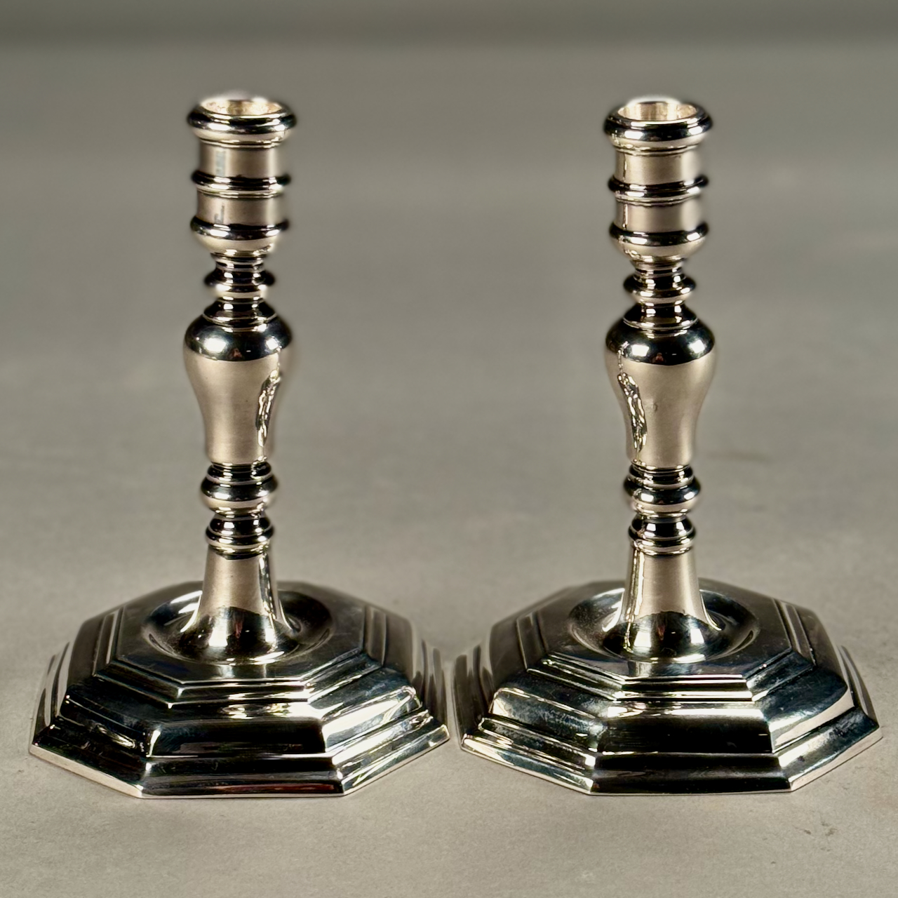 Home / ANTIQUE ESTATE AUCTION - FRI MARCH 27 AT 6 PM / LOT 065 PAIR OF TIFFANY & CO. STERLING SILVER CANDLESTICKS MARKED “TIFFANY & CO. STERLING DENMARK”. 6-1/2″(H), 25.4 OZT LOT 065 PAIR OF TIFFANY & CO. STERLING SILVER CANDLESTICKS MARKED “TIFFANY & CO. STERLING DENMARK”. 6-1/2″(H), 25.4 OZT Place a Bid Category: ANTIQUE ESTATE AUCTION - FRI MARCH 27 AT 6 PM Tag: auction Related products LOT 001 PAIR OF STERLING SILVER COLUMN CANDLESTICKS BY GORHAM MARKED A3207 EACH HAVING REMOVABLE BOBECHES. 10-1/4″(H) LOT 010 2 STERLING SILVER SHAKERS, ONE 6″(H) WITH BLURRED ENGLISH HALLMARKS, THE OTHER 6-1/2″(H) MARKED STERLING. 9 OZT LOT 022 STEPHEN G. MANIATTY, ‘BUCKET OF POSIES’, OIL ON CANVAS, SIGNED LOWER RIGHT, FRAMED. 38 X 36 LOT 009 48 PC STERLING SILVER FLATWARE SET IN THE “KING GEORGE” PATTERN BY GORHAM, 57 OZT (WITHOUT 16 KNIVES) MONOGRAMMED