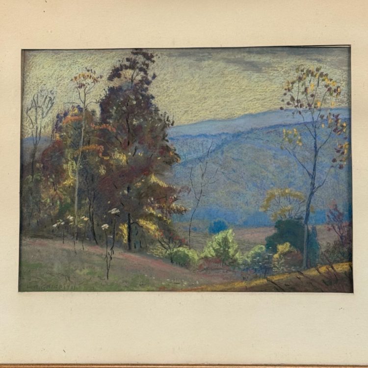 Home / ANTIQUE AUCTION - FRI OCTOBER 3 AT 6 PM / LOT 066 LOUIS OSCAR GRIFFITH, BLUE MOUNTAIN LANDSCAPE, PASTEL, SIGNED LOWER LEFT, FRAMED. 9-1/2 X 13 SIGHT SIZE LOT 066 LOUIS OSCAR GRIFFITH, BLUE MOUNTAIN LANDSCAPE, PASTEL, SIGNED LOWER LEFT, FRAMED. 9-1/2 X 13 SIGHT SIZE Place a Bid Categories: ANTIQUE AUCTION - FRI OCTOBER 3 AT 6 PM, OCTOBER 3 AT 6 PM Tag: auction Related products LOT 018 COIN SILVER HANDLED CUP, PROBABLY FREEMAN & WALLIN, PHILADELPHIA, CIRCA 1850. 4″(H), 3.6 OZT. LOT 006 FINE PAIR OF FANCY STERLING SILVER CANDLESTICKS, SHEFFIELD, 1903-4 WITH MAKER’S MARK ‘HE LD’, 12″(H) LOT 008 11 STERLING SILVER PLATES BY GORHAM. 6″(D), 27.8 OZT LOT 021 OSCAR BERNINGHAUS, ‘THE ROAD TO TAOS’, OIL ON CANVAS, SIGNED LOWER RIGHT, GILT FRAME WITH ARTIST PLAQUE. ON REVERSE OF FRAME IS A PENNSYLVANIA ACADEMY OF THE FINE ART LABEL FOR THEIR 109TH ANNUAL ART EXHIBITION WITH TITLE AND ARTIST (1914). 24 X 36