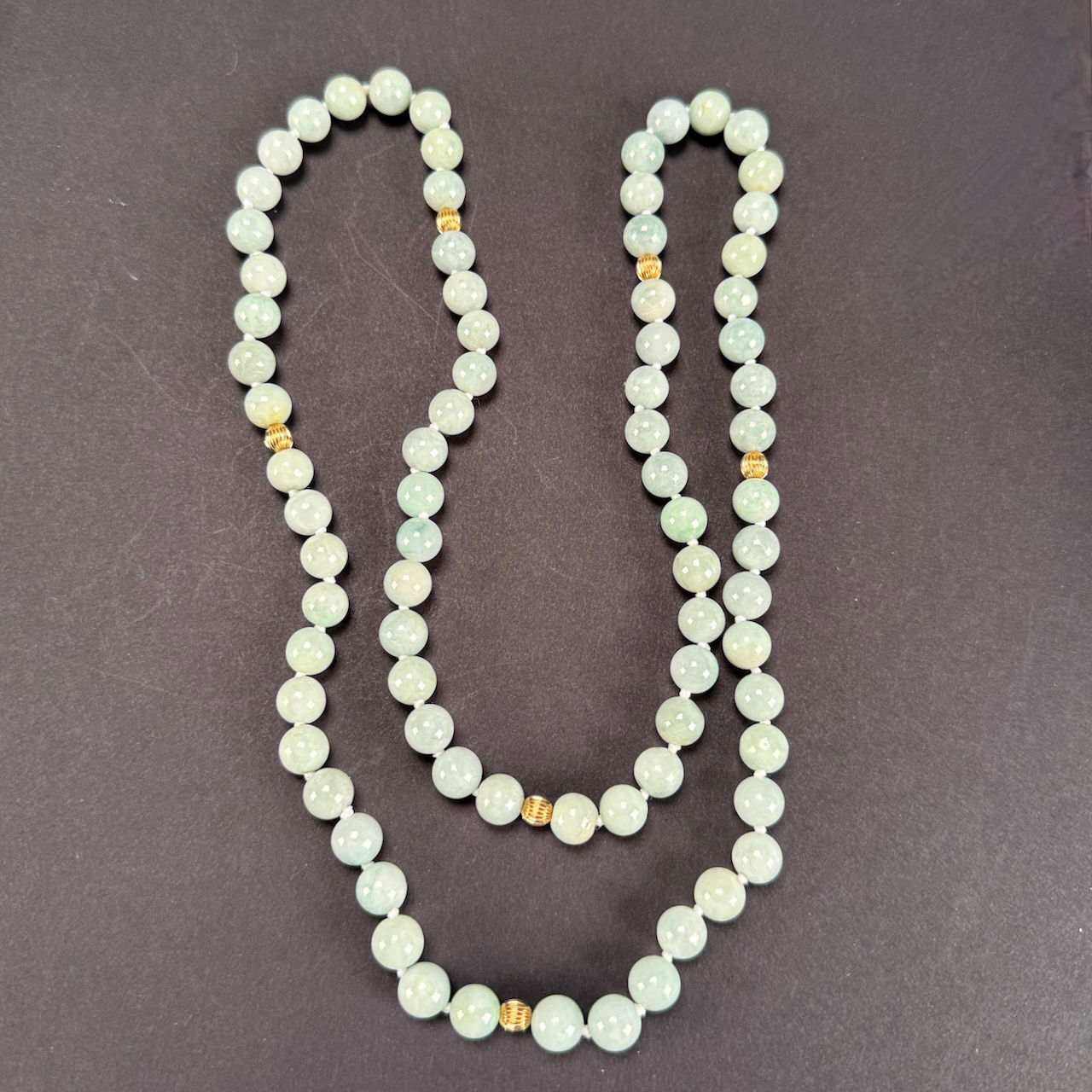 Home / ANTIQUE AUCTION - FRI NOVEMBER 7 AT 6 PM / LOT 067 JADE BEAD NECKLACE. 26″(L) LOT 067 JADE BEAD NECKLACE. 26″(L) Place a Bid Category: ANTIQUE AUCTION - FRI NOVEMBER 7 AT 6 PM Tag: auction Related products LOT 022 STEPHEN G. MANIATTY, ‘BUCKET OF POSIES’, OIL ON CANVAS, SIGNED LOWER RIGHT, FRAMED. 38 X 36 LOT 008 11 STERLING SILVER PLATES BY GORHAM. 6″(D), 27.8 OZT LOT 013 3 PCS OF STERLING SILVER: (1) OVAL DEEP SERVING DISH BY E. CALDWELL & CO, 10 X 6-1/2. (2) PORRINGER BY DOMINICK & HAFF, 7″. (3) PORRINGER BY RWM, 6″. 21.8 OZT LOT 011 4 PCS OF ENGLISH STERLING SILVER. (1) EXPANDING TOAST RACK, 1901-1902, LONDON, 3″(H). (2) 3″ TEA CADDY SPOON, 1796-7, LONDON. (3) 7″ RETICULATED 2 HANDLED DISH, 1906-7, BIRMINGHAM. (4) 2″(H) TANKARD SHAPED MUSTARD WITH COBALT LINER, 1902-3, BIRMINGHAM. 12.6 OZT (W/O LINER)