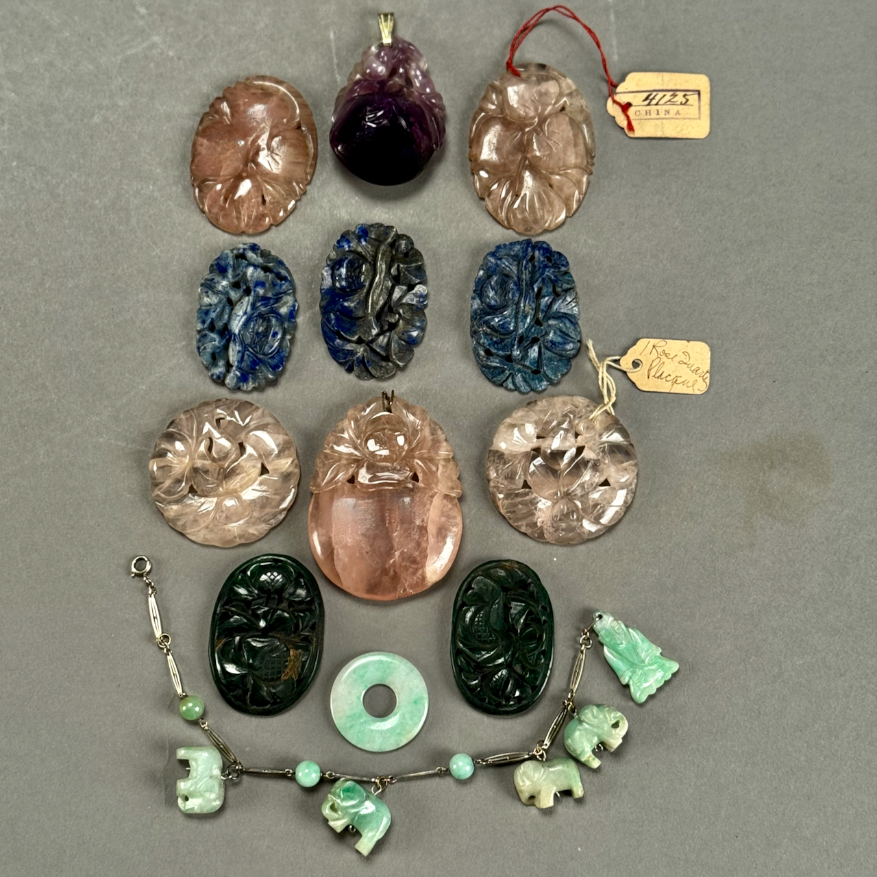 Home / ANTIQUE AUCTION - FRI NOVEMBER 7 AT 6 PM / LOT 069 THIRTEEN CARVED SEMI-PRECIOUS STONE PENDANTS AND PIECES. INCLUDING JADE, QUARTZ, LAPIS, AMETHYST AND MORE. LARGEST 2 X 2-1/2 LOT 069 THIRTEEN CARVED SEMI-PRECIOUS STONE PENDANTS AND PIECES. INCLUDING JADE, QUARTZ, LAPIS, AMETHYST AND MORE. LARGEST 2 X 2-1/2 Place a Bid Category: ANTIQUE AUCTION - FRI NOVEMBER 7 AT 6 PM Tag: auction Related products LOT 005 PAIR OF STERLING SILVER CANDELABRAS BY ARROWSMITH, WEIGHTED IN 2 PARTS. 14-1/2″(H) (1 REPAIRED) LOT 024 STEPHEN G. MANIATTY, ‘OCTOBERS GIFT’, OIL ON CANVAS, SIGNED LOWER RIGHT, FRAMED. 34 X 25 LOT 004 133 PC STERLING SILVER FLATWARE SET IN THE “KING PATTERN. 190 OZT (EXCLUDING 12 KNIVES), MONOGRAMMED LOT 020 STERLING SILVER HINGED SQUARE BOX, LONDON, 1806, MAKERS MARK RH?, THE LID WITH A REPOUSSE SCENE OF 2 MEN PLAYING A BOARD GAME. 1-1/4″(H), 4″(W), 4″(D)