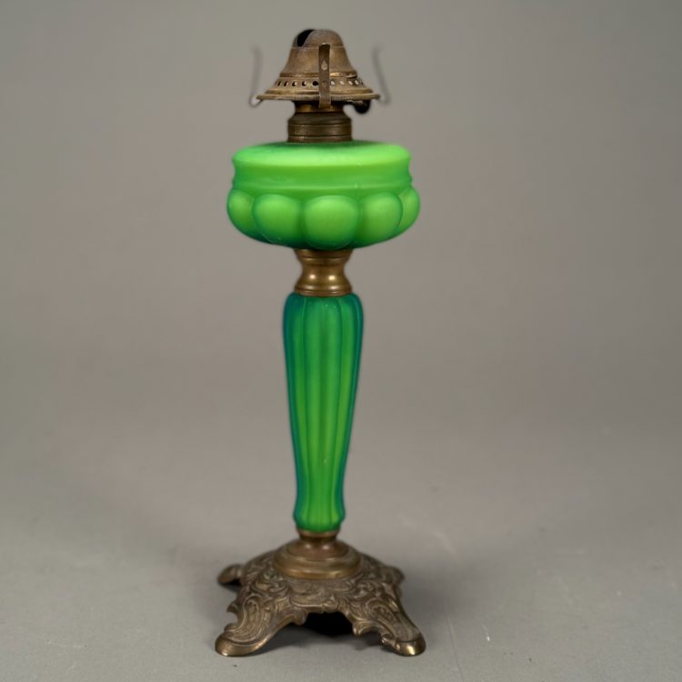 Home / OCTOBER 3 AT 6 PM / LOT 071 FOSTORIA ELITE PRINCESS JUNIOR BANQUET LAMP IN CASED LIME GREEN WITH SATIN FINISH. 13″(H) LOT 071 FOSTORIA ELITE PRINCESS JUNIOR BANQUET LAMP IN CASED LIME GREEN WITH SATIN FINISH. 13″(H) Place a Bid Categories: ANTIQUE AUCTION - FRI OCTOBER 3 AT 6 PM, OCTOBER 3 AT 6 PM Tag: auction Related products LOT 020 STERLING SILVER HINGED SQUARE BOX, LONDON, 1806, MAKERS MARK RH?, THE LID WITH A REPOUSSE SCENE OF 2 MEN PLAYING A BOARD GAME. 1-1/4″(H), 4″(W), 4″(D) LOT 011 4 PCS OF ENGLISH STERLING SILVER. (1) EXPANDING TOAST RACK, 1901-1902, LONDON, 3″(H). (2) 3″ TEA CADDY SPOON, 1796-7, LONDON. (3) 7″ RETICULATED 2 HANDLED DISH, 1906-7, BIRMINGHAM. (4) 2″(H) TANKARD SHAPED MUSTARD WITH COBALT LINER, 1902-3, BIRMINGHAM. 12.6 OZT (W/O LINER) LOT 007 FIXED HANDLED STERLING SILVER LOW BASKET MARKED BIGELOW, KENNARD & CO. 5-1/2″(H), 10-1/2″(D), 9.8 OZT LOT 019 COIN SILVER MUG BY C. BARD & SON, PHILADELPHIA, PA, CIRCA 1850 INSCRIBED ‘ANNA CRAIG FULTON’, THE BODY HAVING REPOUSSE FLOWERS. 3-1/2″(H), 3.3 OZT