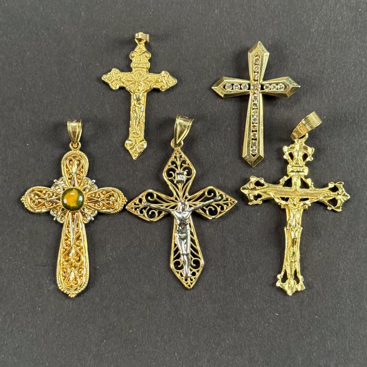 Home / ANTIQUE ESTATE AUCTION - FRI FEBRUARY 20 AT 6 PM / LOT 072 FIVE 14K YG CROSS PENDANTS, ONE WITH DIAMONDS. LARGEST 1-3/4″(H), 9.9 DWT, (15.3 G), .5 OZT LOT 072 FIVE 14K YG CROSS PENDANTS, ONE WITH DIAMONDS. LARGEST 1-3/4″(H), 9.9 DWT, (15.3 G), .5 OZT Place a Bid Category: ANTIQUE ESTATE AUCTION - FRI FEBRUARY 20 AT 6 PM Tag: auction Related products LOT 023 STEPHEN G. MANIATTY, ‘SAWMILL’, OIL ON CANVAS, SIGNED LOWER RIGHT, FRAMED WITH AN AWARD PLAQUE “GRUMBACHER ARTISTS MATERIAL AWARD/GRAND NATIONAL EXHIBITION/NEW YORK CITY – 1965”. 20 X 30 LOT 002 3 PC STERLING SILVER TEA SET BY GORHAM CONSISTING OF 10″ TEAPOT (2441), 6-1/2″ CREAMER (2444), 6″ COVERED SUGAR (2443), 45 OZT LOT 013 3 PCS OF STERLING SILVER: (1) OVAL DEEP SERVING DISH BY E. CALDWELL & CO, 10 X 6-1/2. (2) PORRINGER BY DOMINICK & HAFF, 7″. (3) PORRINGER BY RWM, 6″. 21.8 OZT LOT 024 STEPHEN G. MANIATTY, ‘OCTOBERS GIFT’, OIL ON CANVAS, SIGNED LOWER RIGHT, FRAMED. 34 X 25