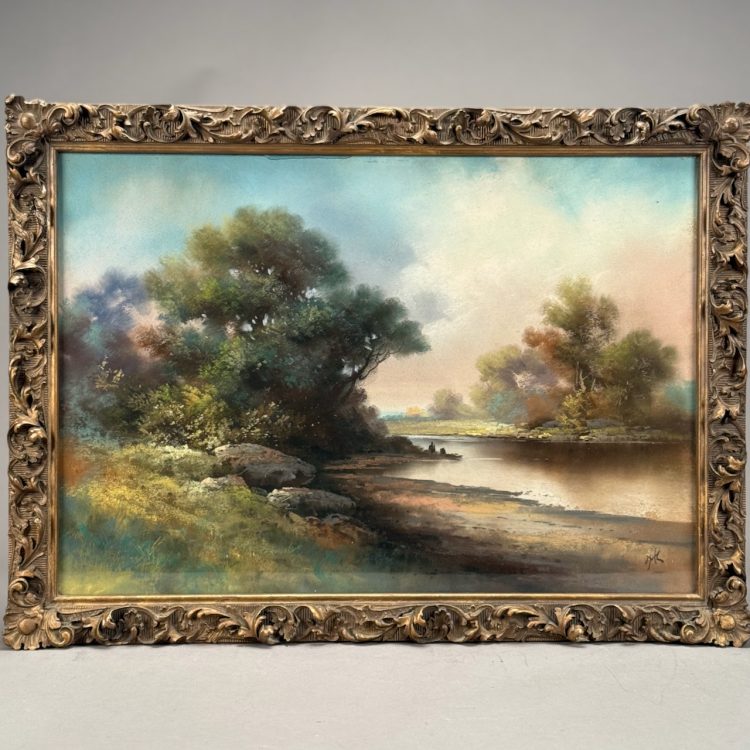 Home / OCTOBER 3 AT 6 PM / LOT 072 M.H., LANDSCAPE WITH WATER, PASTEL, INITIALED LOWER RIGHT, FRAMED. 17-1/2 X 25-1/2 SIGHT SIZE LOT 072 M.H., LANDSCAPE WITH WATER, PASTEL, INITIALED LOWER RIGHT, FRAMED. 17-1/2 X 25-1/2 SIGHT SIZE Place a Bid Categories: ANTIQUE AUCTION - FRI OCTOBER 3 AT 6 PM, OCTOBER 3 AT 6 PM Tag: auction Related products LOT 019 COIN SILVER MUG BY C. BARD & SON, PHILADELPHIA, PA, CIRCA 1850 INSCRIBED ‘ANNA CRAIG FULTON’, THE BODY HAVING REPOUSSE FLOWERS. 3-1/2″(H), 3.3 OZT LOT 020 STERLING SILVER HINGED SQUARE BOX, LONDON, 1806, MAKERS MARK RH?, THE LID WITH A REPOUSSE SCENE OF 2 MEN PLAYING A BOARD GAME. 1-1/4″(H), 4″(W), 4″(D) LOT 004 133 PC STERLING SILVER FLATWARE SET IN THE “KING PATTERN. 190 OZT (EXCLUDING 12 KNIVES), MONOGRAMMED LOT 009 48 PC STERLING SILVER FLATWARE SET IN THE “KING GEORGE” PATTERN BY GORHAM, 57 OZT (WITHOUT 16 KNIVES) MONOGRAMMED
