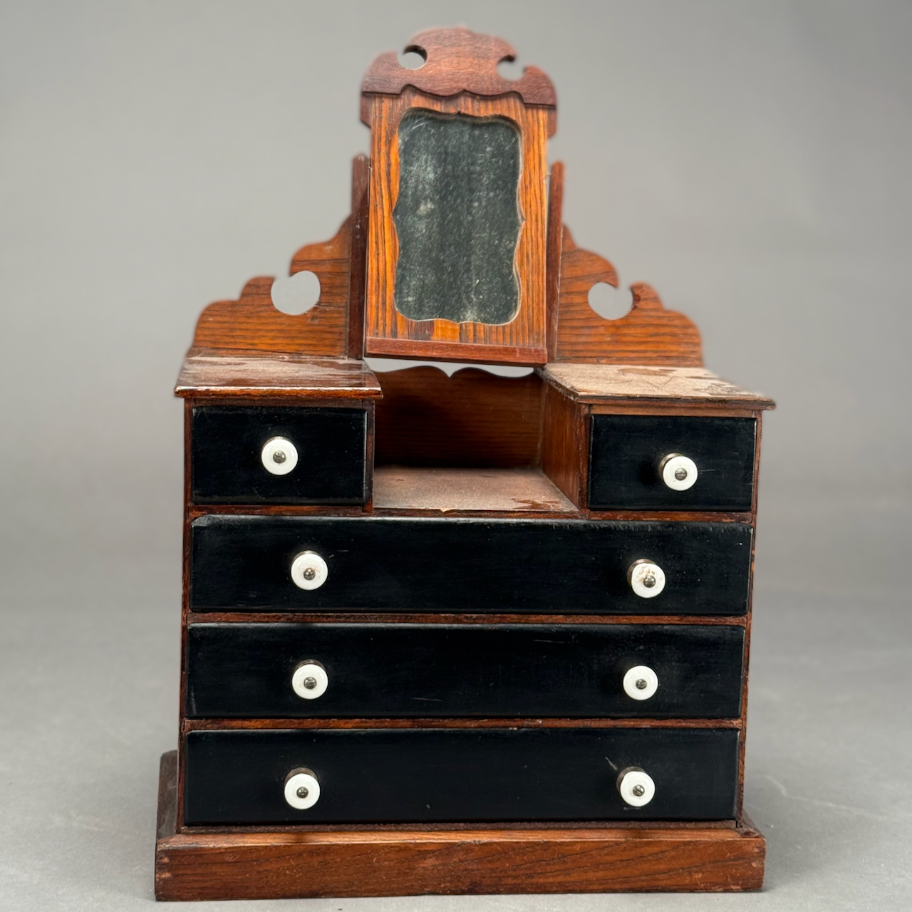 Home / ANTIQUE ESTATE AUCTION - FRI DECEMBER 12 AT 6 PM / LOT 073 DOLL SIZE DROP CENTER CHEST WITH MIRROR. 18(H), 12-1/2″(W), 6″(D) LOT 073 DOLL SIZE DROP CENTER CHEST WITH MIRROR. 18(H), 12-1/2″(W), 6″(D) Place a Bid Category: ANTIQUE ESTATE AUCTION - FRI DECEMBER 12 AT 6 PM Tag: auction Related products LOT 007 FIXED HANDLED STERLING SILVER LOW BASKET MARKED BIGELOW, KENNARD & CO. 5-1/2″(H), 10-1/2″(D), 9.8 OZT LOT 002 3 PC STERLING SILVER TEA SET BY GORHAM CONSISTING OF 10″ TEAPOT (2441), 6-1/2″ CREAMER (2444), 6″ COVERED SUGAR (2443), 45 OZT LOT 015 42 PC STERLING FLATWARE SET BY LUNT IN THE ‘WILLIAM & MARY’ PATTERN, NO MONOGRAM. 34.5 OZT (W/O 12 KNIVES) LOT 023 STEPHEN G. MANIATTY, ‘SAWMILL’, OIL ON CANVAS, SIGNED LOWER RIGHT, FRAMED WITH AN AWARD PLAQUE “GRUMBACHER ARTISTS MATERIAL AWARD/GRAND NATIONAL EXHIBITION/NEW YORK CITY – 1965”. 20 X 30