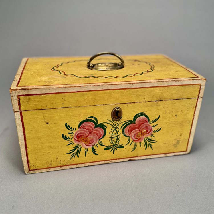 Home / ANTIQUE AUCTION - FRI OCTOBER 3 AT 6 PM / LOT 077 ANTIQUE PAINTED HINGED PINE BOX IN YELLOW PAINT HAVING PINK FLOWERS AND TOP BRASS HANDLE. 7″(H), 13-1/2″(W), 8″(D) LOT 077 ANTIQUE PAINTED HINGED PINE BOX IN YELLOW PAINT HAVING PINK FLOWERS AND TOP BRASS HANDLE. 7″(H), 13-1/2″(W), 8″(D) Place a Bid Categories: ANTIQUE AUCTION - FRI OCTOBER 3 AT 6 PM, OCTOBER 3 AT 6 PM Tag: auction Related products LOT 023 STEPHEN G. MANIATTY, ‘SAWMILL’, OIL ON CANVAS, SIGNED LOWER RIGHT, FRAMED WITH AN AWARD PLAQUE “GRUMBACHER ARTISTS MATERIAL AWARD/GRAND NATIONAL EXHIBITION/NEW YORK CITY – 1965”. 20 X 30 LOT 006 FINE PAIR OF FANCY STERLING SILVER CANDLESTICKS, SHEFFIELD, 1903-4 WITH MAKER’S MARK ‘HE LD’, 12″(H) LOT 011 4 PCS OF ENGLISH STERLING SILVER. (1) EXPANDING TOAST RACK, 1901-1902, LONDON, 3″(H). (2) 3″ TEA CADDY SPOON, 1796-7, LONDON. (3) 7″ RETICULATED 2 HANDLED DISH, 1906-7, BIRMINGHAM. (4) 2″(H) TANKARD SHAPED MUSTARD WITH COBALT LINER, 1902-3, BIRMINGHAM. 12.6 OZT (W/O LINER) LOT 022 STEPHEN G. MANIATTY, ‘BUCKET OF POSIES’, OIL ON CANVAS, SIGNED LOWER RIGHT, FRAMED. 38 X 36