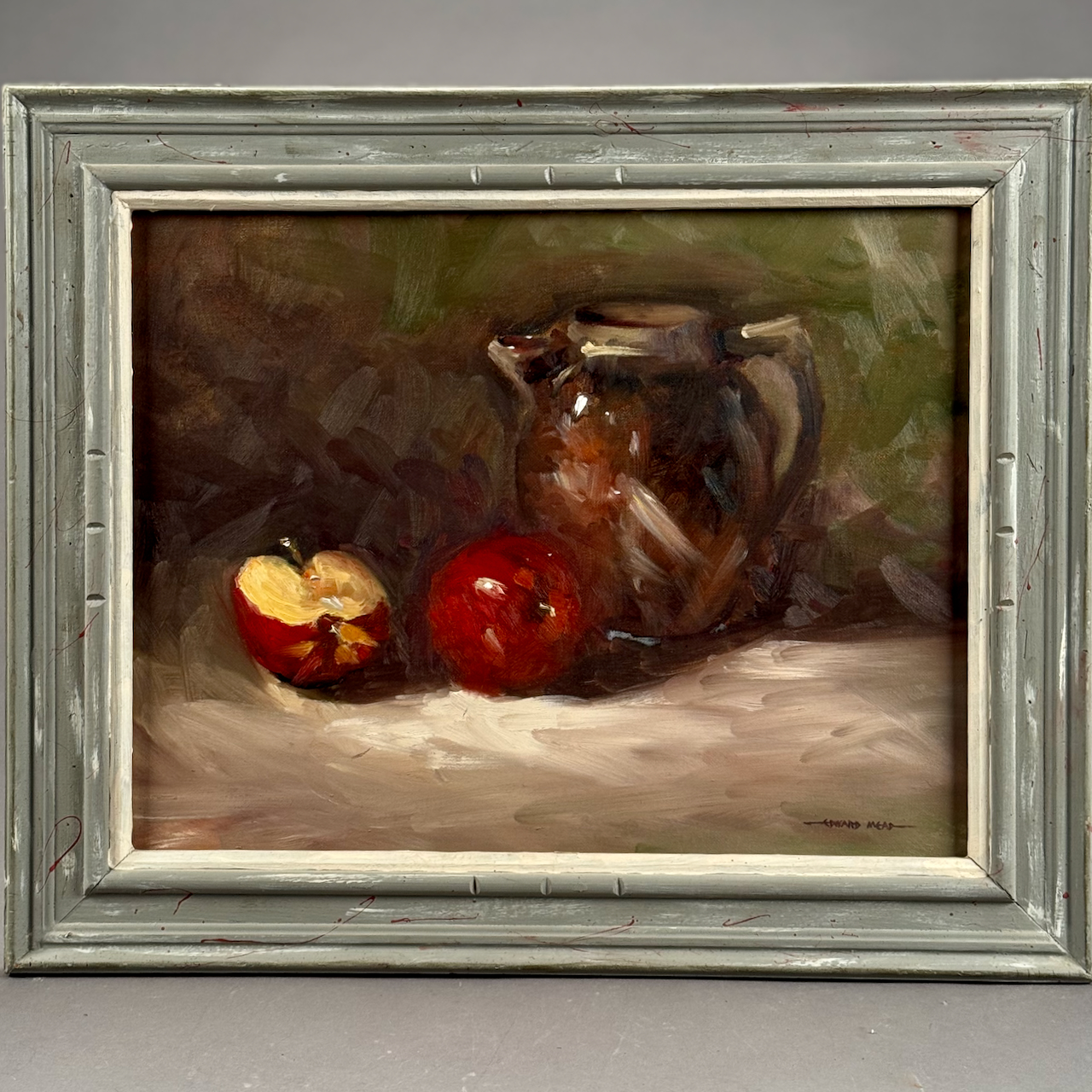 Home / ANTIQUE ESTATE AUCTION - FRI DECEMBER 12 AT 6 PM / LOT 077 EDWARD MEAD, STILL LIFE WITH PITCHER AND APPLES, OIL ON CANVAS BOARD, SIGNED LOWER RIGHT, FRAMED. 14-1/4 X 18-1/4 LOT 077 EDWARD MEAD, STILL LIFE WITH PITCHER AND APPLES, OIL ON CANVAS BOARD, SIGNED LOWER RIGHT, FRAMED. 14-1/4 X 18-1/4 Place a Bid Category: ANTIQUE ESTATE AUCTION - FRI DECEMBER 12 AT 6 PM Tag: auction Related products LOT 018 COIN SILVER HANDLED CUP, PROBABLY FREEMAN & WALLIN, PHILADELPHIA, CIRCA 1850. 4″(H), 3.6 OZT. LOT 020 STERLING SILVER HINGED SQUARE BOX, LONDON, 1806, MAKERS MARK RH?, THE LID WITH A REPOUSSE SCENE OF 2 MEN PLAYING A BOARD GAME. 1-1/4″(H), 4″(W), 4″(D) LOT 013 3 PCS OF STERLING SILVER: (1) OVAL DEEP SERVING DISH BY E. CALDWELL & CO, 10 X 6-1/2. (2) PORRINGER BY DOMINICK & HAFF, 7″. (3) PORRINGER BY RWM, 6″. 21.8 OZT LOT 002 3 PC STERLING SILVER TEA SET BY GORHAM CONSISTING OF 10″ TEAPOT (2441), 6-1/2″ CREAMER (2444), 6″ COVERED SUGAR (2443), 45 OZT