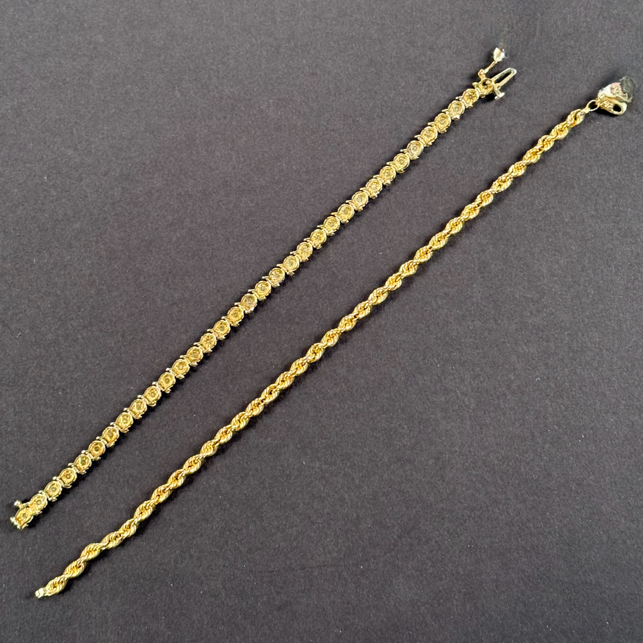 Home / ANTIQUE ESTATE AUCTION - FRI FEBRUARY 20 AT 6 PM / LOT 078 TWO 14K YG BRACELETS. 7″ & 8″(L), 4.6 DWT, (7.2 G), .23 OZT LOT 078 TWO 14K YG BRACELETS. 7″ & 8″(L), 4.6 DWT, (7.2 G), .23 OZT Place a Bid Category: ANTIQUE ESTATE AUCTION - FRI FEBRUARY 20 AT 6 PM Tag: auction Related products LOT 006 FINE PAIR OF FANCY STERLING SILVER CANDLESTICKS, SHEFFIELD, 1903-4 WITH MAKER’S MARK ‘HE LD’, 12″(H) LOT 018 COIN SILVER HANDLED CUP, PROBABLY FREEMAN & WALLIN, PHILADELPHIA, CIRCA 1850. 4″(H), 3.6 OZT. LOT 017 CONTINENTAL SILVER (.800) DRESSER BOX MARKED ON BASE ‘BEUTHNER’. 3-1/4″(H), 5-1/2″(W) X 4″(D), 8 OZT LOT 007 FIXED HANDLED STERLING SILVER LOW BASKET MARKED BIGELOW, KENNARD & CO. 5-1/2″(H), 10-1/2″(D), 9.8 OZT