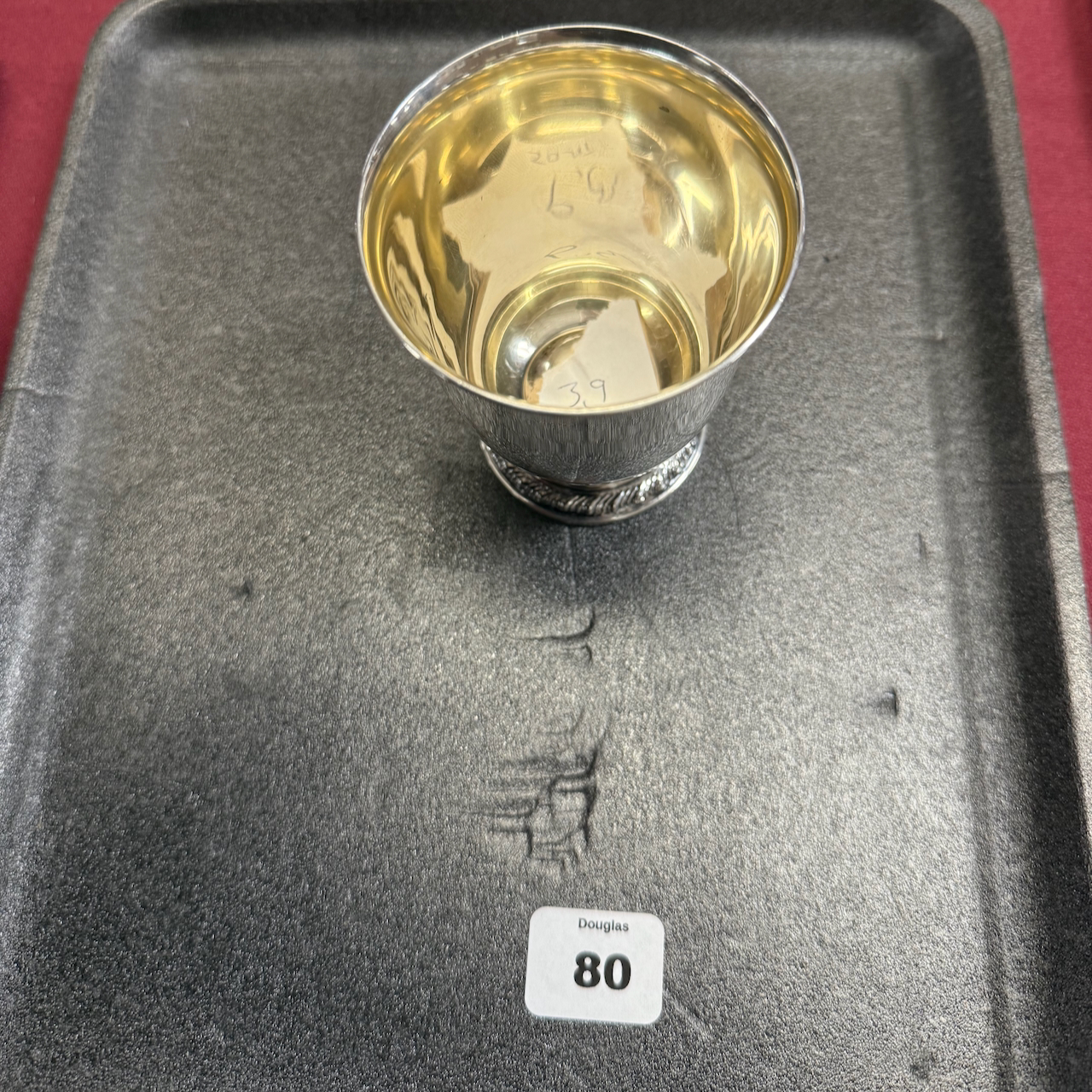 Home / LARGE ESTATE AUCTION - FRI JANUARY 16 AT 6 PM / LOT 080 FOOTED CUP, 3.9 OZT LOT 080 FOOTED CUP, 3.9 OZT Place a Bid Category: LARGE ESTATE AUCTION - FRI JANUARY 16 AT 6 PM Tag: auction Related products LOT 020 STERLING SILVER HINGED SQUARE BOX, LONDON, 1806, MAKERS MARK RH?, THE LID WITH A REPOUSSE SCENE OF 2 MEN PLAYING A BOARD GAME. 1-1/4″(H), 4″(W), 4″(D) LOT 016 6 PCS OF STERLING SILVER: (1) 6″(D) PLATE BY TOWLE. (2) 3-1/2 FOOTED CREAMER BY POOLE. (3) 4″(D) FOOTED BOWL BY SHREVE, CRUMP & LOW CO (4) 7″(L) FOOTED GRAVY BY J.E. CALDWELL & CO (5) 4″ CREAMER BY DOMINICK & HAFF (6) 6-3/4″(W) DISH BY TOWLE. 25.2 OZT LOT 006 FINE PAIR OF FANCY STERLING SILVER CANDLESTICKS, SHEFFIELD, 1903-4 WITH MAKER’S MARK ‘HE LD’, 12″(H) LOT 014 PAIR OF STERLING SILVER 2 HANDLED PLATES BY WEBSTER MARKED ‘6613’, NO MONOGRAM, 10-1/2 AT WIDEST, 21.3 OZT
