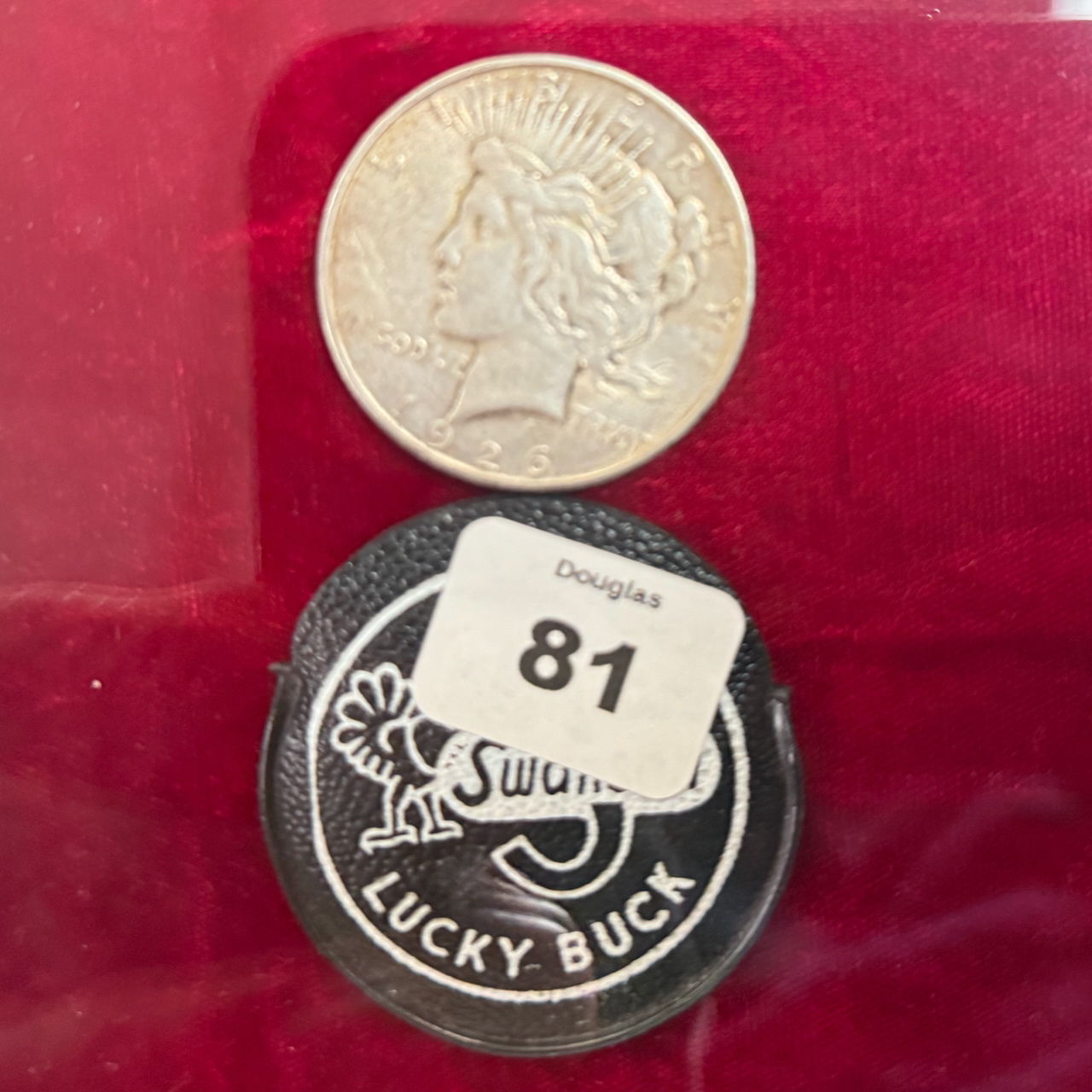 Home / LARGE ESTATE AUCTION - FRI JANUARY 16 AT 6 PM / LOT 081 1926 D PEACE DOLLAR LOT 081 1926 D PEACE DOLLAR Place a Bid Category: LARGE ESTATE AUCTION - FRI JANUARY 16 AT 6 PM Tag: auction Related products LOT 024 STEPHEN G. MANIATTY, ‘OCTOBERS GIFT’, OIL ON CANVAS, SIGNED LOWER RIGHT, FRAMED. 34 X 25 LOT 010 2 STERLING SILVER SHAKERS, ONE 6″(H) WITH BLURRED ENGLISH HALLMARKS, THE OTHER 6-1/2″(H) MARKED STERLING. 9 OZT LOT 019 COIN SILVER MUG BY C. BARD & SON, PHILADELPHIA, PA, CIRCA 1850 INSCRIBED ‘ANNA CRAIG FULTON’, THE BODY HAVING REPOUSSE FLOWERS. 3-1/2″(H), 3.3 OZT LOT 004 133 PC STERLING SILVER FLATWARE SET IN THE “KING PATTERN. 190 OZT (EXCLUDING 12 KNIVES), MONOGRAMMED